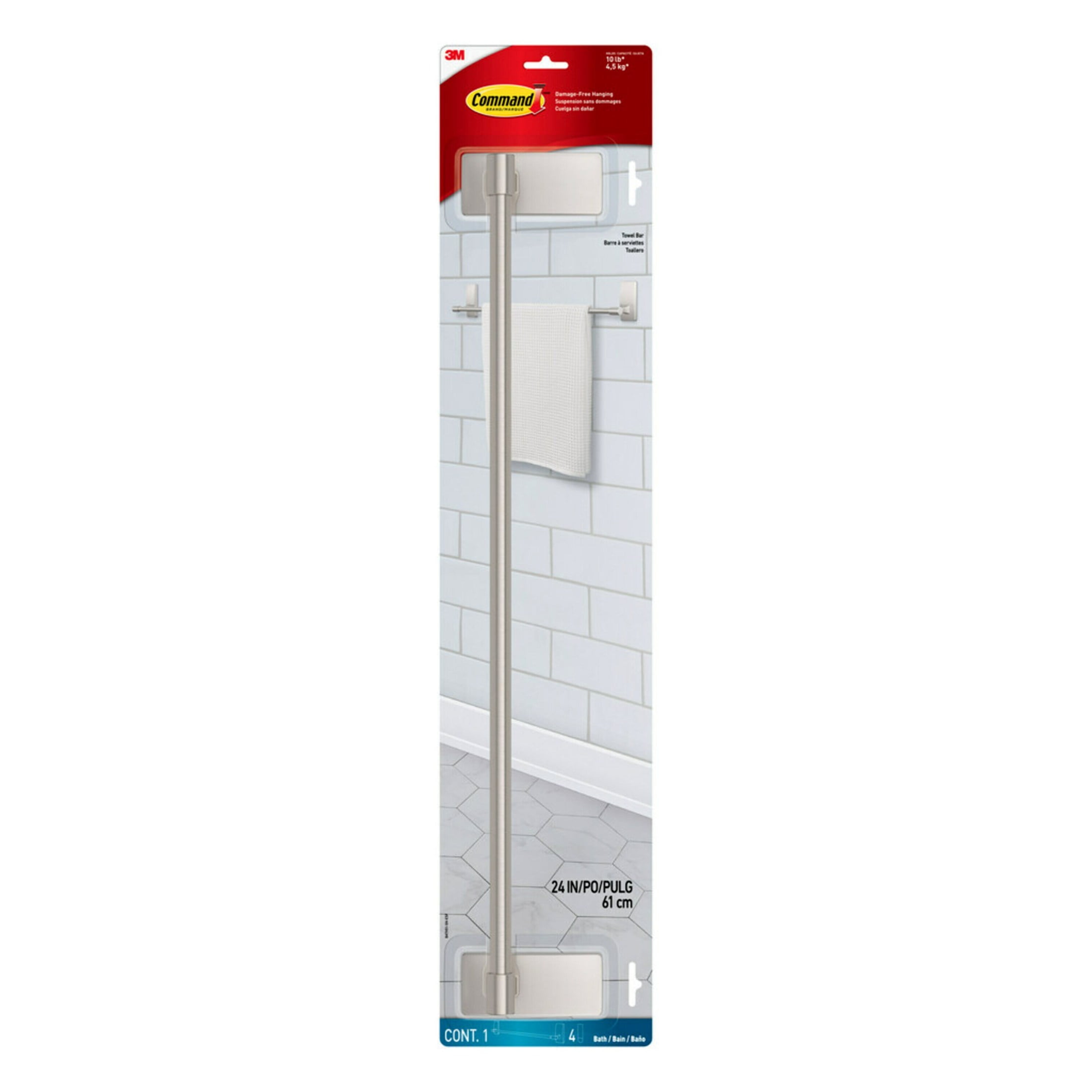 The Command Towel Ring makes it easy to refresh your bathroom fixtures and keep your hand towels within reach without cluttering your counter space. It is easy to install and comes off leaving no holes or sticky residue, providing a great alternative to damaging nails and screws. The towel ring sticks to many surfaces, including glass, mirror, tile, finished wood and painted surfaces. The Command Bath Towel Bar makes it easy to refresh your bathroom fixtures without damaging your walls. It is easy to install and comes off leaving no holes or sticky residue, providing a great alternative to damaging nails and screws. The bath towel bar sticks to many surfaces, including glass, mirror, tile, finished wood and painted surfaces.