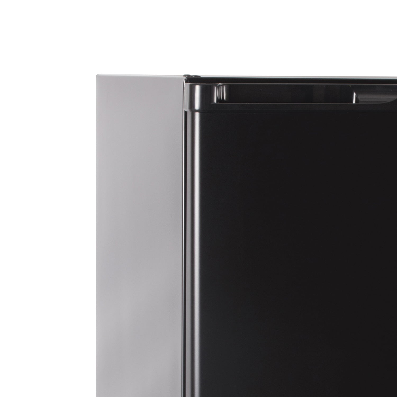3 full-width slide-out glass shelves 2 full-width and 1 half-width door storage shelves Can storage fits up to 5 cans Accomodates 2 liters and tall bottles Half-width freezer compartment with ice cube try Recessed door handle and space saving flat back design Adjustable leveling legs and manual defrost Manual defrost Compliant with DOE 2014 standards; uses R600A refrigerant Includes ice cube tray and manual 4.5 cu. ft. Black;