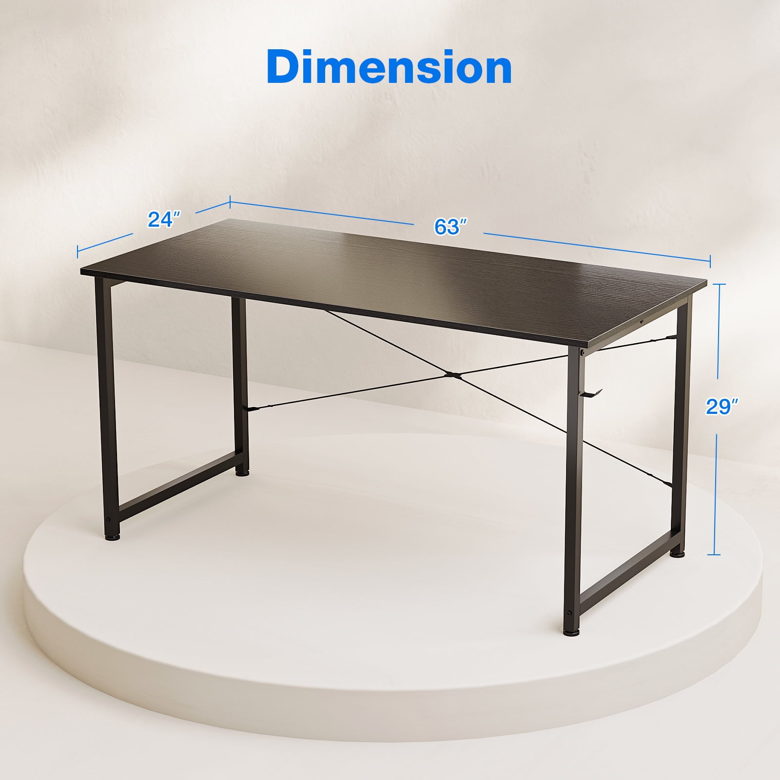 This Large 63-inch computer desk/writing desk fits the corner of the room perfectly and offers plenty of legroom for rest and storage. You’ll be surprised by the sufficient working room this simple desk provides Thick metal frames made of heavy-duty powder-coated steel improve stability and safety in use. The extremely easy-to-clean desktop is waterproof and scratch-resistant. Legs of high thickness are strong enough to support heavy-duty parcels Product Information: Size: 63″ (L) x 22″ (W) x 29″ (H) Color: Black Shape: Rectangular Style: Modern Top Material Type: Engineered Wood, Metal