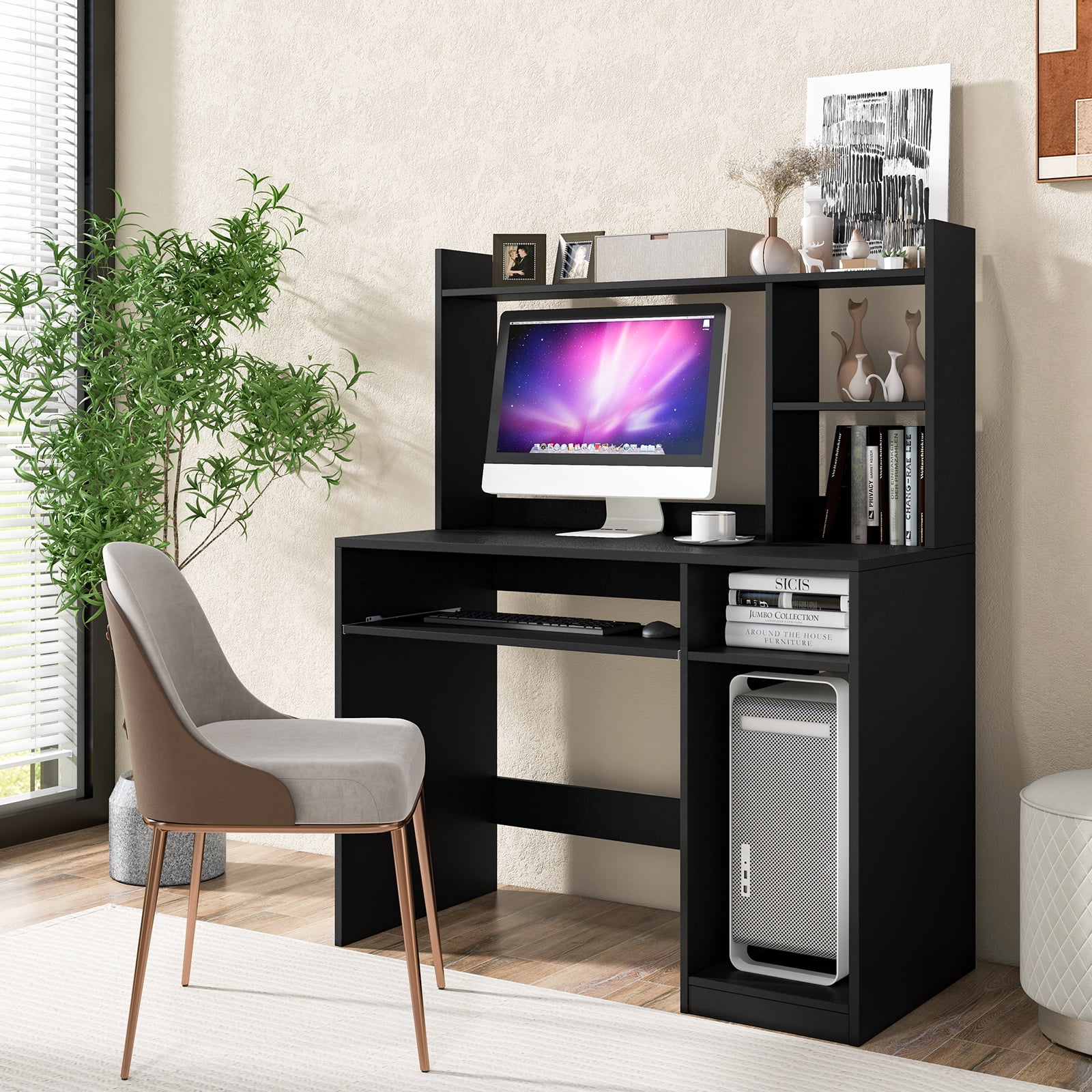 Costway Computer Desk Study Bookcase Workstation with Charging Station Hutch & CPU Stand