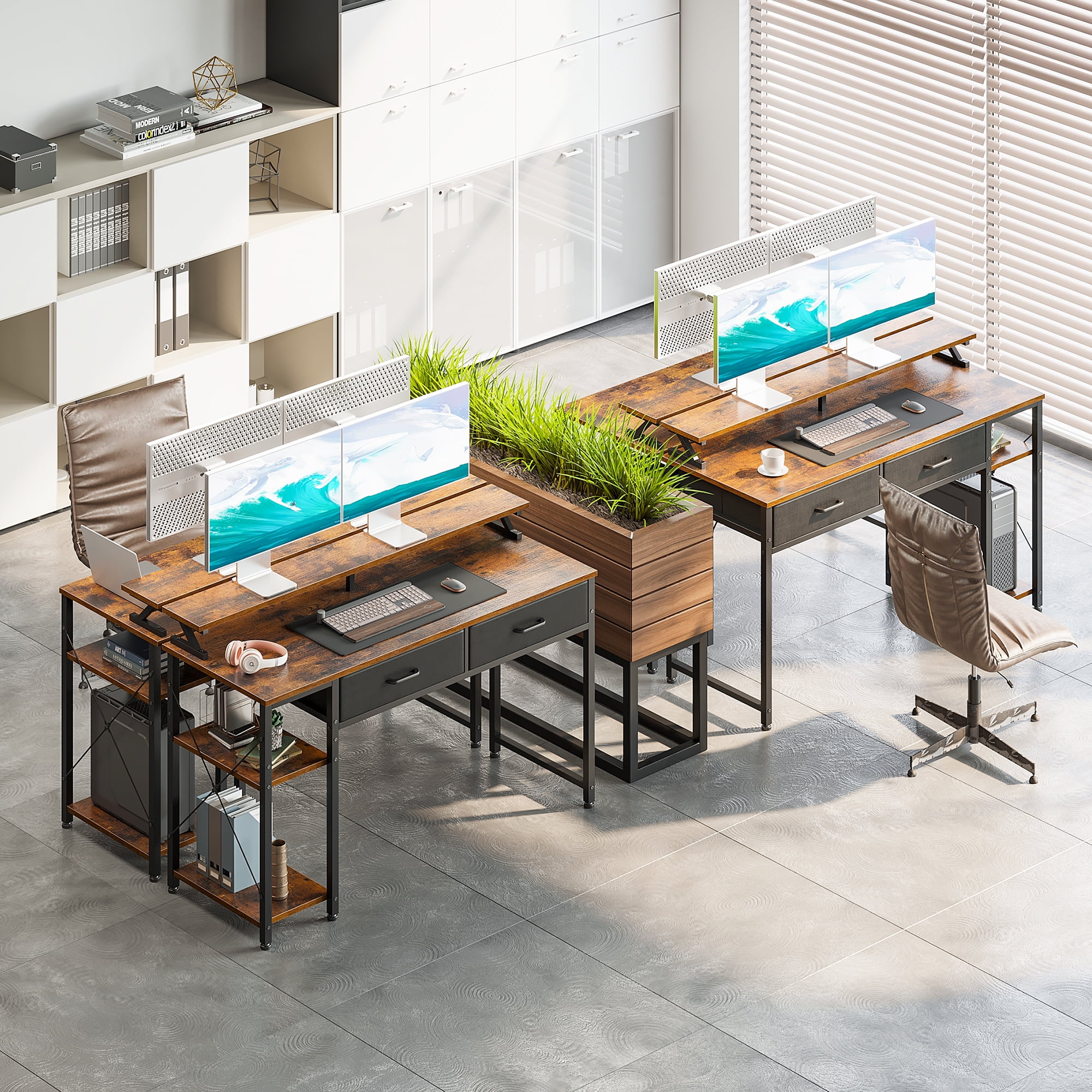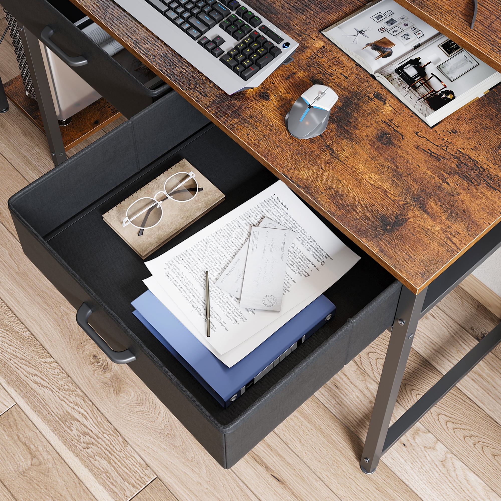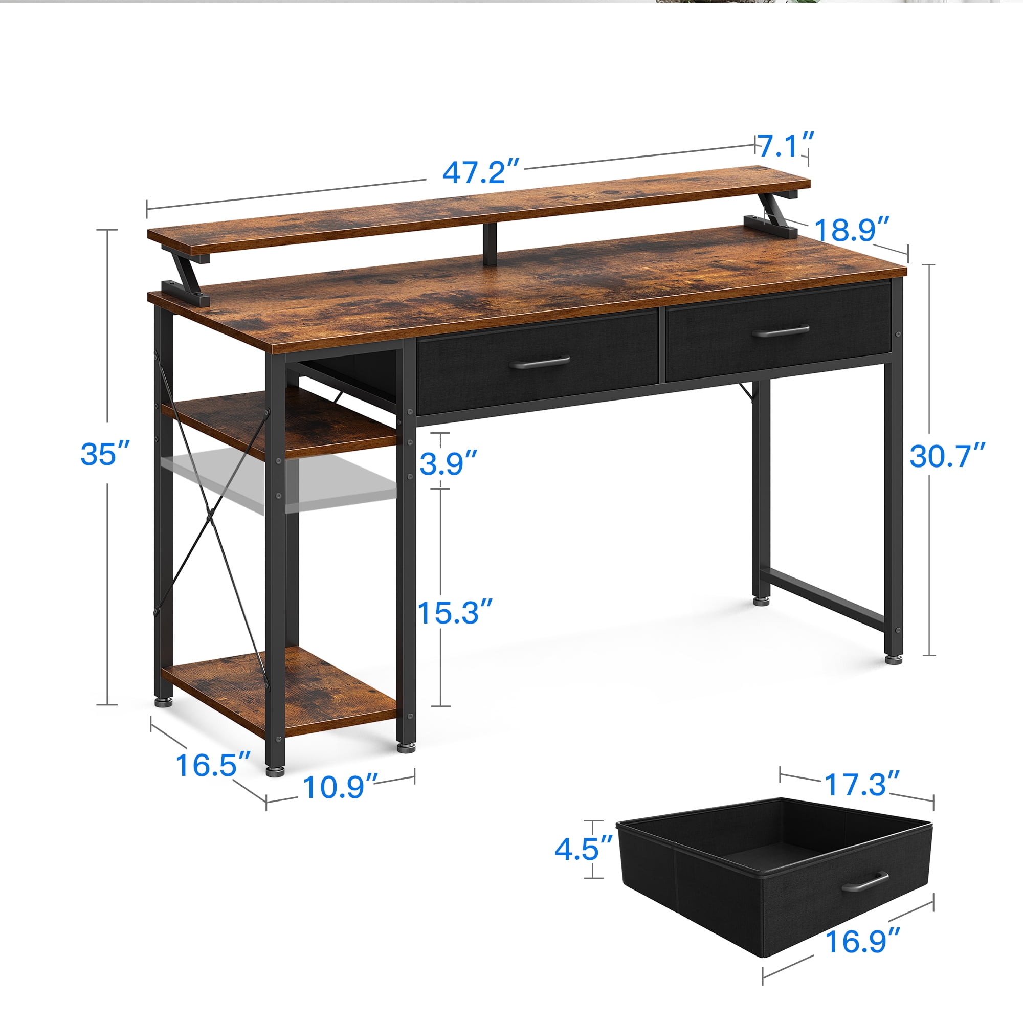 Product Dimensions: 19.7″ W x 48″ L x 35.6″ H Color: Rustic Brown Shape: Rectangular Number of drawers: 2 Recommended Use: Working, Writing, Gaming Room Type: Office, Dormitory, Bedroom, Living Room, Study Room