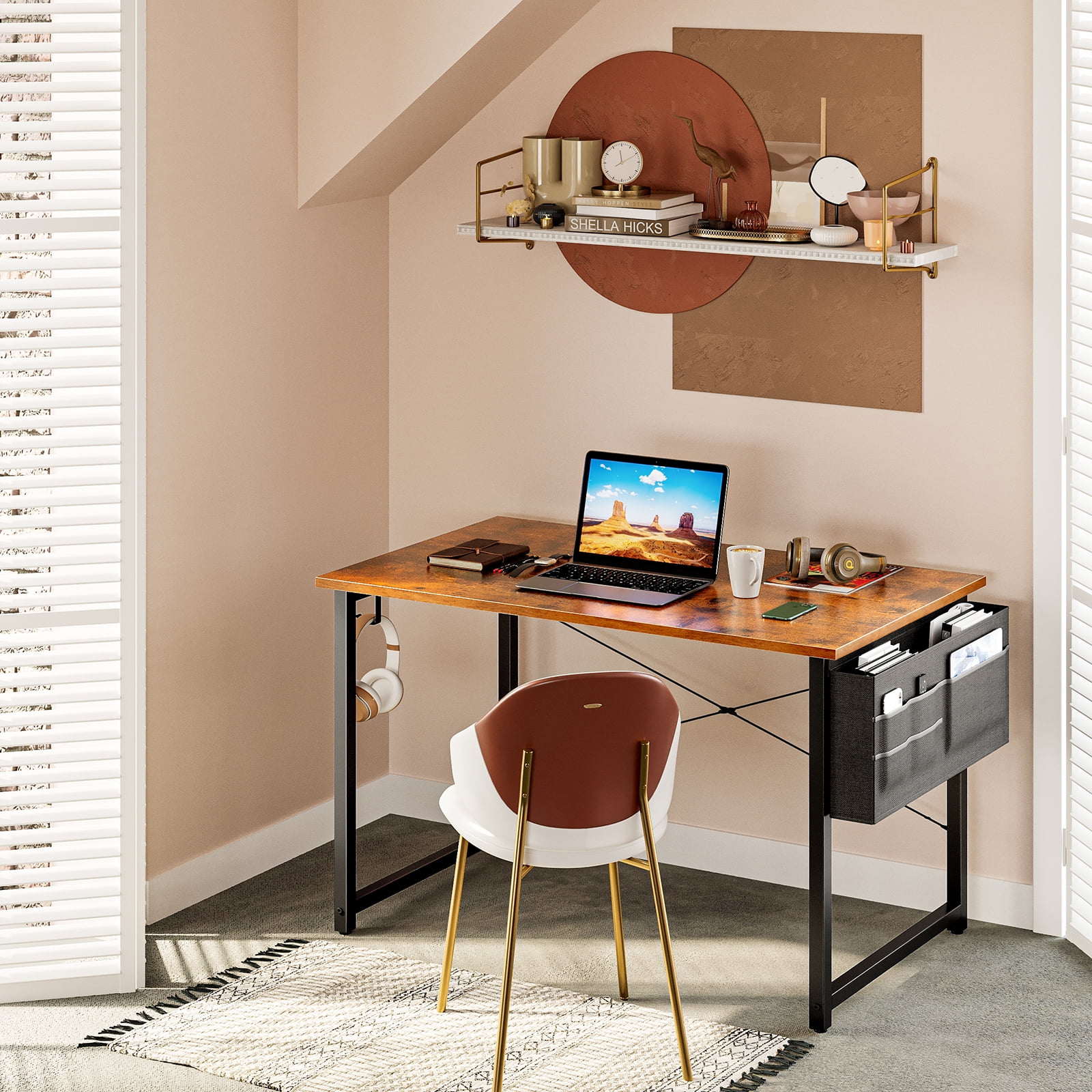 【Premium & Sturdy Small Desk】 This small computer desk has an exquisite desktop, it is made of high-quality particleboard which is anti-scratch, waterproof, and easy to clean. This material also meets the EPA and CARB safe air standards, safe for adults and toddlers. The metal frame and corner-reinforced structure provide reliable support for all-day use with, a weight capacity of up to 110 Lbs. A must-have small space desk for the home office. 【Modern & Simple Style】 Our computer desk is designed in a modern but simple style. It can match all home decor styles and is not easily out of date. The spacious tabletop space makes it easy to contain your PC, laptop, coffee cup, mini plant, keyboard, etc. There are 2 sizes for you to choose from that meet all requirements: 32-inch and 40-inch. Choose the smaller size for a bedroom, study room, or corner, and bigger ones for a larger working space. 【Multipurpose Storage Design】 This small computer desk for small spaces is designed with a side storage bag and iron headphone hook. You can put your magazine, files, books, and posters in the storage bag, gaining more storage space, and making the desktop tidier. The headphone hook can hang your headphone or bag firmly. Well, organize your sundries. Work without mess, work with tidy. 【Wide Application & Great Gift】 This study table is perfect for home, office, bedroom, reading room, study room, and so on. 2 sizes for different space demands and 3 colors for matching various room decoration styles. This home office desk with storage is also a decent gift for your friends or family on festivals, birthdays, new year, housewarmings, back-to-school days, etc. 【Fast Installation】 Easy to assemble, the installation will take 20-30 minutes to complete. The package comes with all the hardware and components you need. Please note that read the installation manual first. No need to hesitate, come and get your small desks for small spaces.