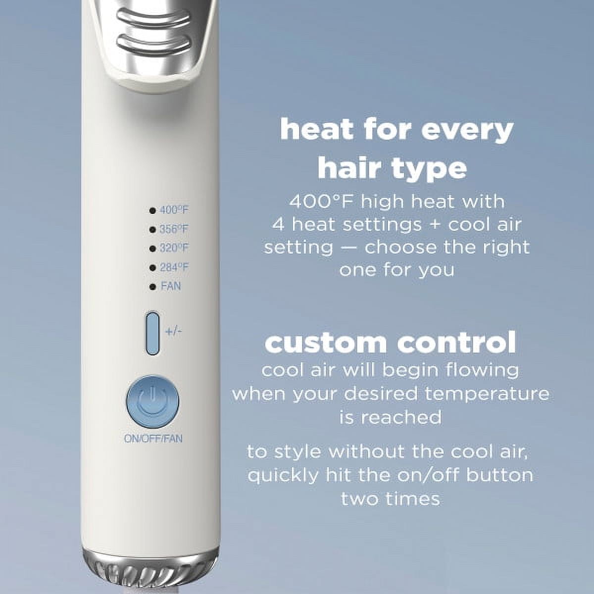 One tool, endless styles: Create and set a variety of long-lasting looks with just one tool Effortless curls: Hair curler heats, curls, and cools in one step; ceramic-coated plates preheat hair before wrapping around the vented titanium barrel for long-lasting curls Straight and smooth: Ceramic-coated floating plates glide effortlessly for the silky straight looks you love Cool air system: Cool air flows through the vented barrel, instantly cooling the hair to lock in the style and help protect against damage Custom control: Hair tool features heat for every hair type with 4 heat settings plus a cool air option; worry-free automatic shutoff ensures safety; dual voltage for use at home or abroad Fast, consistent heat: Ready for use in 30 seconds and maintains heat level upon reaching stabilized temperature; plates heat up to a high heat of 400 degrees F