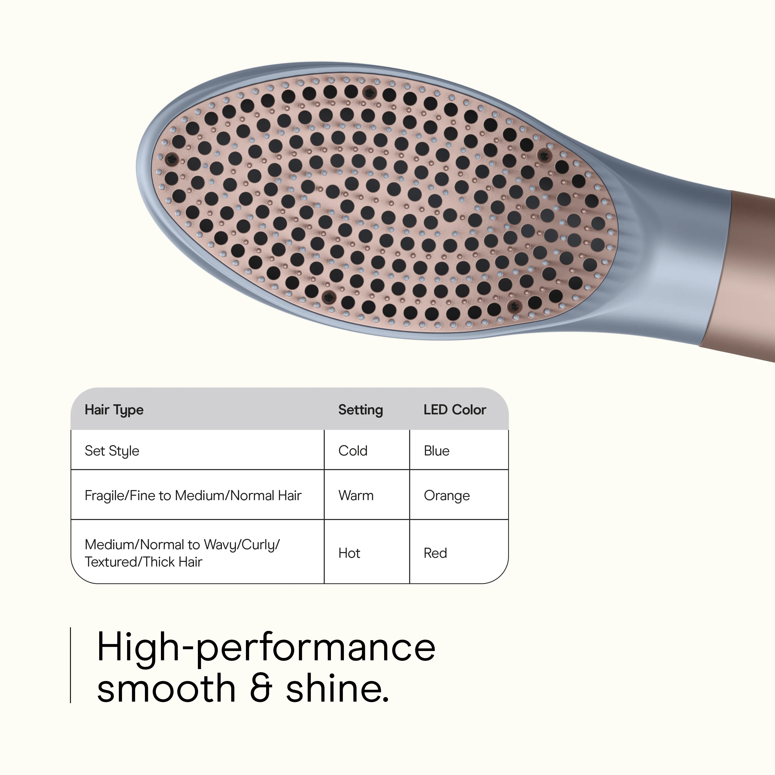 With a powerful brushless motor, the InfinitiPRO by Conair® DigitalAIRE™ Hot Air Brush delivers 1200 watts of superior drying power without heat damage thanks to ceramic technology that evenly distributes heat. Four different attachments make it easy for you to totally personalize your look. Use the curling wand attachment to add body and waves to hair, create a soft blowout with gorgeous volume that begins at the roots with the 1¼” round brush, smooth and shine hair with the paddle brush, or simply dry and style with the drying nozzle attachment. Choose from 3 temperature settings (cold, warm, hot) and 2 speed settings (high, low) for customized styling, then hit your hairdo with a shot of cool air to lock it in. Experience superior drying power and easy styling with this 4-in-1 styling dryer that lets you personalize your look. Designed with dynamic performance and engineering, this hot air hair styler creates the latest looks from sleek and shiny to classic curls.