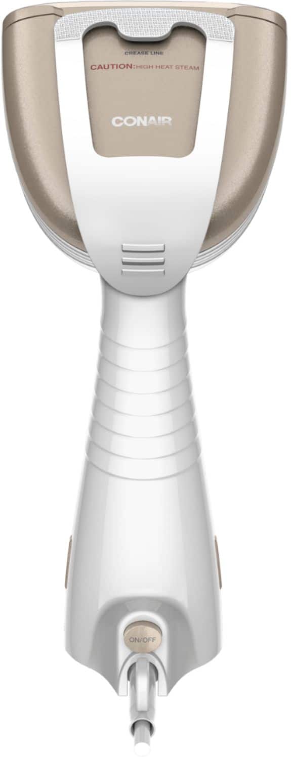 De-wrinkle garments quickly with this Conair Turbo ExtremeSteam handheld fabric steamer. The dual-slotted ceramic-coated soleplate creates steam fast to smooth out wrinkles, and a built-in creasing tool delivers professional-quality results. This Conair Turbo ExtremeSteam handheld fabric steamer features a three-in-one attachment tool to make it easy to remove folds from different types of materials.