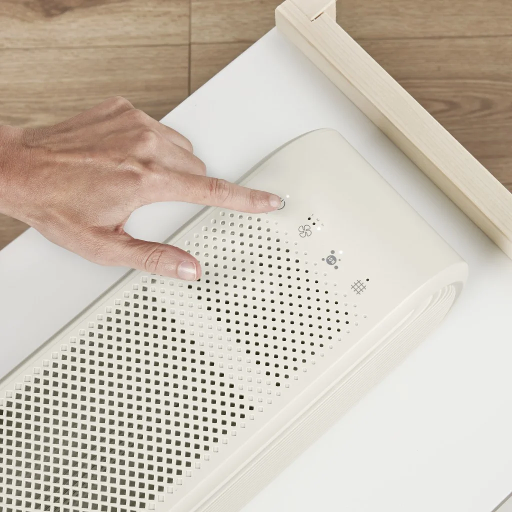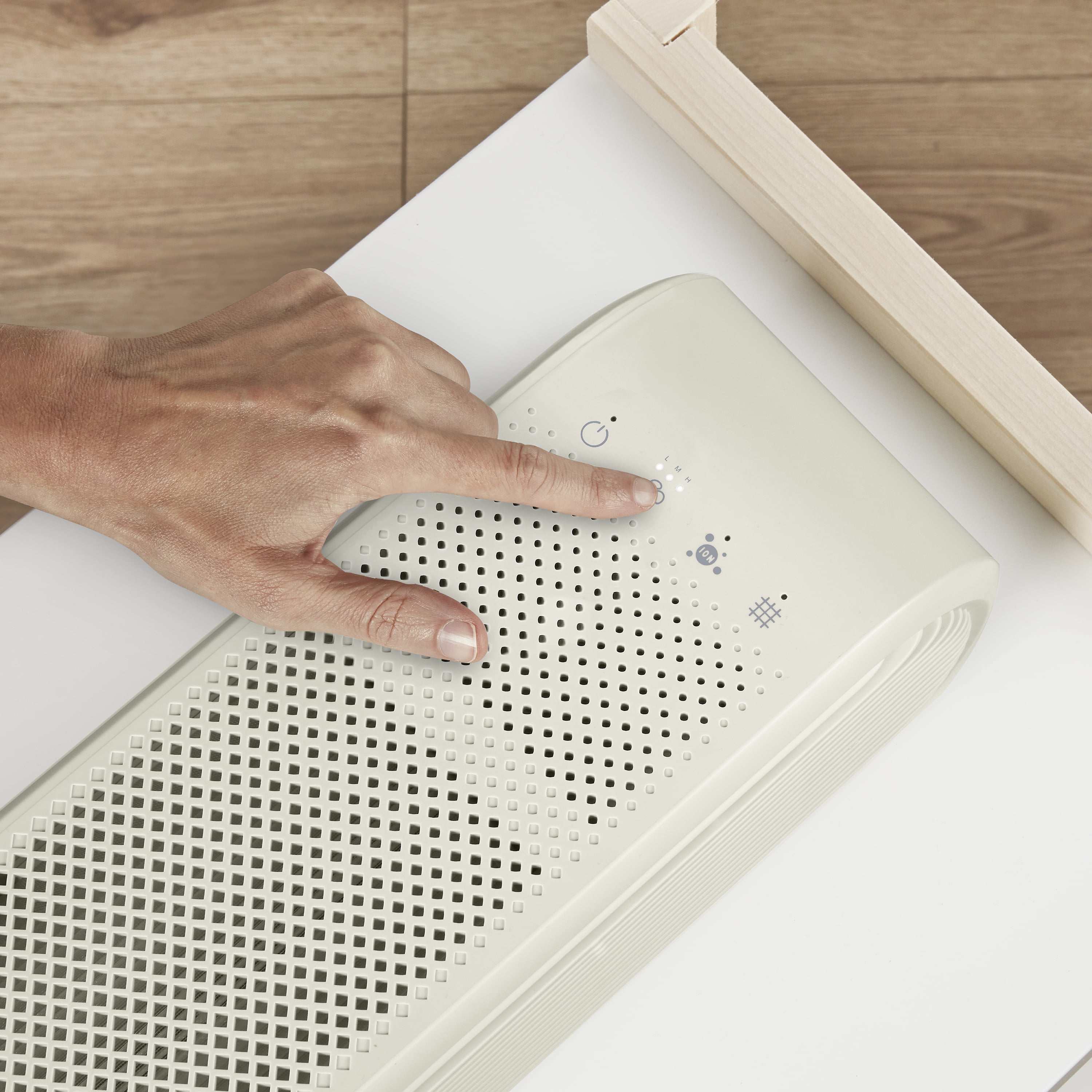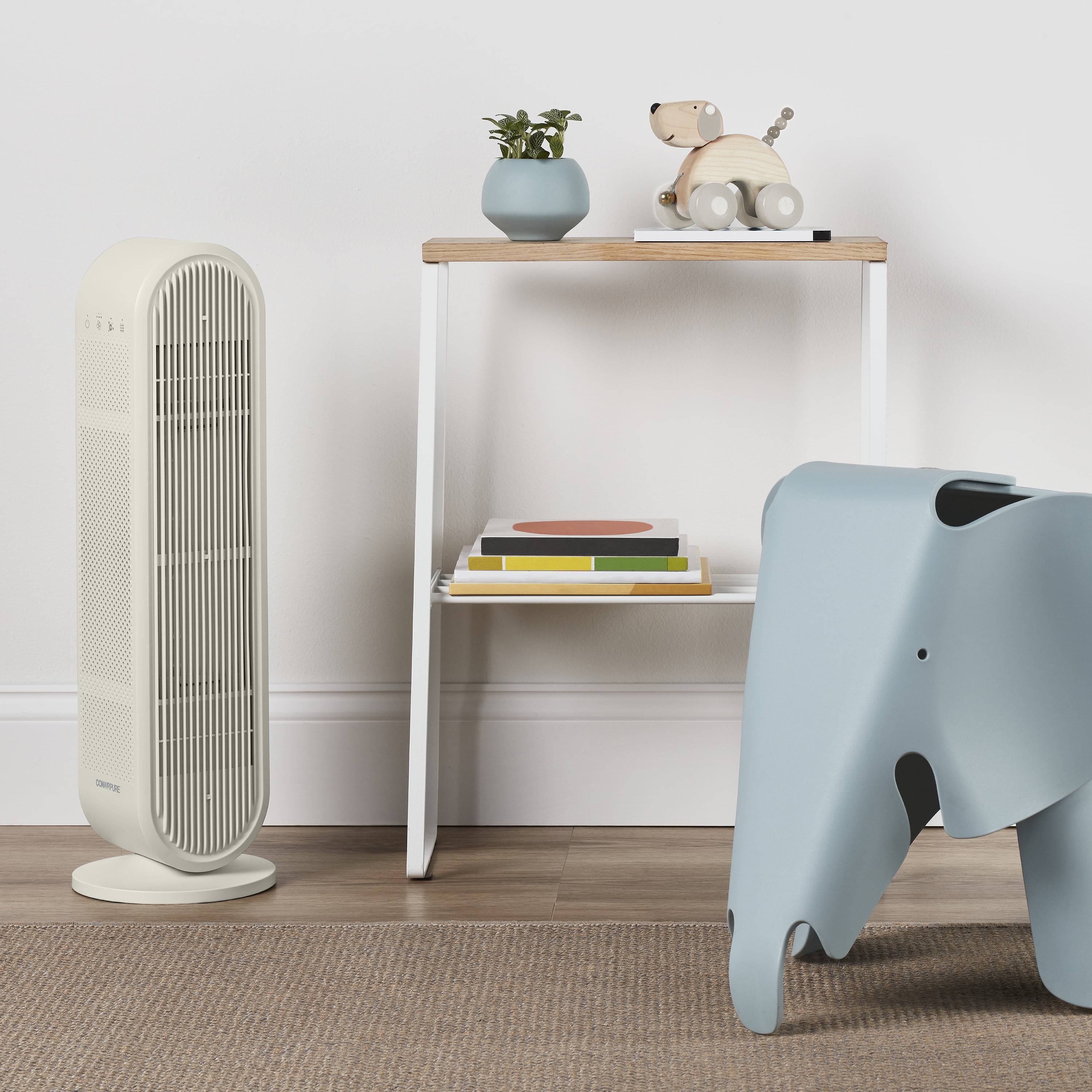 Four-Stage Filtration System: Prefilter catches large particles, activated carbon filter helps removes odors, true HEPA filter removes up to 99.5% of particles as small as 0.1 microns, positive and negative ion generator attracts and captures pollutants in the air (when used in accordance with enclosed Directions for Use). Fresh Air: Captures dust and dirt, volatile organic compounds, smoke, pet dander, and pollen. Quiet Operation: BLDC motor has 3 fan speeds Slender Profile: Blends into every decor with thin design and neutral color. Replace Filter Indicator: Lights up when filter needs to be replaced. Dual Position Design: Use upright with included stand or lay it flat on its side. Cycles air up to 200 sq. ft 2x every hour (ACH): Perfect for bedrooms, playrooms, living spaces, offices. Easy Filter Replacements: Join the ConairPure™ Community and register for replacement filter reminders and special offers at register.conair.com.