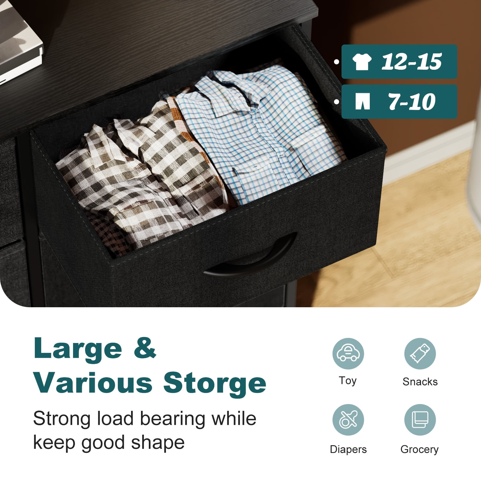 CONCETTA 8 Drawer Dresser for Bedroom, Tall Chest Organizer with Fabric Bins, Steel Frame, Black