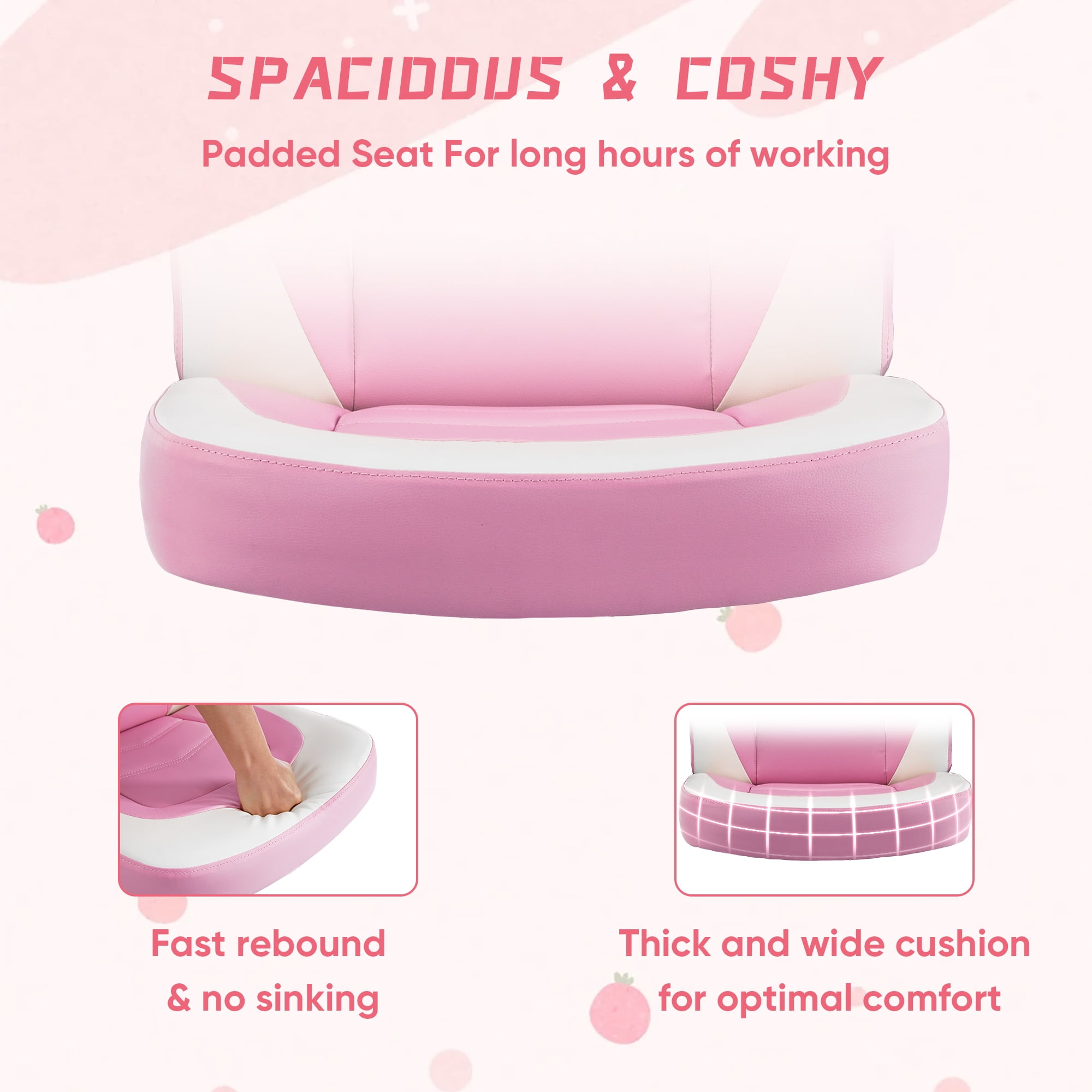 CONCETTA Computer Gaming Desk Chair – Ergonomic Office Executive Adjustable Swivel Task PU Leather Racing Chair with Flip-up Armrest, Pink White