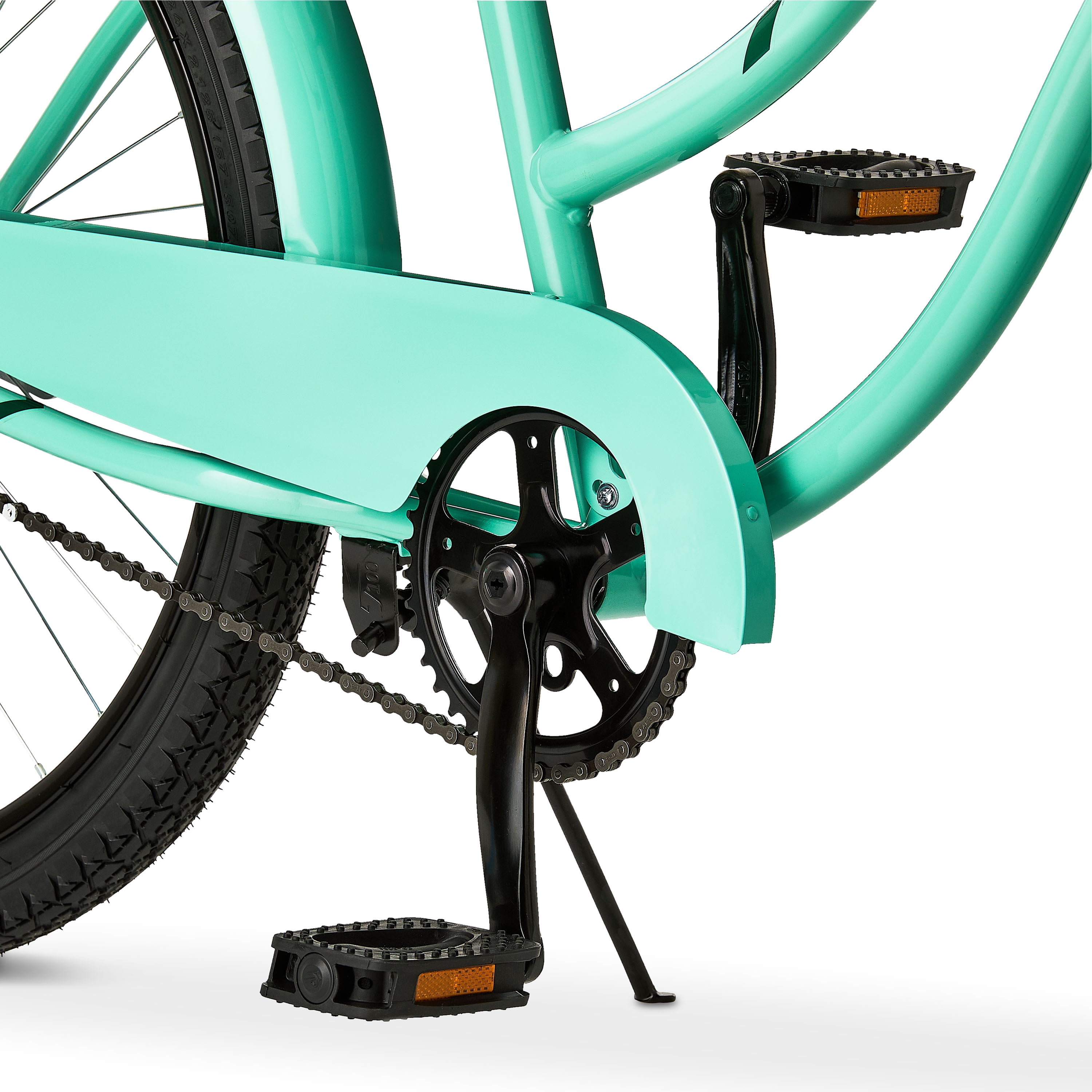 Stylish Design: Features a beautiful pastel green steel frame that is sleek and stylish. Padded Seat: The wide padded saddle offers extra comfort for leisurely rides. Steel Frame: Durable and built to handle relaxed cruising. 24-Inch Tires: Smooth-rolling for easy pedaling on flat surfaces. Easy-To-Use: Coaster brakes for simple stopping with pedal back action. Comfort Grips: Soft and textured for better control and a relaxed ride. Classic Cruiser: Ideal for casual riders looking for a laid-back ride. Age Group: Ideal for ages 12-19 years old Character Group: Cruiser Bike