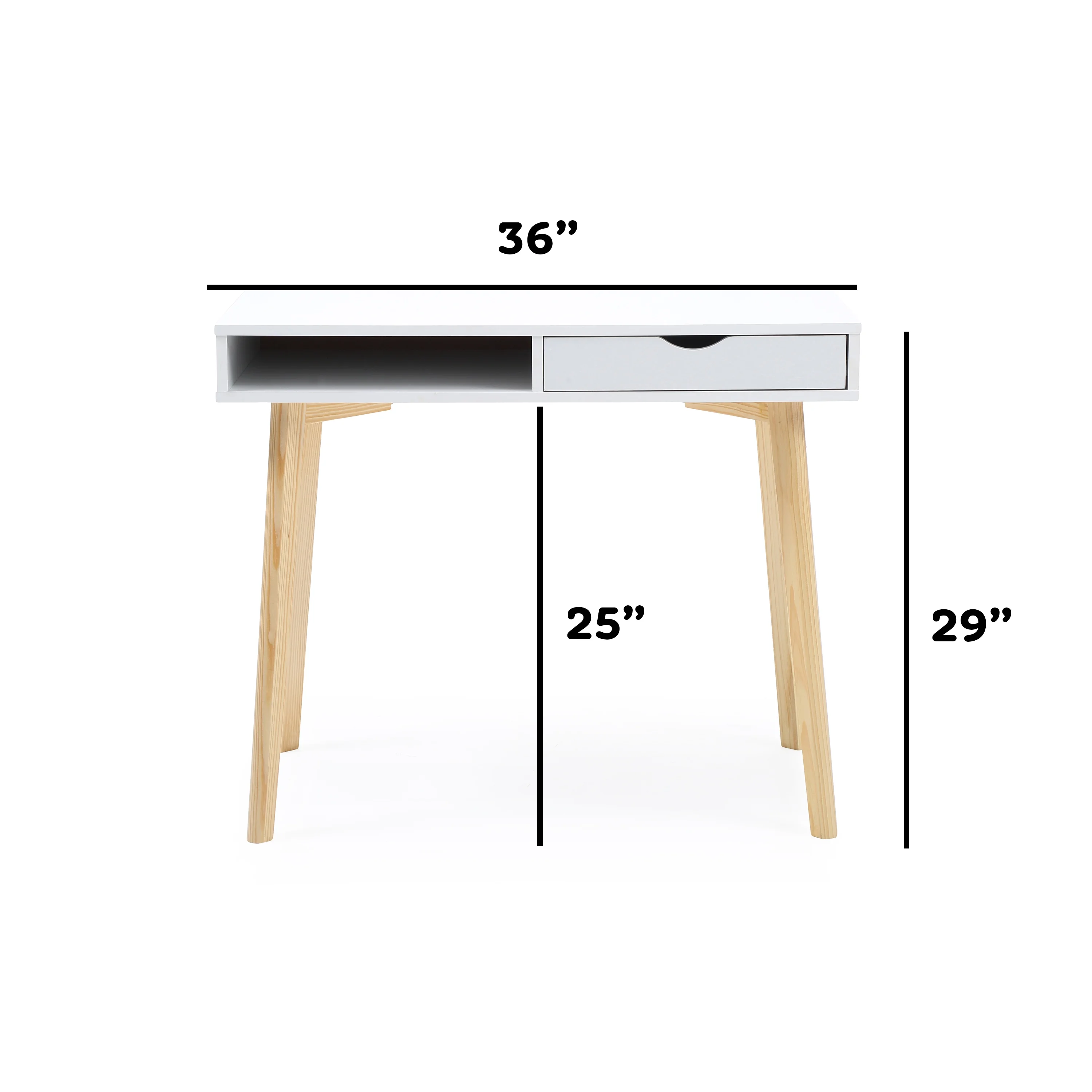 Desk Drawers – We included drawers in the Austin’s design for your storage needs/convenience Natural Finish – The legs include a natural wood finish that give the Austin desk the capability of adapting to any style of home furnishing you decide to include it in Durability – The Austin is made from select hardwoods, giving it to ability to hold large amounts of weight and lasting you for years to come Place Anywhere – Mainly ideal for home offices or a college dorm, it can also be an ideal piece of home decor in any other room you have in mind Size – 29.5″ H x 35.4″ W x 17.7″ D 29.5″ H x 35.4″ W x 17.7″ D