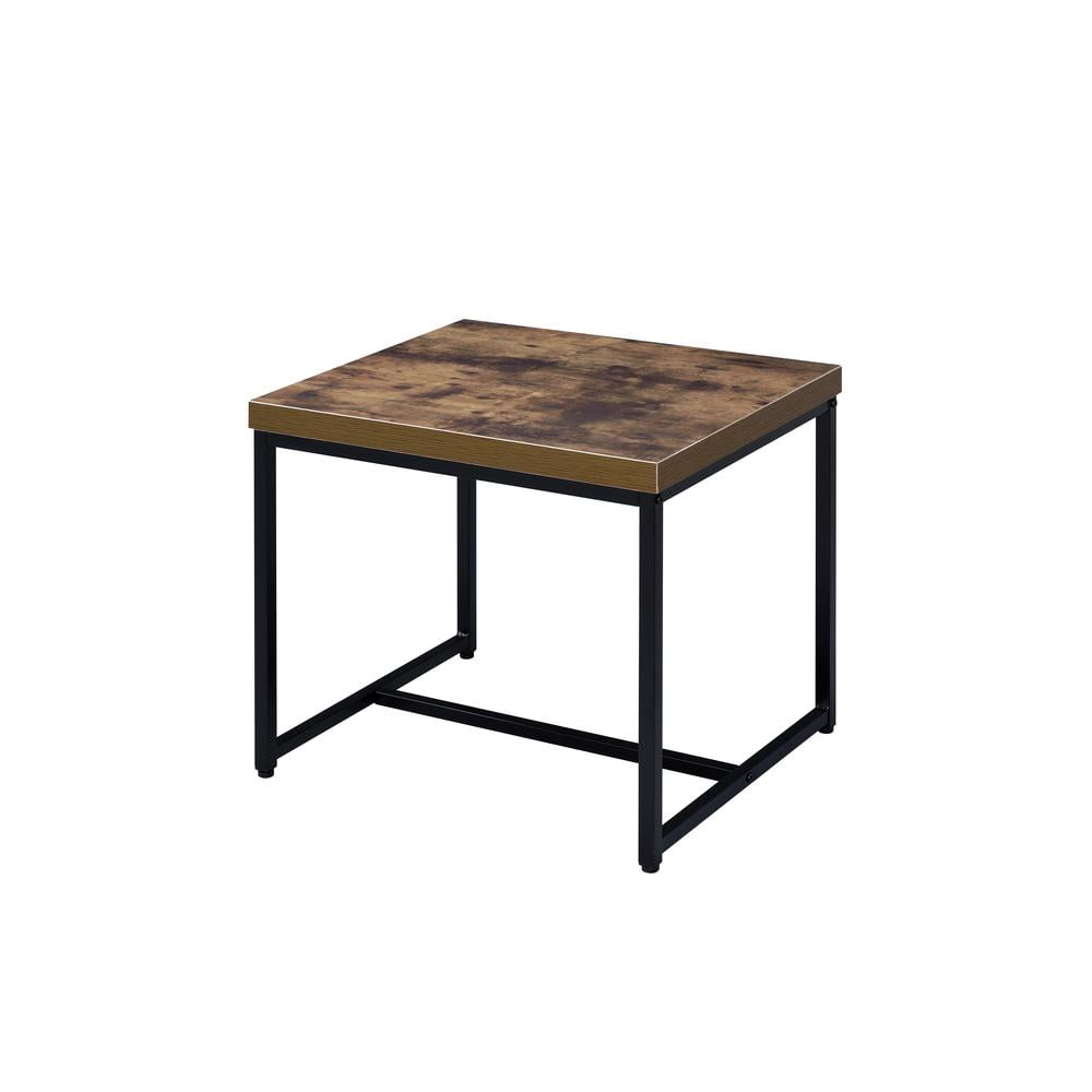 Contemporary Style Rectangular Wood and Metal End Table Brown and Black – Saltoro Sherpi This contemporary style end table is made with simplicity and smooth finish for that extra shine in your room. The table complements all your belongings placed on it such as flower vase and table clocks. The product is designed in such a way that it suits all kinds of furniture in your room. Specifications: A table with sled legs Features wooden oak finished table top It is made with metal and wood. Overall Dimensions: 22 inches in Length x 19 inches in Width x 19 inches in Height Perfectly blends with all dcor styles.