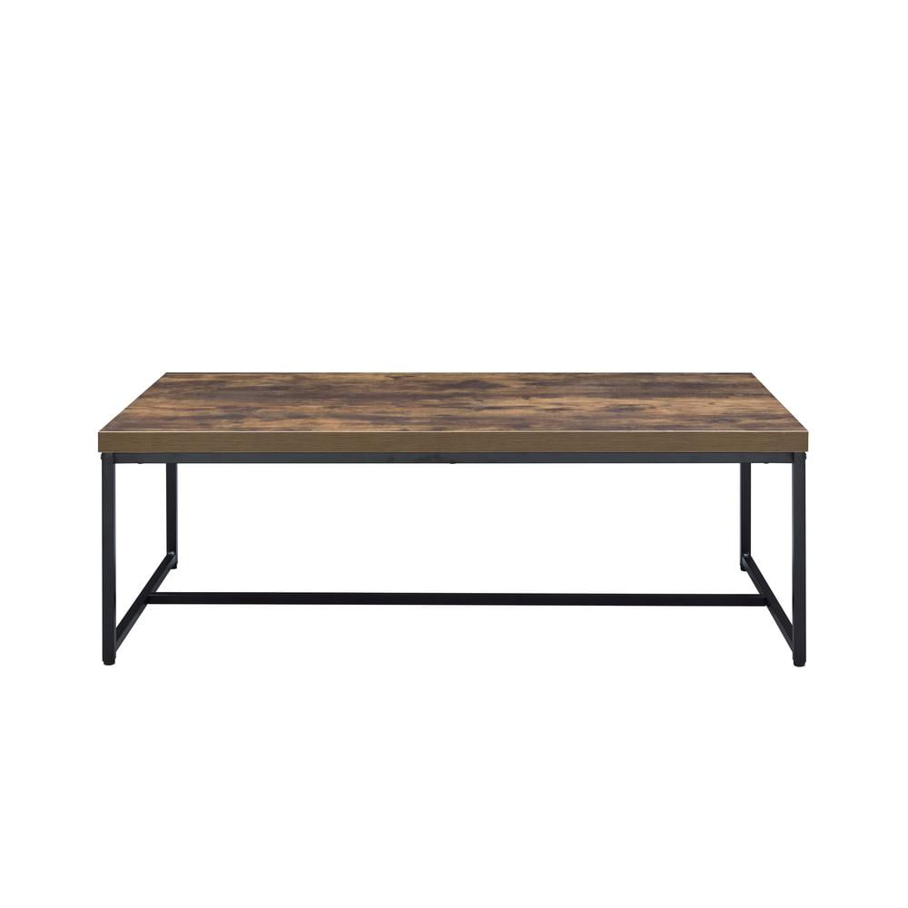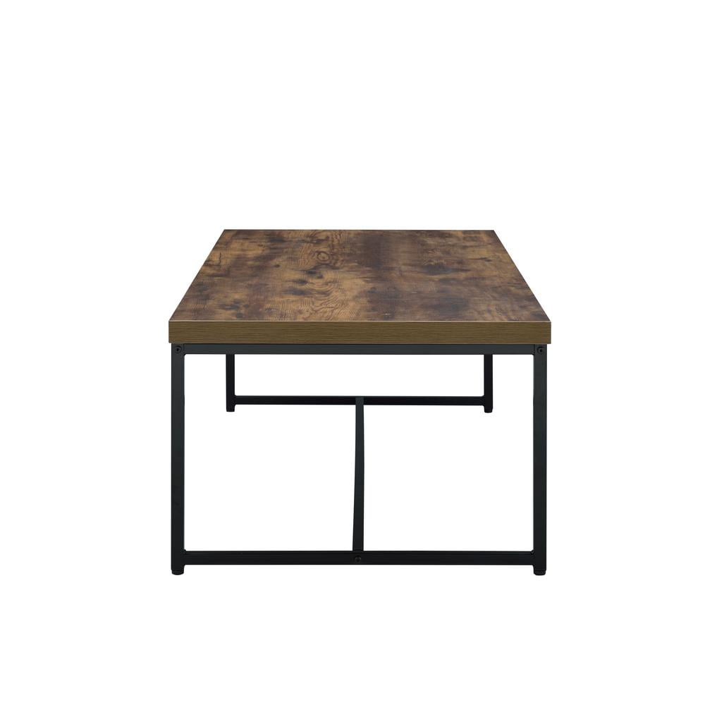 Wooden Top Metal Sled Base Crossbar Support Powder Coating Metal Tube Weathered Oak and Black Finish Contemporary Style