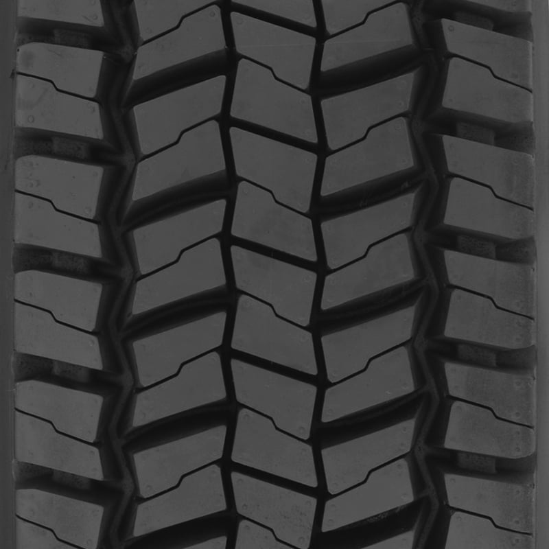 Durable construction Damage resistant design Wet or dry performance The HDR is designed for use in the drive position and is ideal for short and long haul and on- and off-highway service Built with a multi-service tread compound that improves traction and performance Offset center tread blocks are designed to strengthen all weather traction Features tapered tread grooves that force out stones and other debris for a longer service life The HDR is Smartway verified thanks to its low rolling resistance design that enhances fuel efficiency