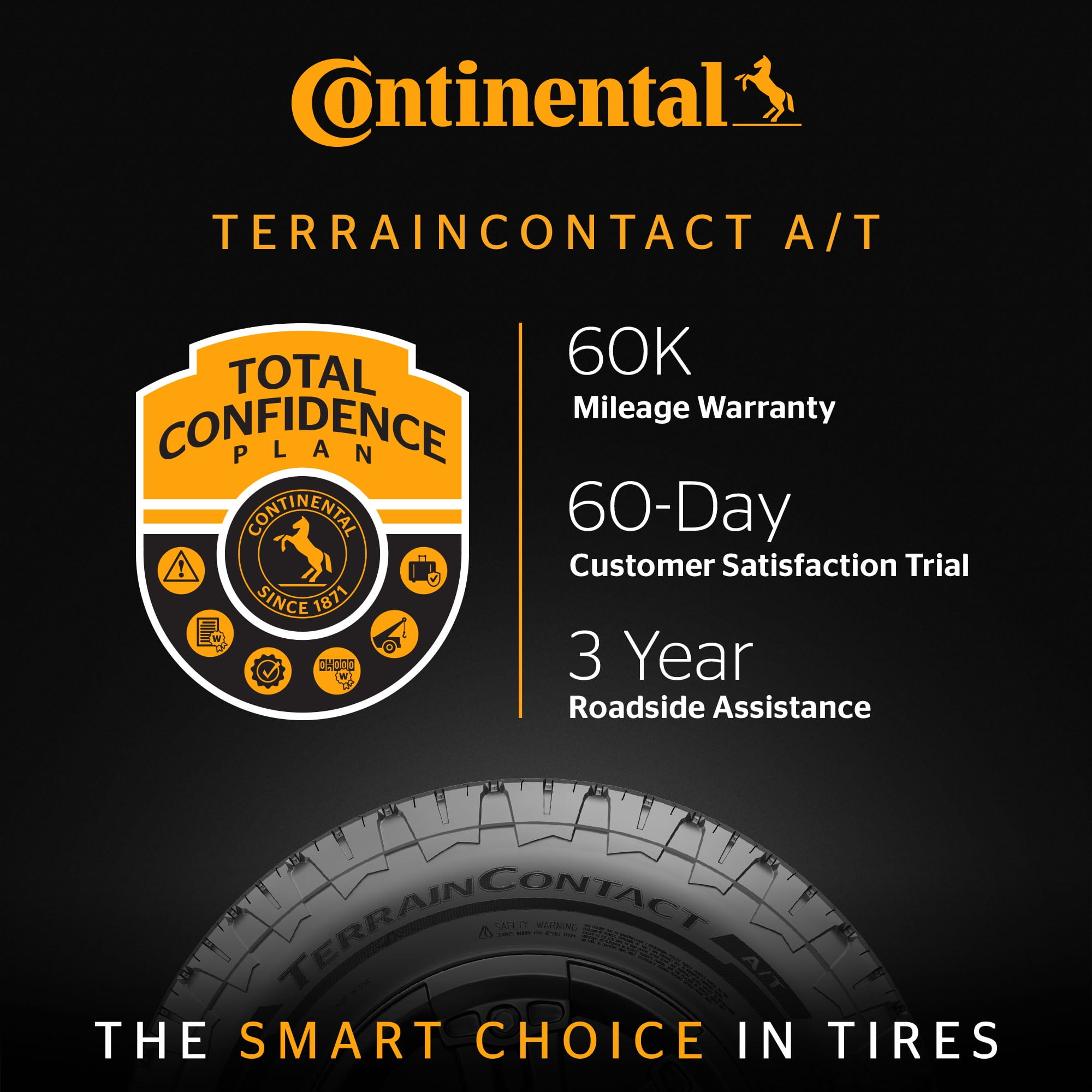 Continental TerrainContact A/T 245/60R18 105H OVERVIEW The Continental TerrainContact A/T is a premium all-season all-terrain tire for crossovers, SUVs, and light trucks that is backed by 60,000-mile limited manufacturer tread life coverage. Built for robust durability and balanced traction, the TerrainContact A/T features Continental’s TractionPlus Technology (on select sizes) for traction, durability, grip on wet roads, and a quieter road.