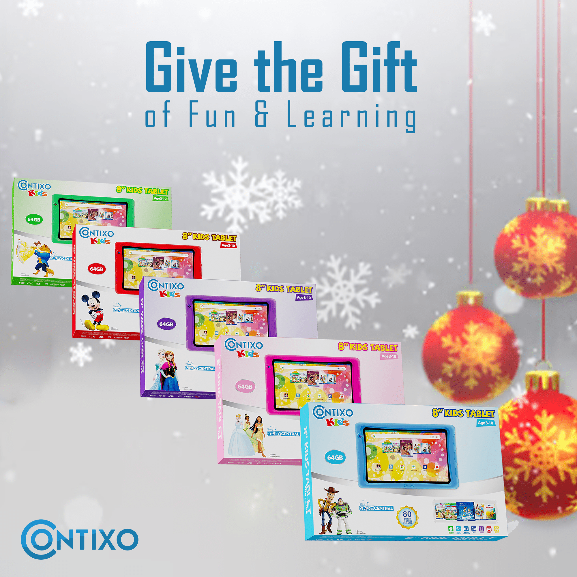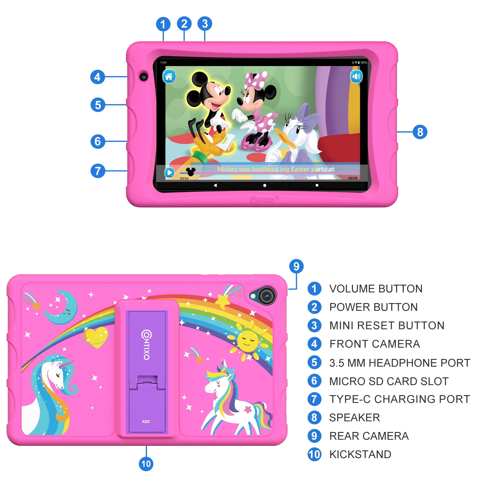 Contixo 8″ Kids Tablet, 2025 Model, 80 FREE Disney eBooks, Educational Android Tablet for Ages 3-12, 32GB, Kid-Proof Case with Kickstand, Android 13 – Pink
