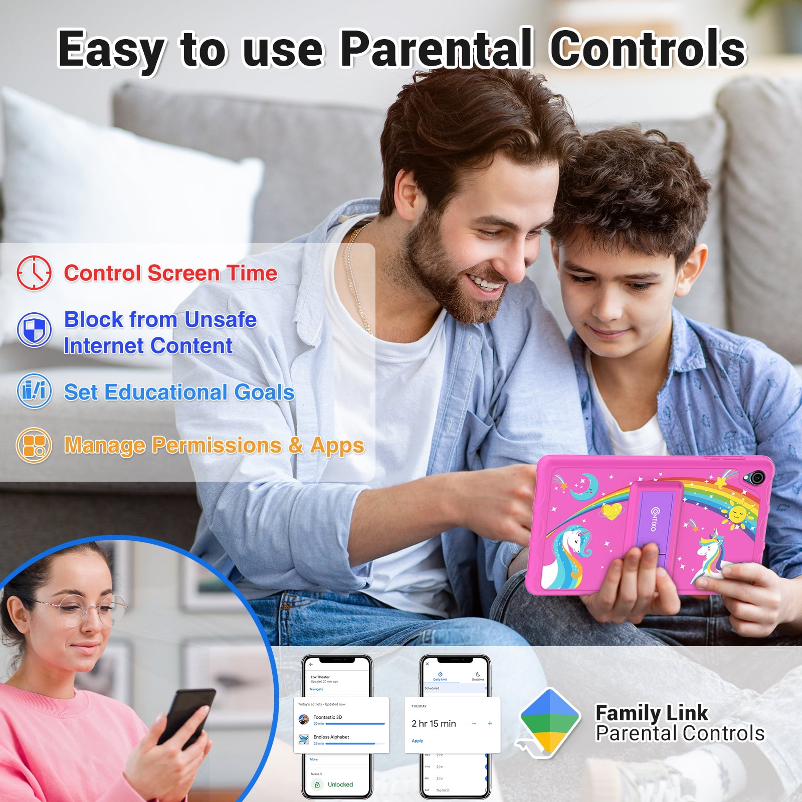 80+ Disney eBooks and Videos ($350 Value): Includes 80 exciting eBooks featuring beloved Disney characters, promoting fun and engaging reading for kids. Parental Controls: Allows parents to manage screen time, content, and ensure a safe online experience. Kid-Proof Case with Kickstand: Durable protective case designed to withstand bumps and drops, with a built-in kickstand for hands-free use. Google Play & YouTube Kids: Access to educational apps, games, and kid-friendly videos. 8-Inch HD IPS Display: Crisp 1280×800 resolution for vibrant visuals, ideal for educational apps, games, and videos. Android 13: Access to a wide range of apps and games from the Google Play Store for endless entertainment and learning. Octa-core 2.0GHz Processor with 3 GB RAM: Fast and smooth performance for multitasking and running multiple apps. Google Play & YouTube Kids: Access to educational apps, games, and kid-friendly videos. 32GB Storage: Expandable up to 128GB for apps, games, and videos. 1-Year Limited Warranty: Ensures reliability and peace of mind for parents and grandparents.
