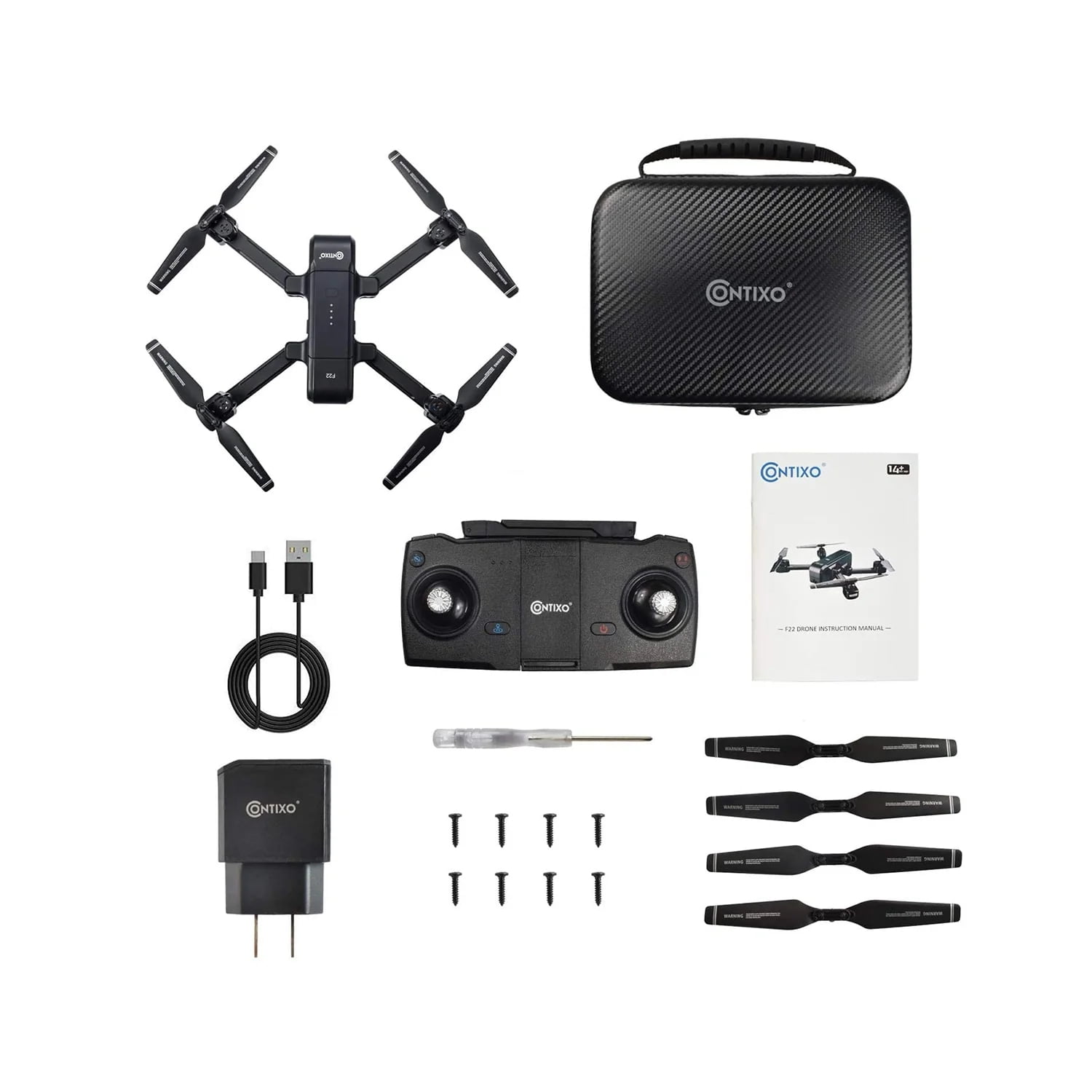 Includes Selfie/Gesture Mode, Follow Me, Automatic Hovering (Auto Hover) / Altitude Hold, First Person View (FPV), 1-Key Takeoff & Landing / Auto Return, Tap Fly (Fly by Tapping via Smartphone & App), Point of Interest (360° Following Rotation, Auto Hover in Circular Rotation), Fail-Safe Return To Home, & More! This allows you to both take photos in 4K FHD or record live video in 2K HD. Use your smartphone and a free downloadable app to fly and operate your Contixo F22 RC Remote & App Controlled drone, live stream video during flight for First Person View (FPV), Bird’s Eye View, etc. Comes with adjustable 2.4 GHz 4K 25fps Wi-Fi HD camera (50m~300m; 150ft~1,000ft). Works with both iPhone iOS and Google Android devices No need to assemble or put together the drone. It is ready to fly right out of the box The small, compact, and extremely portable design makes it fun to take it anywhere and everywhere you go Never worry about removing and/or uninstalling the propellers or disassembling the drone again This carrying case makes it safe and very convenient to carry your flying RC vehicle around