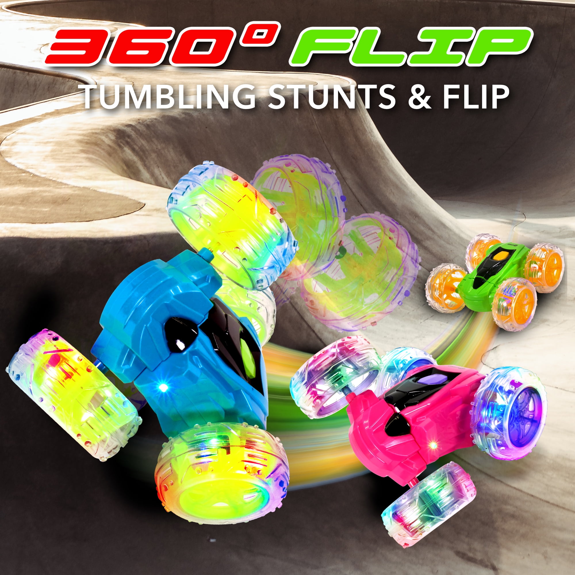 Performs flips, spins, and double-sided driving for non-stop fun. Encourages hand-eye coordination, motor skills, and problem-solving while kids learn to master stunts. Built with tough, impact-resistant materials to handle bumps, jumps, and crashes during play. Includes a 3.7V battery providing up to 20 minutes of playtime on a single charge. Handles various surfaces like gravel, grass, and sand, ensuring smooth performance across different environments. Provides easy and intuitive control, perfect for young kids learning to navigate stunts. Wheels light up with multi-color LEDs, adding visual excitement to every stunt. Lightweight and easy to carry, great for both indoor and outdoor adventures. Allows for precise control with anti-interference, so multiple cars can race simultaneously. An ideal birthday or holiday gift that provides hours of entertainment for both boys and girls.