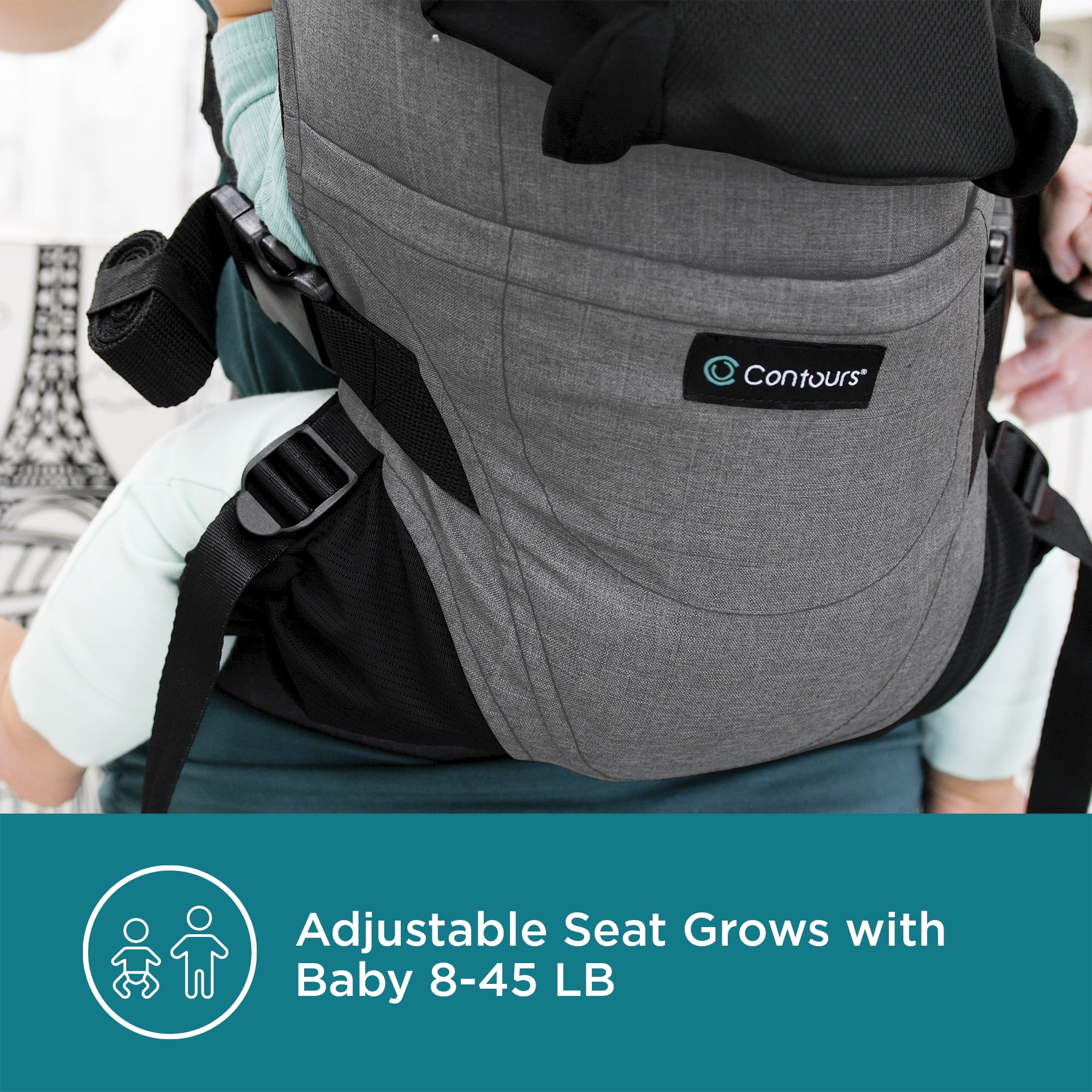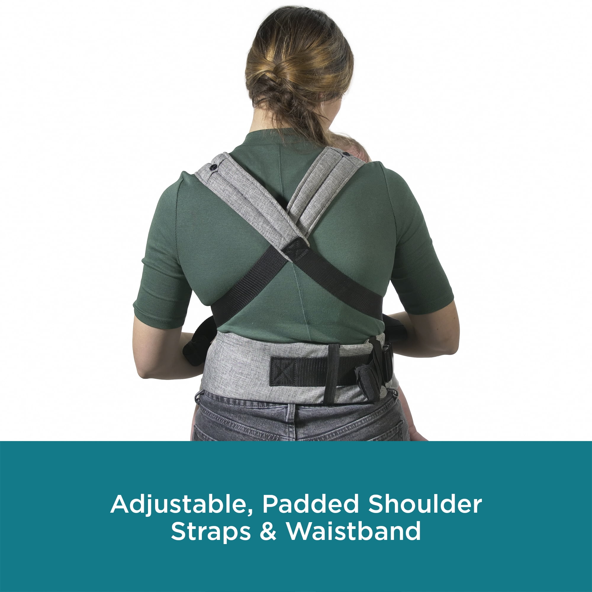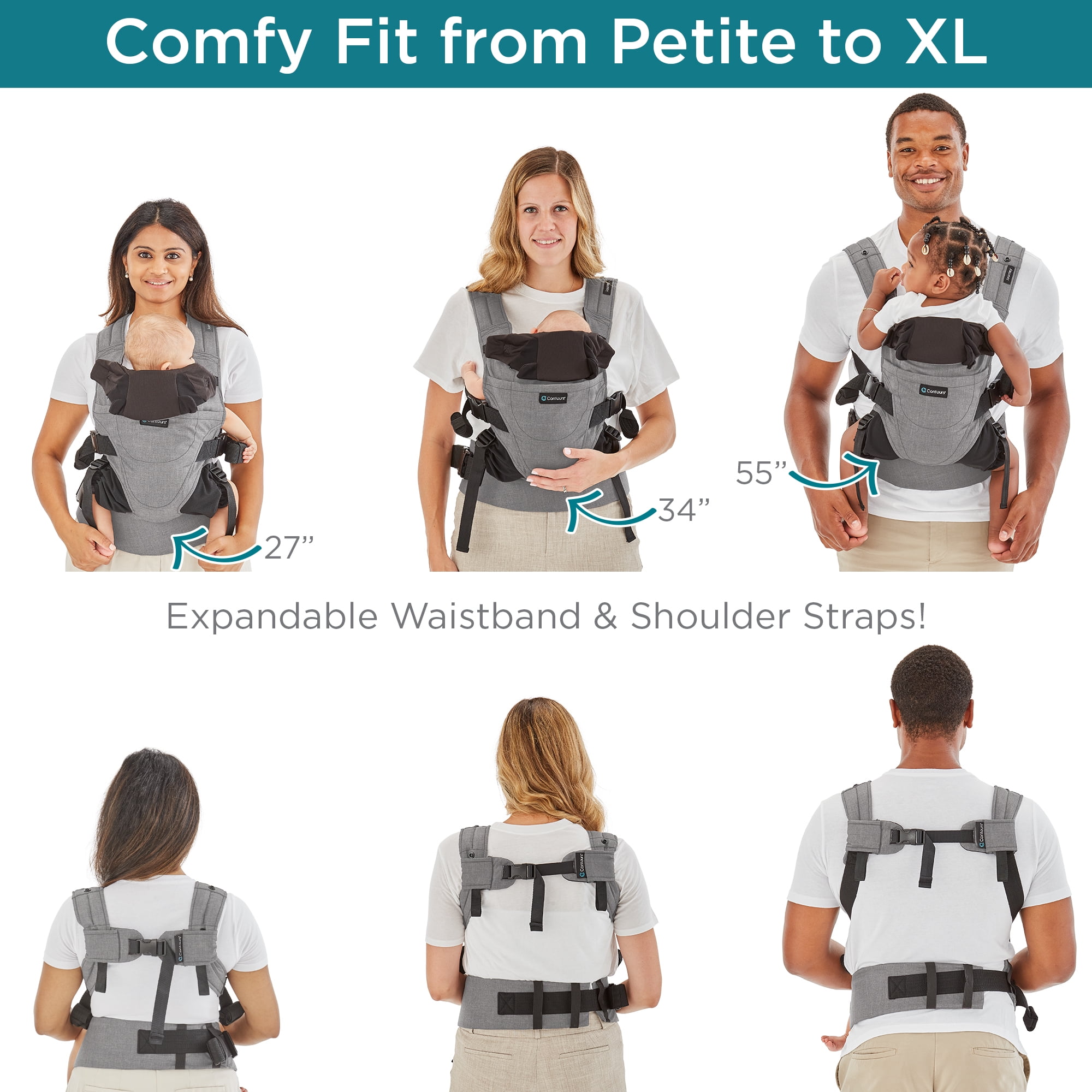 GROWS-WITH-BABY 5 CARRYING POSITIONS: carrying positions to adapt and grow with baby from 8-45 lb: Newborn, Facing In, Facing Out, Hip, and Back. Hip-healthy design supports baby’s hips and legs in a supportive position, and follow the recommendations of the International Hip Dysplasia Institute. EASY TO WEAR & LIGHTWEIGHT: Padded, comfy shoulder straps and waistband distribute baby’s weight for a comfortable carrying position ONE SIZE FITS MOST: Fits Petite to XL so both parents can share the same baby carrier and the shoulder straps can be worn crossed or backpack style for a customizable fit MACHINE WASHABLE: Cleanups are a breeze, simply machine wash for easy cleanings FITS BABY 8-45 LB: No separate infant insert is required for your newborn (8 lb). All carry positions available right out of the box. HIP-HEALTHY M-Position for baby supports their legs and hips in a natural position for baby’s development 3 ZIPPERED STORAGE POCKETS: A separate pocket, just for the UPF 25+ sunshade, leaves you plenty of room to store your items in the two other zippered storage pockets. Easily carry your phone or cash in the convenient waistband pocket UPF 25+ SUNSHADE: Removable, extra-large sunshade provides UPF 25+ protection for baby. Sunshade can be moved up or down for just the right coverage, or can be removed when its not needed