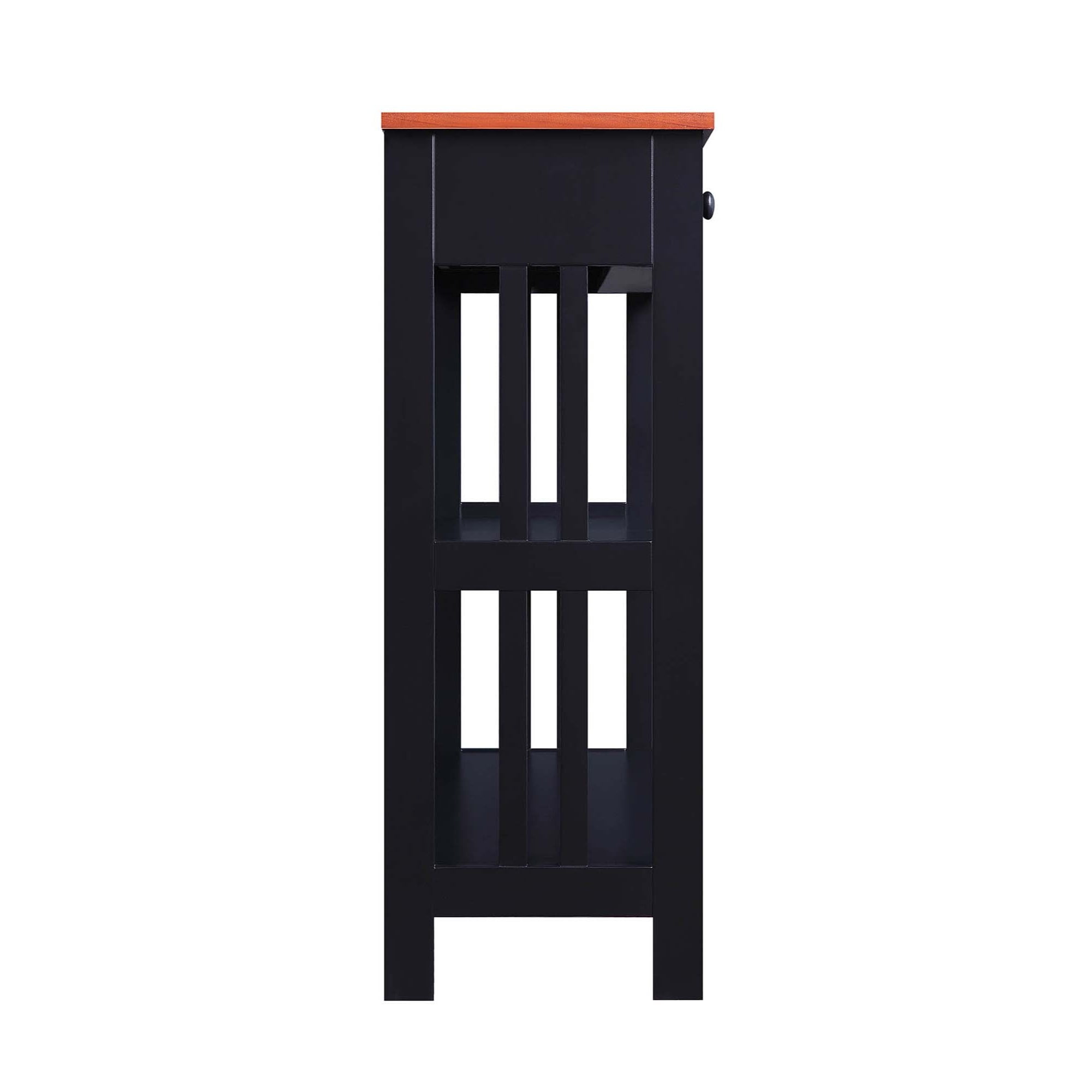 Finish: Cherry/Black Part of the Mission Collection by Convenience Concepts Flaunts a contemporary style Made from MDF and non-lead based paint Drawer for Concealed Storage Offers a simple 9-step assembly Bottom Shelf for Additional Storage Overall Product Dimensions: (W) 39.5 in. x (D) 12 in. x (H) 31.5 in. Assembly Required: Yes Preferably Indoors / Residential Color May Vary Slightly Due to Photography Lighting or Monitors Display