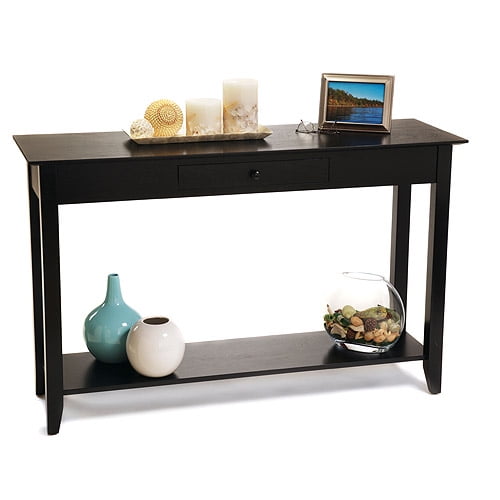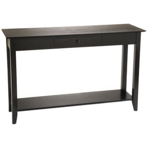 Convenience Concepts American Heritage 1 Drawer Console Table with Shelf, Black Pine Wood Finish
