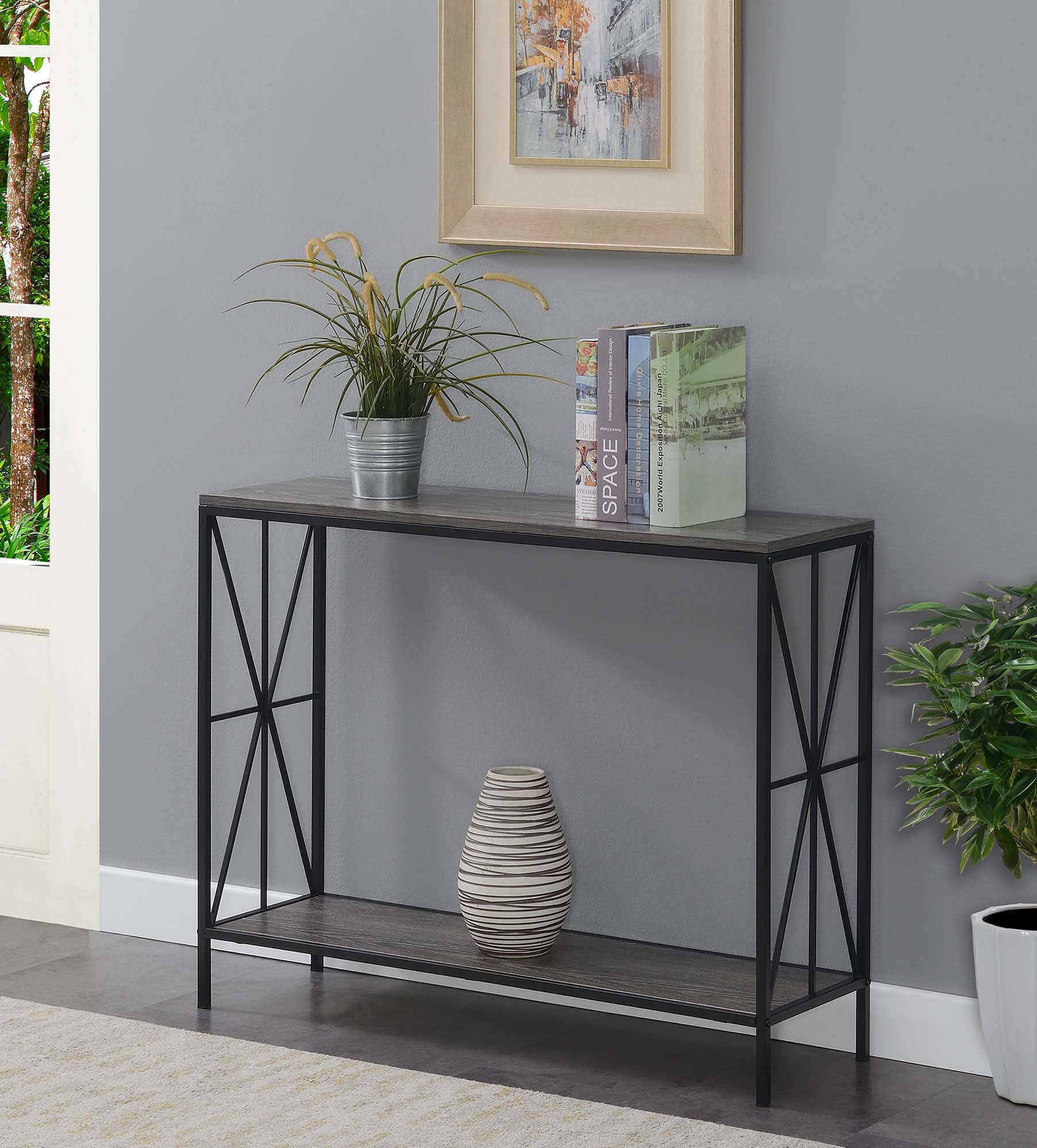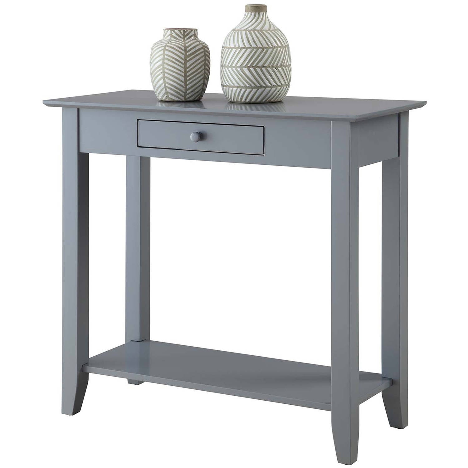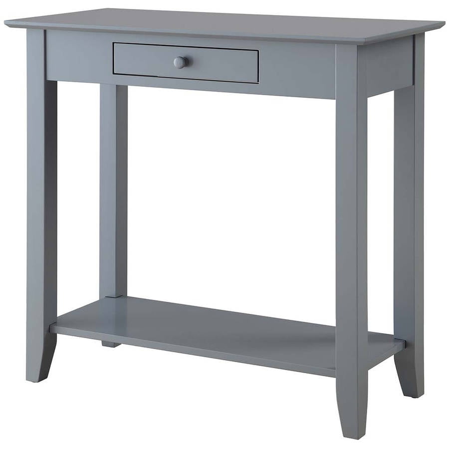 With its charming and modern design, the American Heritage Hall Table by Convenience Concepts is the perfect addition to any decor. Featuring a convenient drawer for storage that allows you to keep small accessories handy, yet hidden away. Also featuring a bottom shelf for additional storage so you can display your favorite collectibles. Now available in multiple finishes, and since it’s made of wood, you know it’s built to last. Features: Beautiful gray wood finish Bottom Shelf for Additional Storage Material: Solid Pine Wood Easy Assembly Tools Provided Features one drawer Fits nicely with any décor Will Provide Years of Enjoyment 30″ H x 31.5″ W x 14″ D Specifications: Product Dimensions: 30″ H x 31.5″ W x 14″ D Product Weight: 26