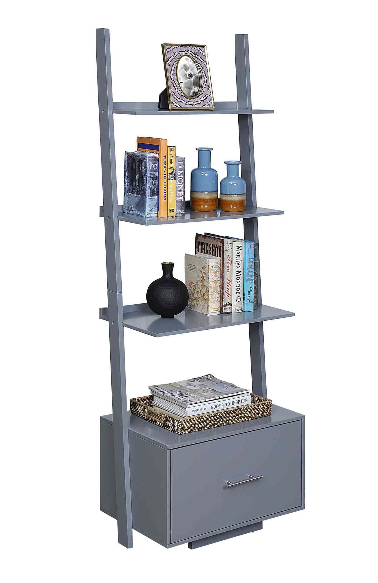 Convenience Concepts American Heritage Ladder Bookcase with File Drawer, Gray