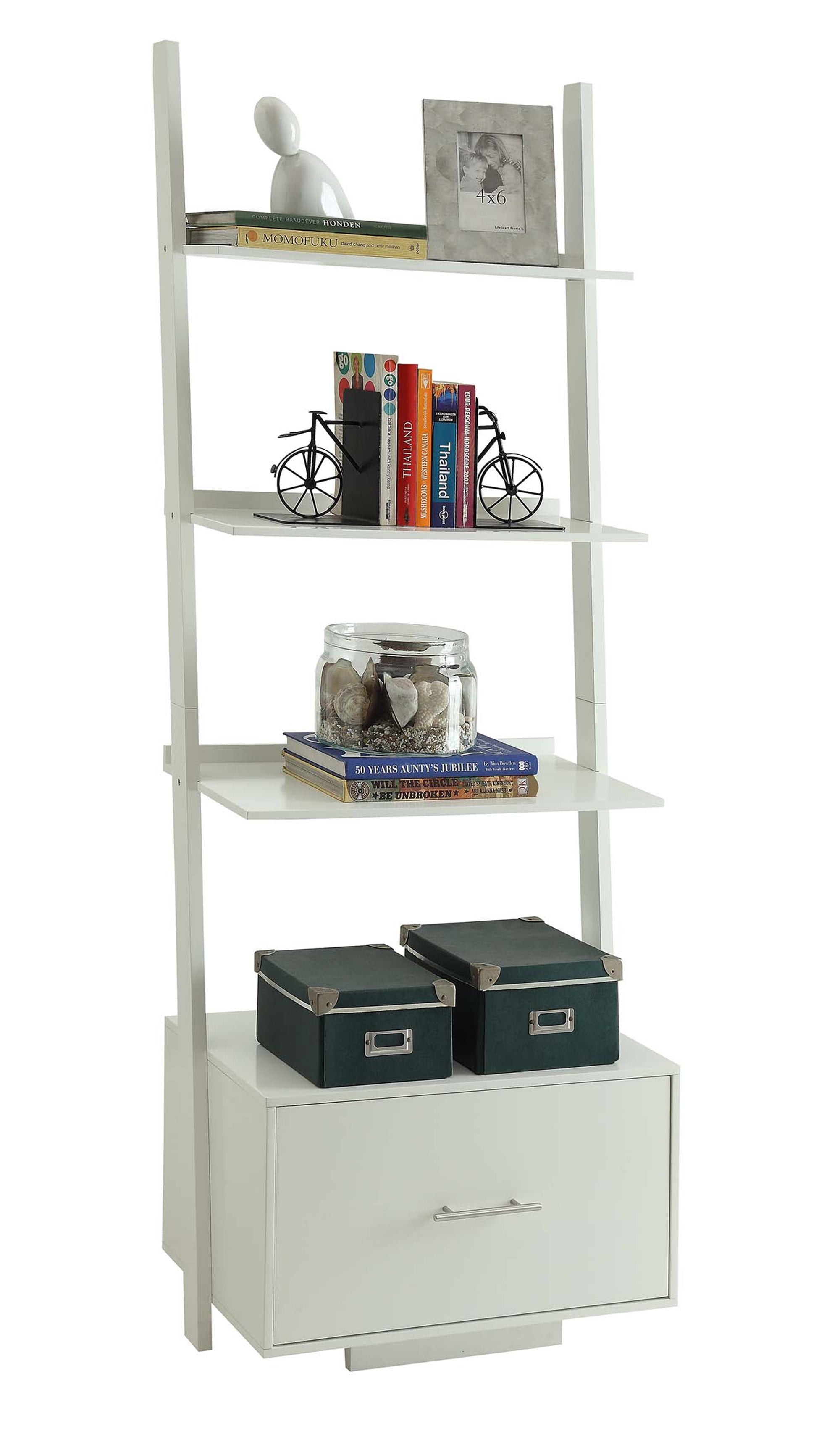 Convenience Concepts American Heritage Ladder Bookcase with File Drawer, White