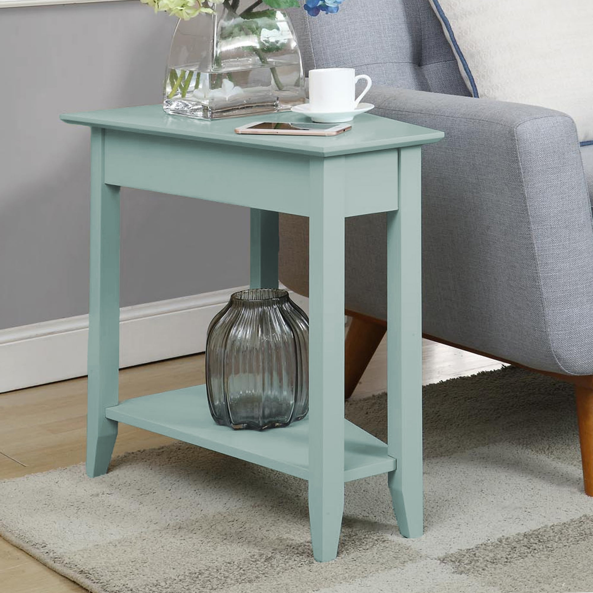 Convenience Concepts American Heritage Wedge End Table with Shelf in Mint Green