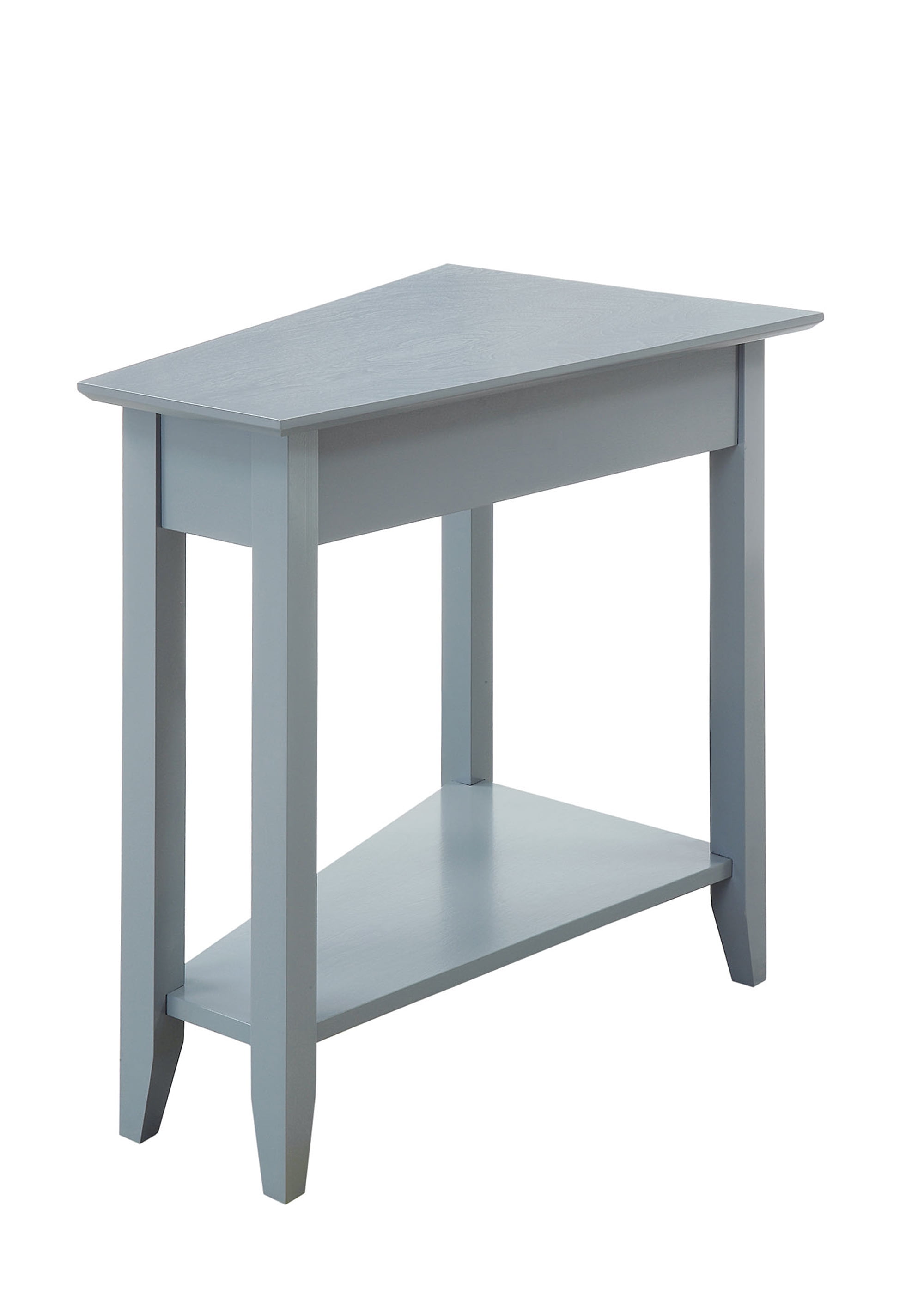 Uniquely shaped the American Heritage Wedge End Table is the perfect piece to fit anywhere. In Rich colors and featuring additional bottom shelf storage, it will be sure to give any room decor that finishing touch.