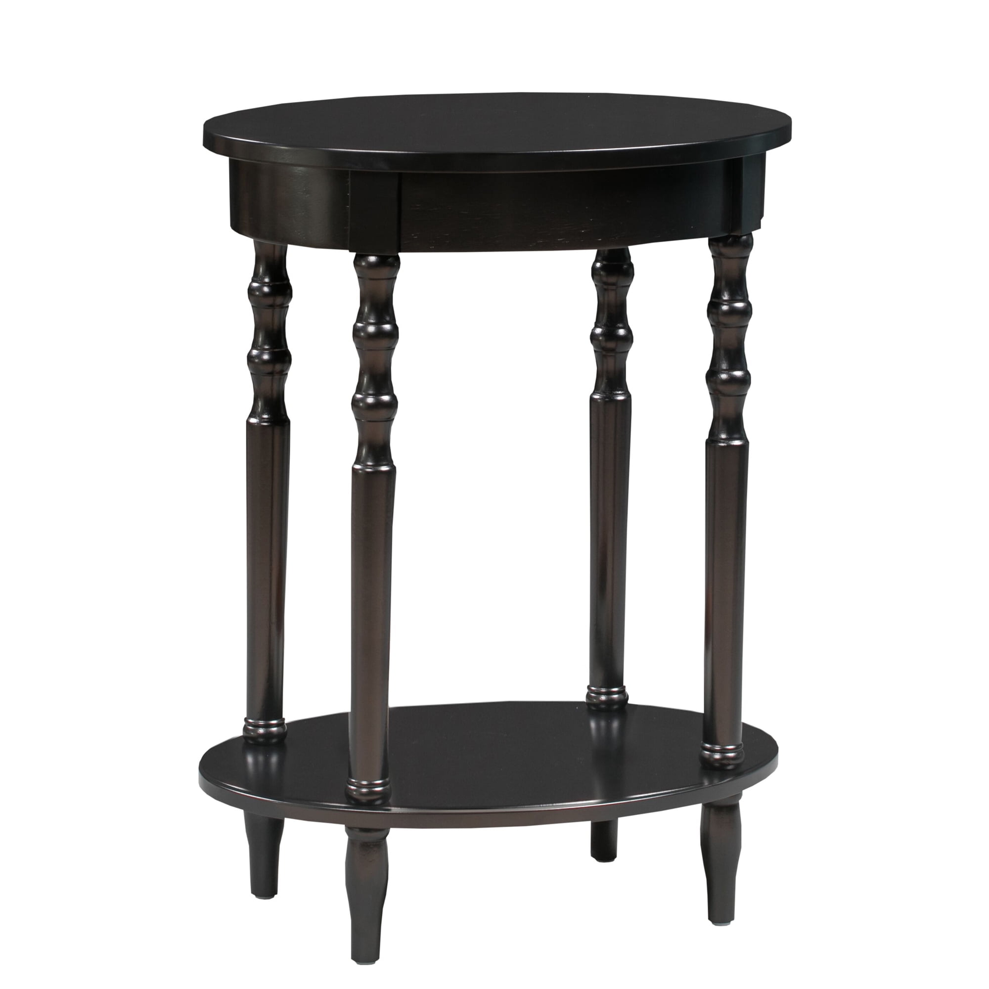 Bring new life to your space with the Classic Accents Brandi Oval End Table with Shelf by Convenience Concepts. Featuring a bottom shelf for additional storage and display. The classic oval shape paired with the spindled legs give this piece stunning character. Crafted from solid wood this piece will quickly become a staple in your home. Available in multiple finishes this piece will easily complement any new or existing decor.
