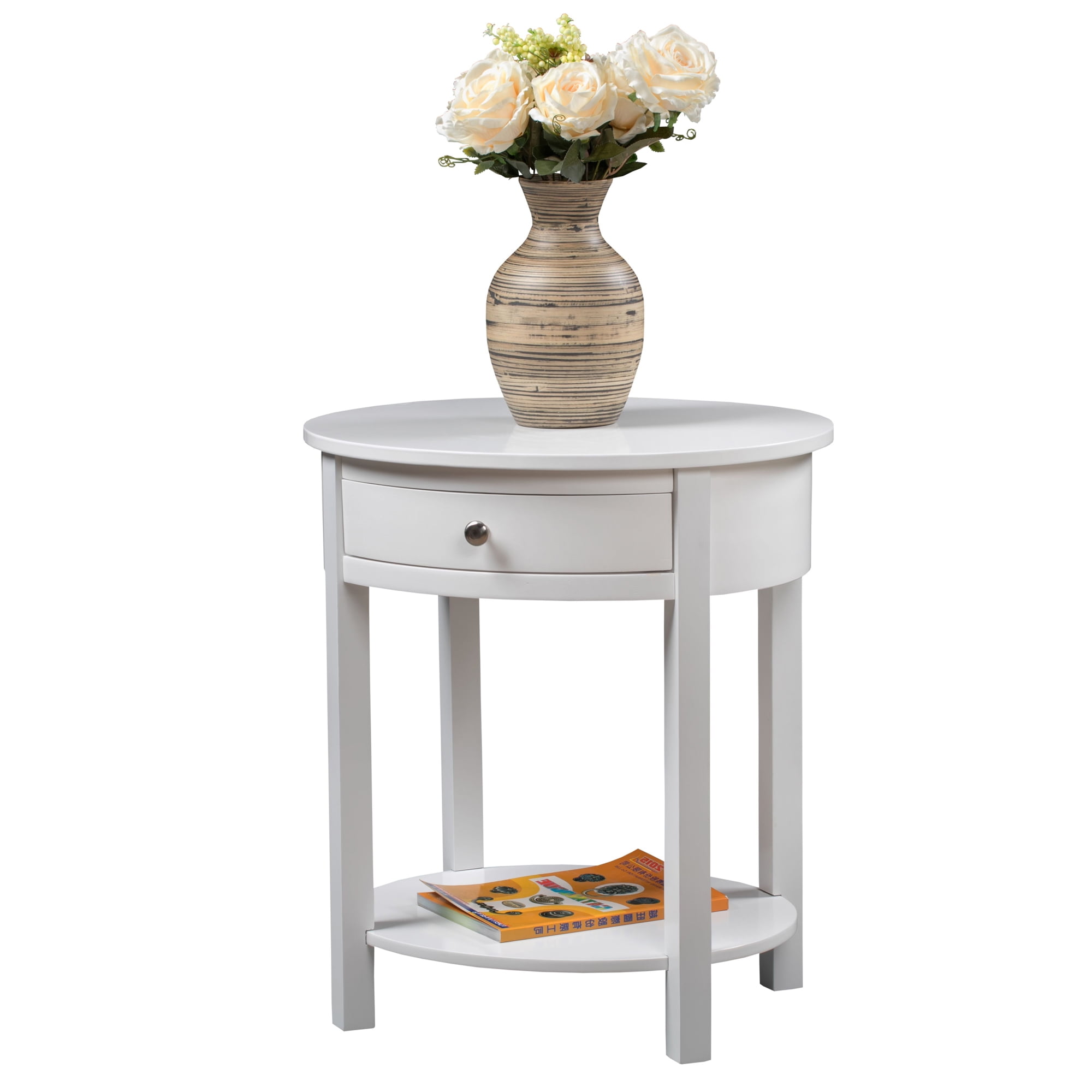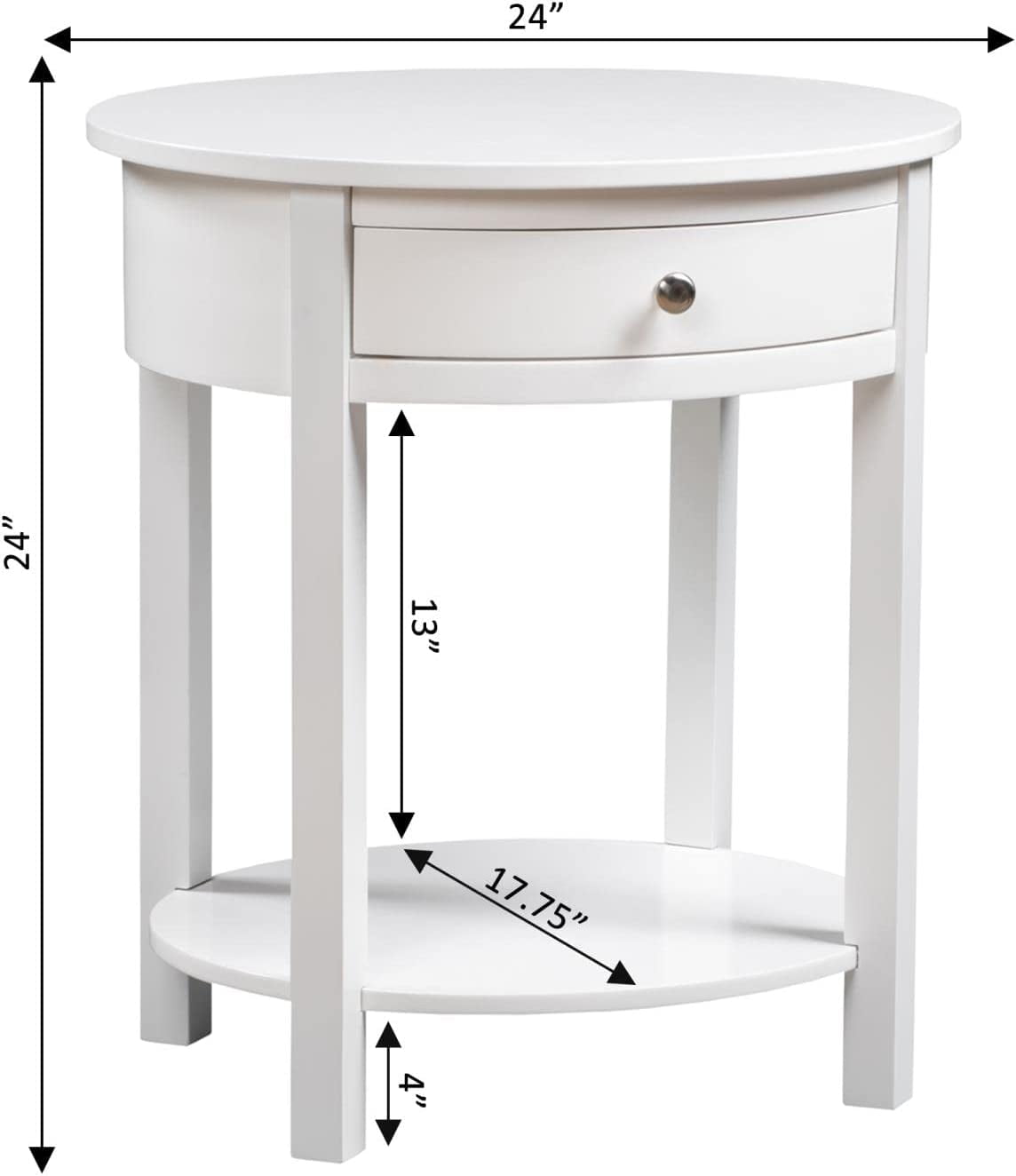 Features: Classic Oval Shape Drawer for Concealed Storage Bottom Shelf for Additional Storage and Display Crafted From Solid Wood Brings style and functionality home Available in Multiple Finishes Overall dimensions: 24″W x 20″D x 24″H