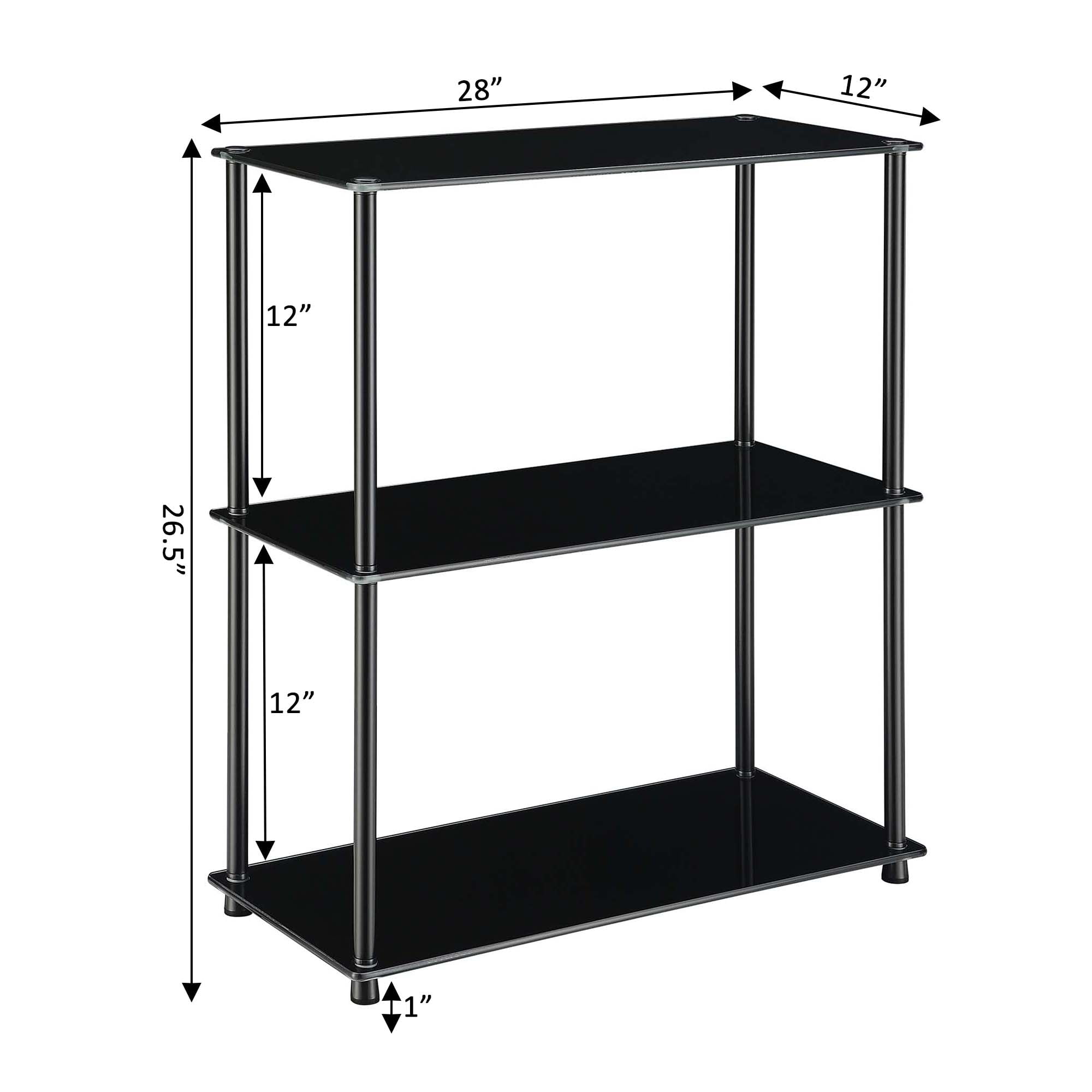 Convenience Concepts Designs2Go Classic Glass 3 Shelf Bookcase, Black Glass
