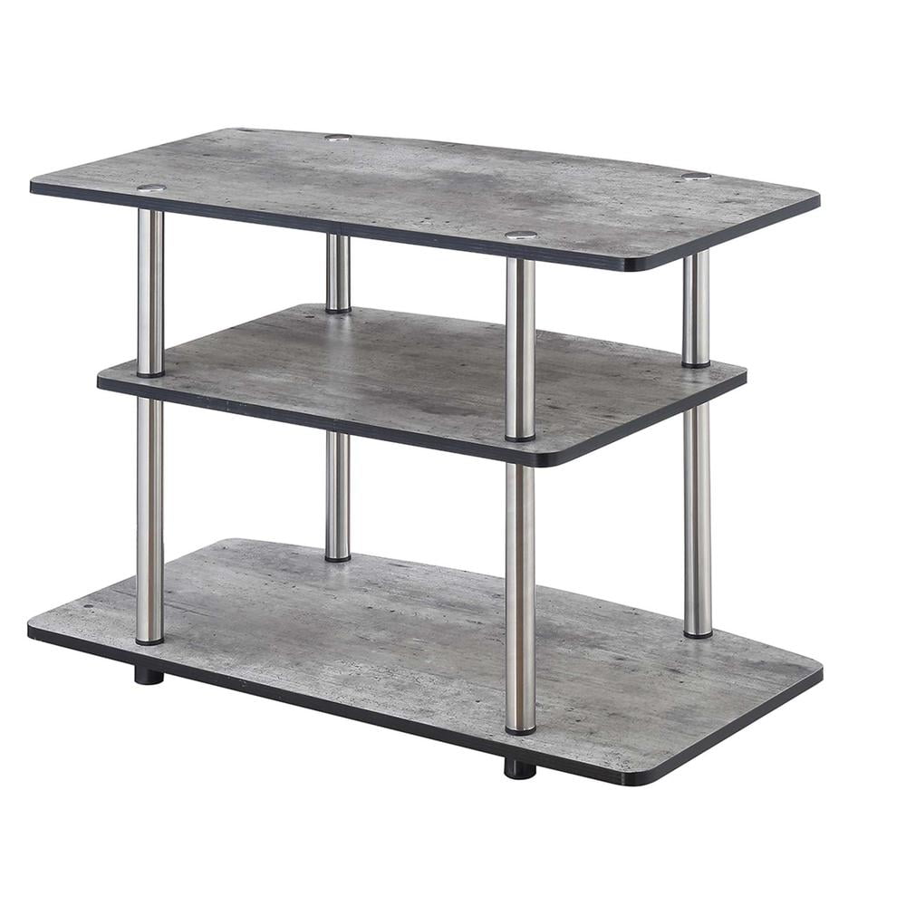 Optimize your space with the Designs2Go No Tools 3 Tier TV Stand from Convenience Concepts. Its open concept design and contemporary style will fit perfectly in your living room or home study. This piece features three tiers of shelving that provide ample space for all your entertainment essentials. Each shelf is constructed of particle board and melamine giving this TV stand a lifetime of durability. The shelving is also supported by powder-coated stainless-steel tubes that will not rust while plastic caps with rubber soles cover the bottom to help protect your floors. Assembling this stand is quick and easy with no tools needed. Complete your modern space with coordinating pieces from the Designs2Go Collection by Convenience Concepts.