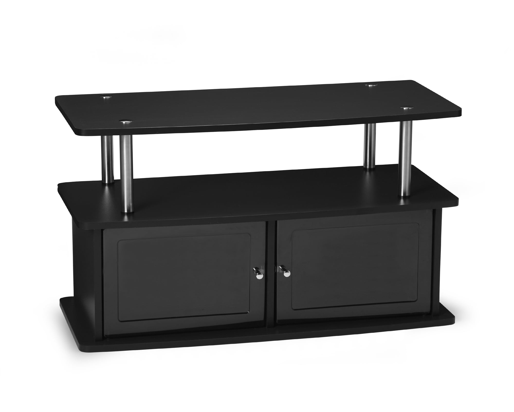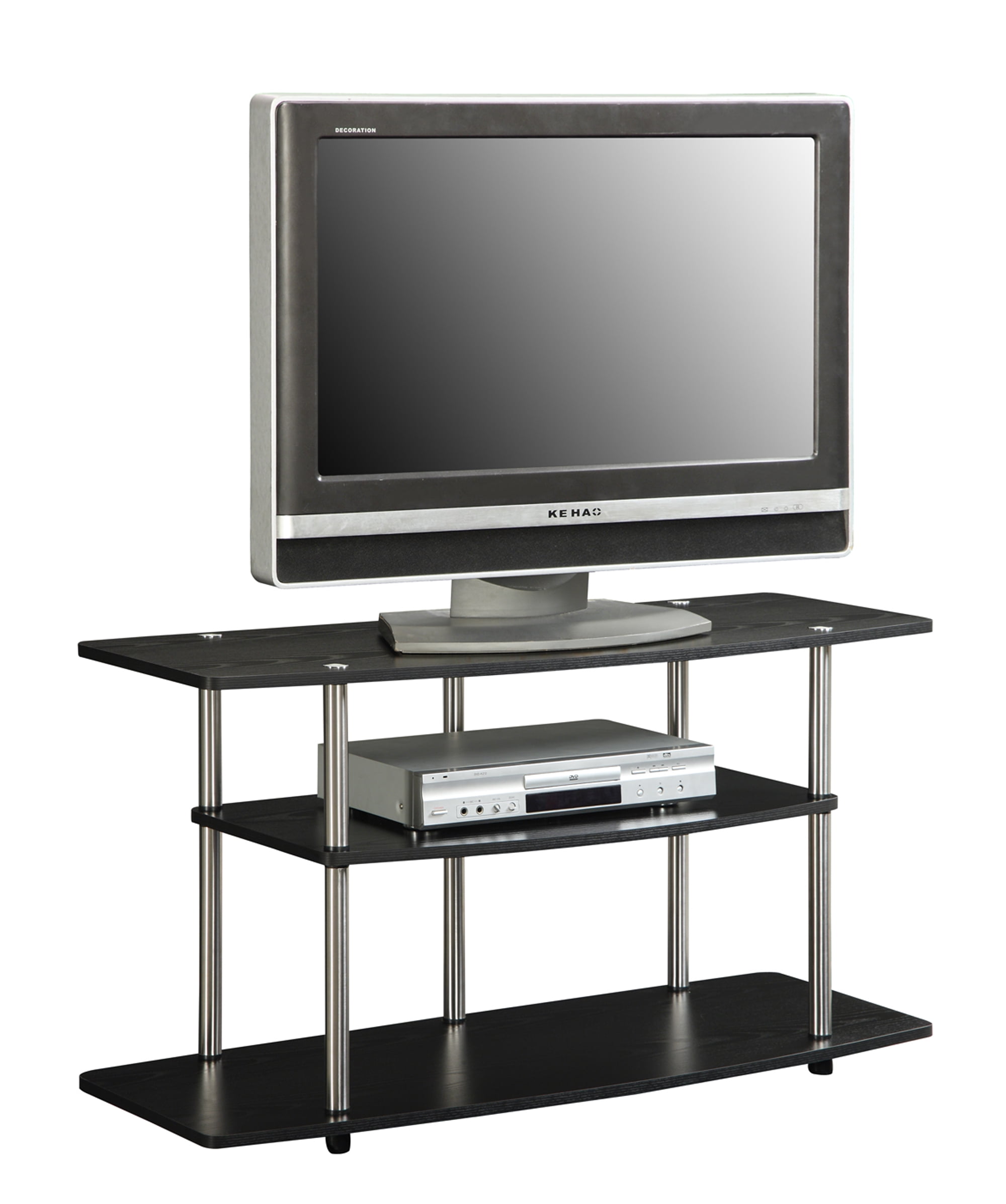 Part of the Designs2Go Collection by Convenience Concepts Contemporary and Modern Styles Easy assembly with instructions provided and no tools needed Shelves are made of sturdy manufactured wood For TVs up to 46 inches wide Sturdy rust-resistant stainless-steel legs Rubber soles cover the bottom of poles to help protect floors Shelves are finished in a detailed woodgrain or smooth patterned finish Low maintenance, easy to clean, and built for durability To maintain and protect your furniture, regularly wipe down all surfaces with a soft clean dry cloth Assembled product weight: 29 lbs. Maximum TV screen size: 46 in. wide Maximum TV weight: 60 lbs. Assembled product dimensions: (W) 42 in. x (D) 15.75 in. x (H) 22.25 in. Color may vary slightly due to photography lighting or monitors display