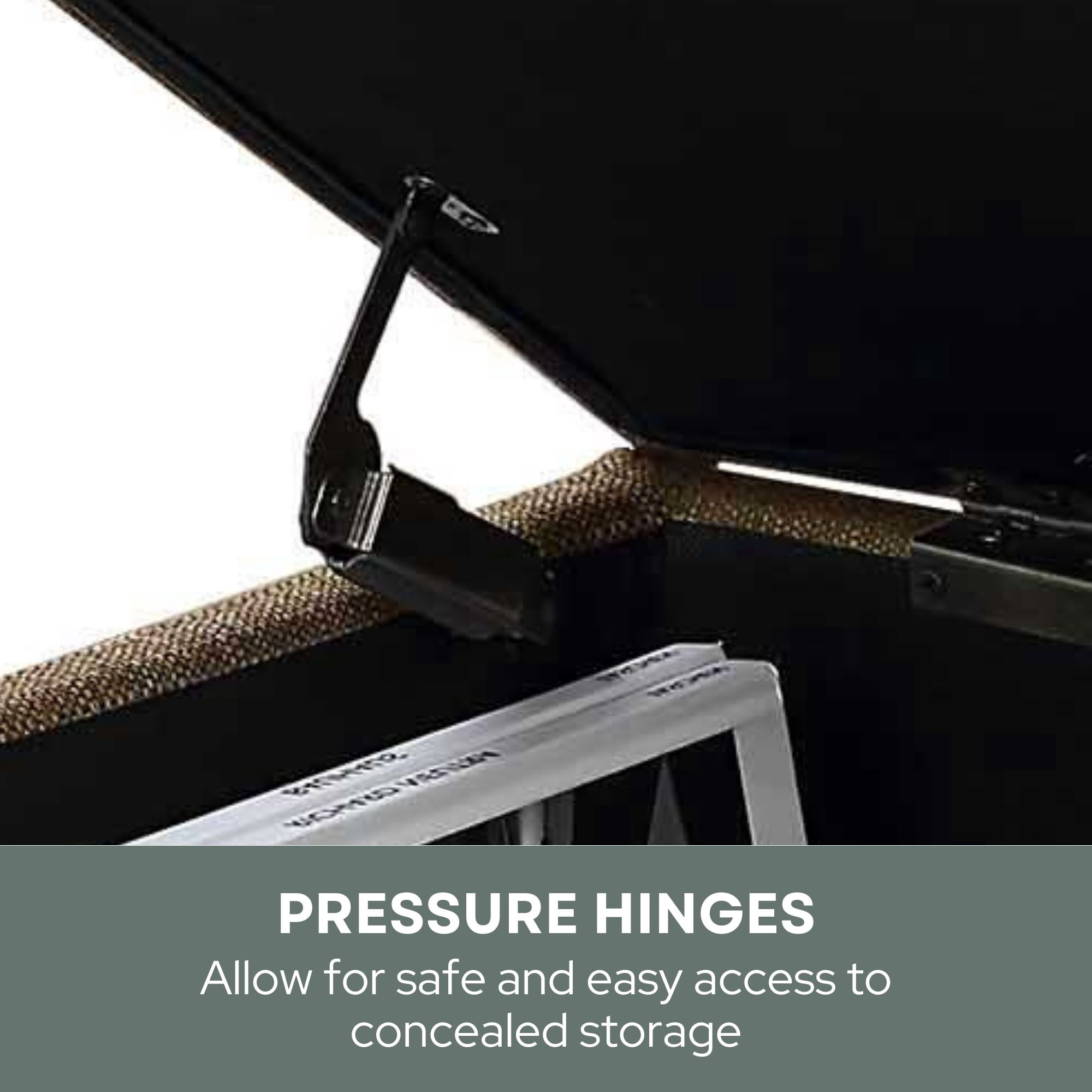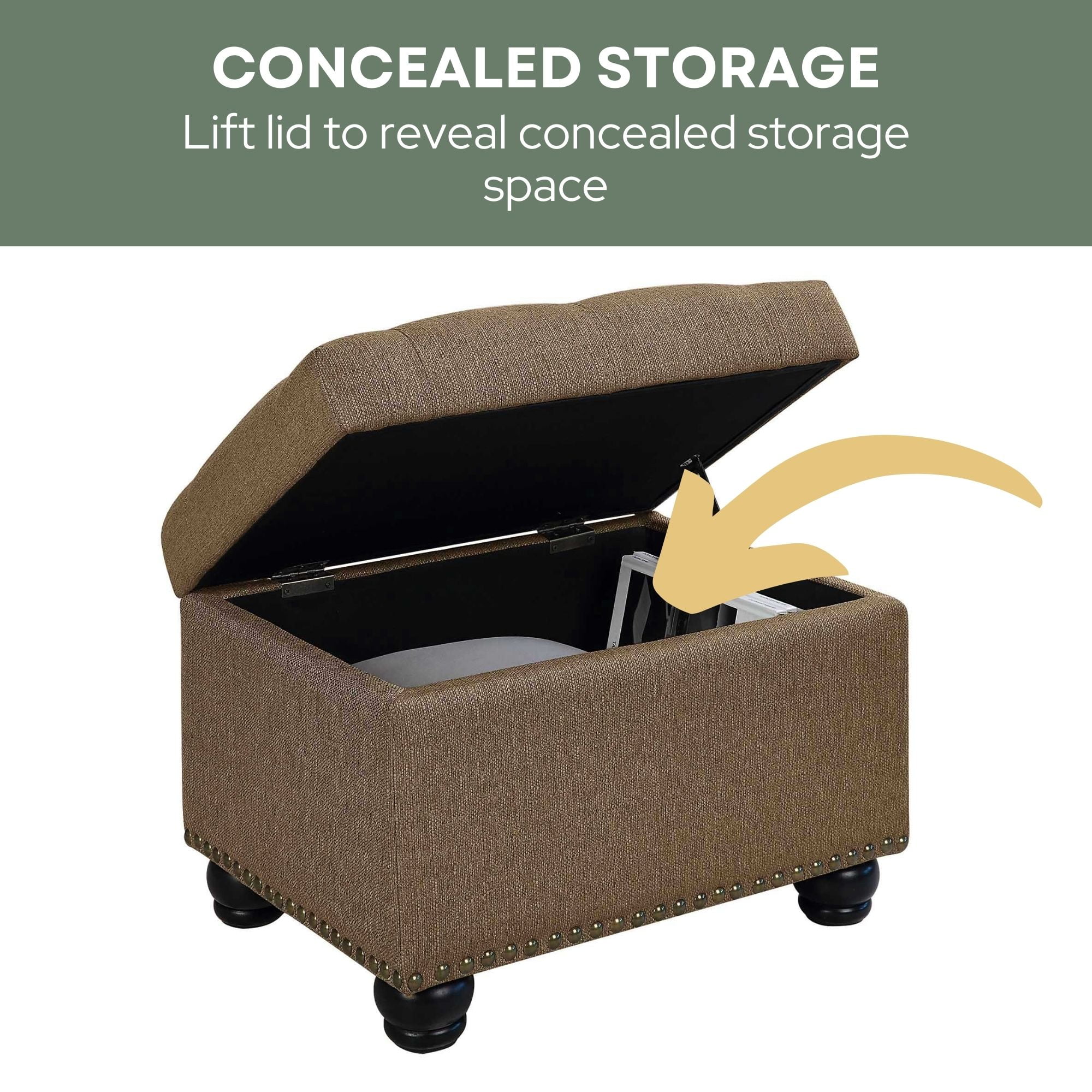 The Designs4Comfort 5th Avenue Storage Ottoman by Convenience Concepts brings style and functionality to any room. This multi-functioning ottoman doubles as extra seating; a footrest; and as a stylish storage unit. A gorgeous button-tufted top; fine stitching; and a beautiful antique nail head trim set this piece apart from the rest. The elegant storage unit offers plenty of space to tuck away blankets; small pillows; and more. A pressure hinge allows for the lid to stay open on its own giving safe and easy access to accessories stored within the ottoman. This contemporary piece is upholstered in a wide variety of luxurious fabrics and filled with padded foam cushions for maximum comfort. The well-built frame is engineered out of durable manufactured wood and supported by carefully crafted solid wood-turned feet. Assembly is simple with this beautiful piece arriving almost fully assembled and only the feet needing to be attached. With a wide variety of luxurious and timeless fabrics to choose from; you are sure to find an ottoman to tie any space together.