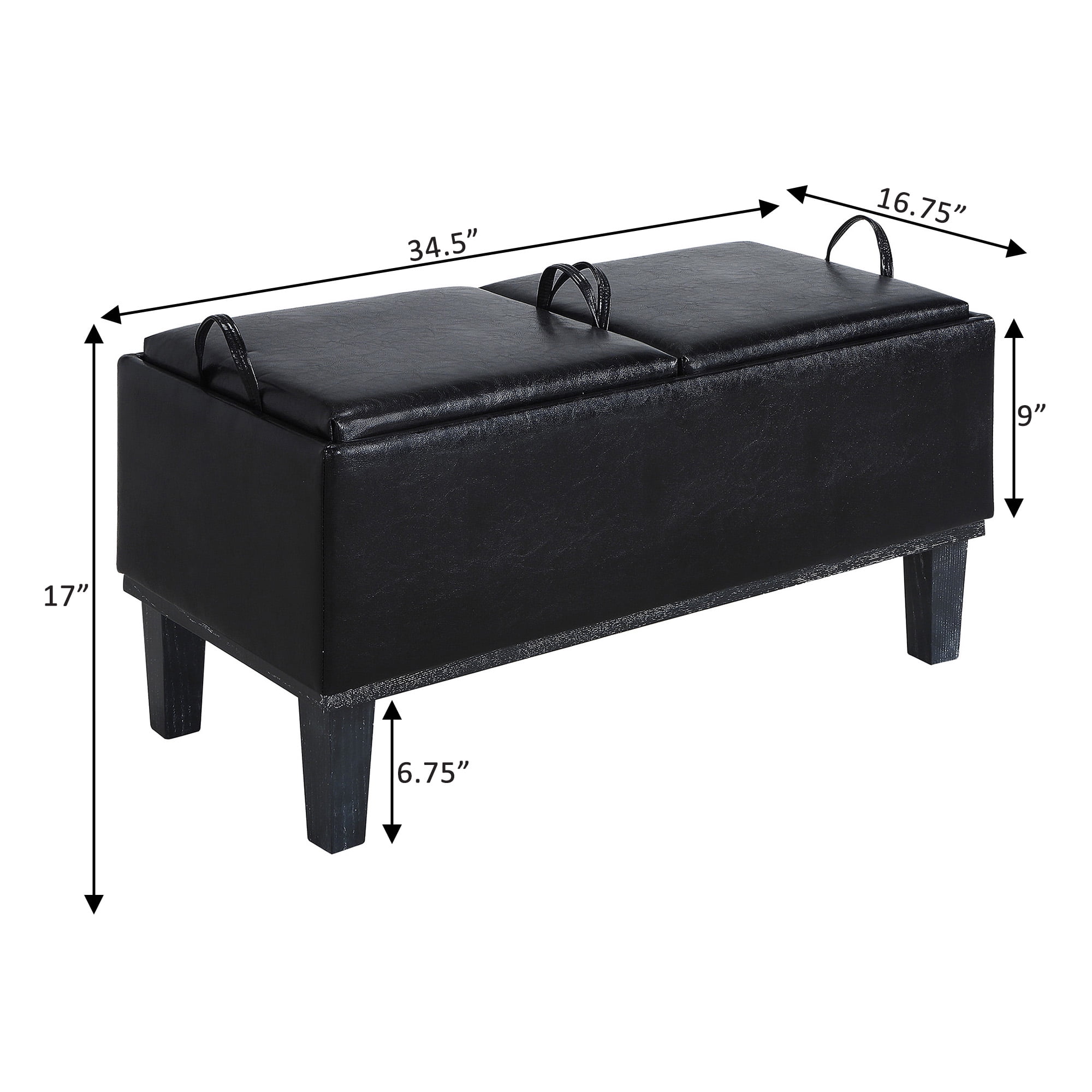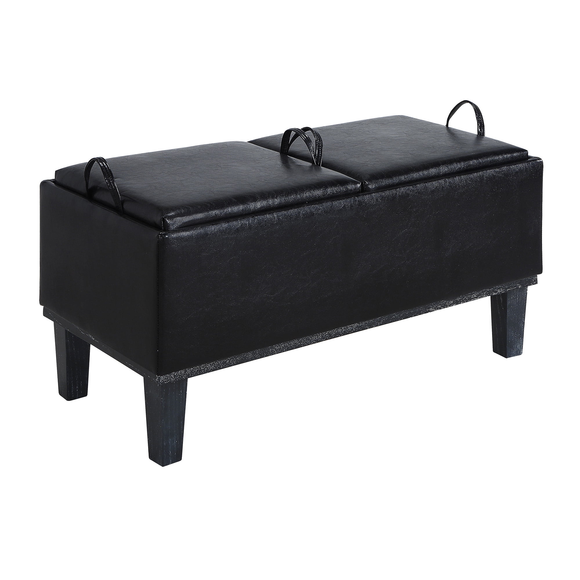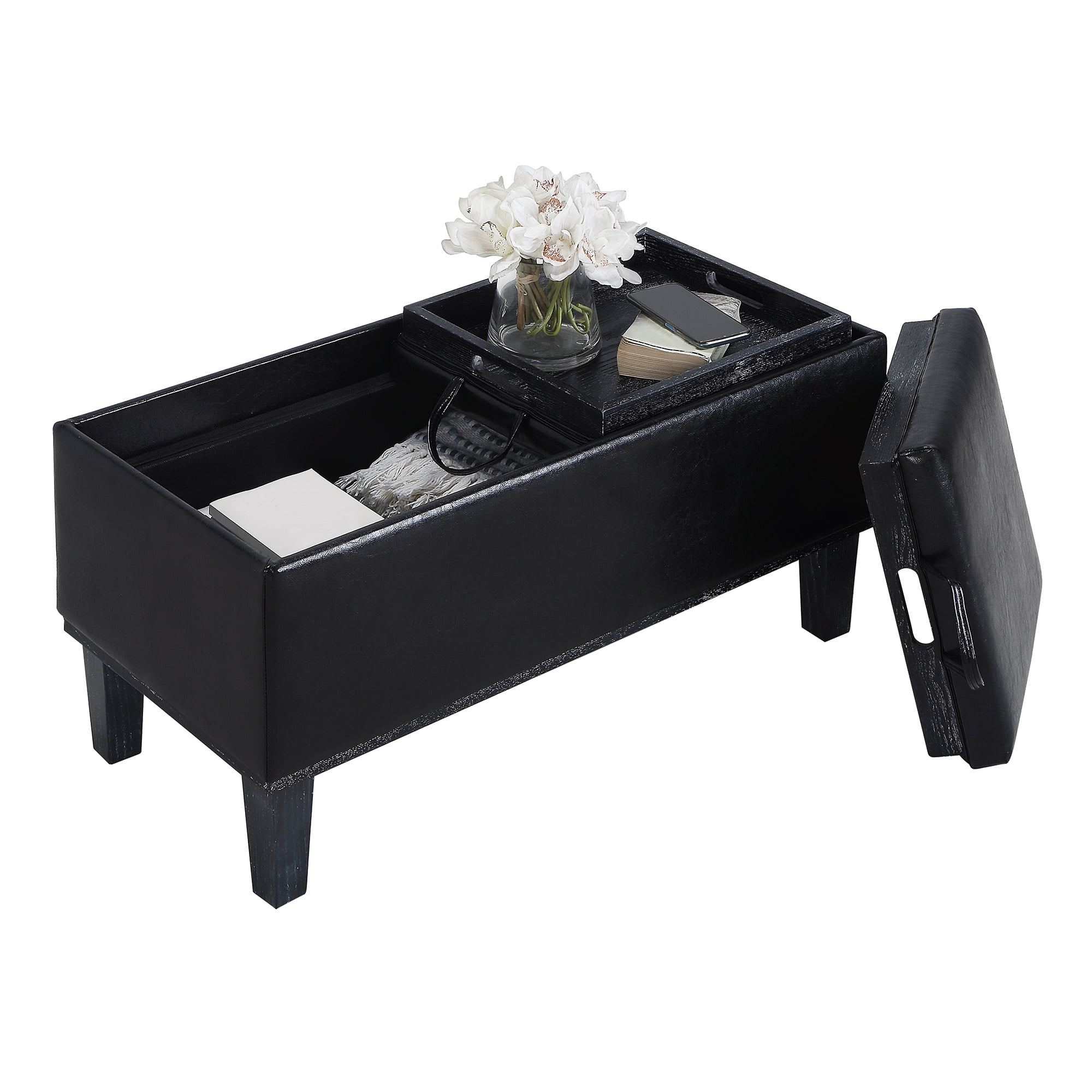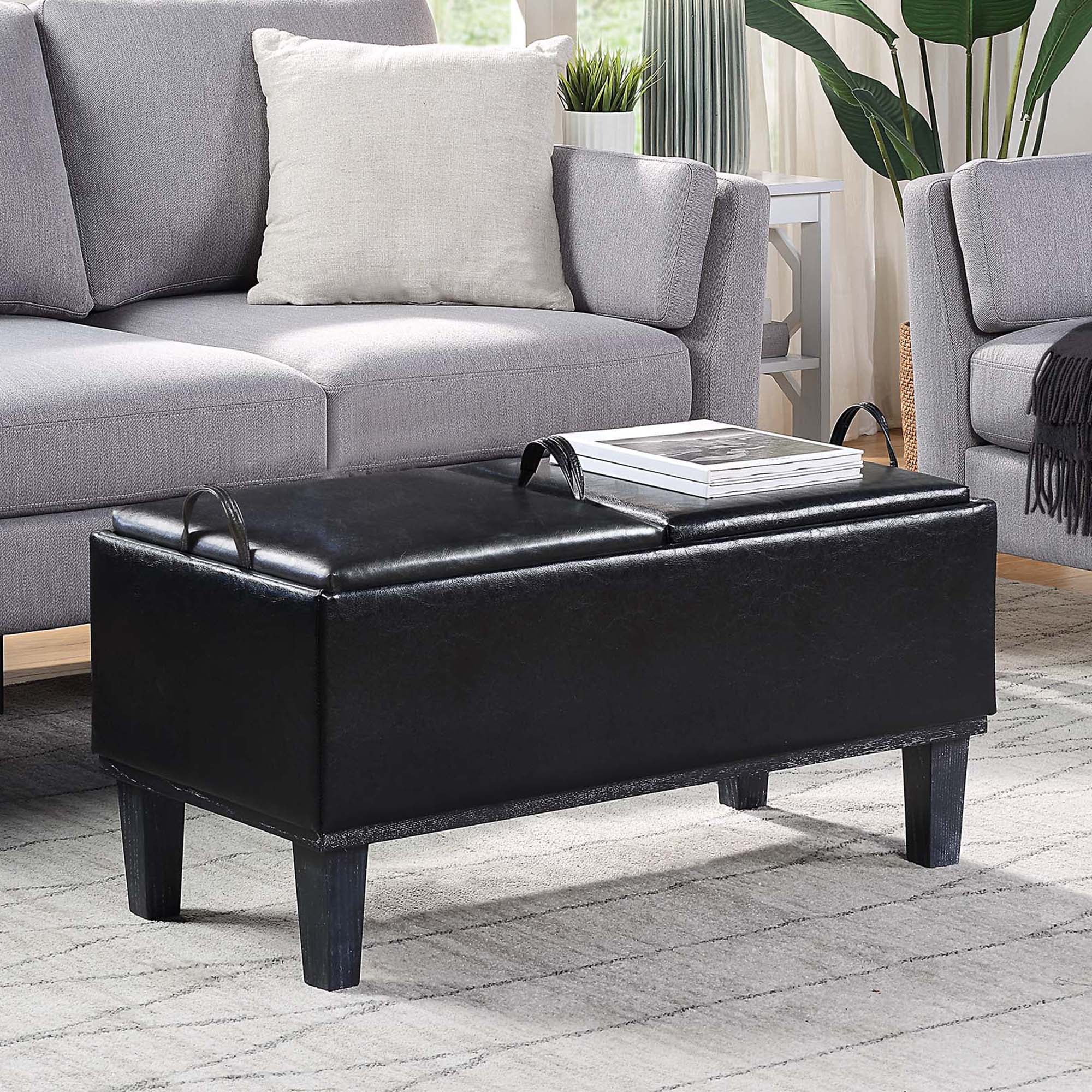 Convenience Concepts Designs4Comfort Brentwood Storage Ottoman with Reversible Trays, Black Faux Leather