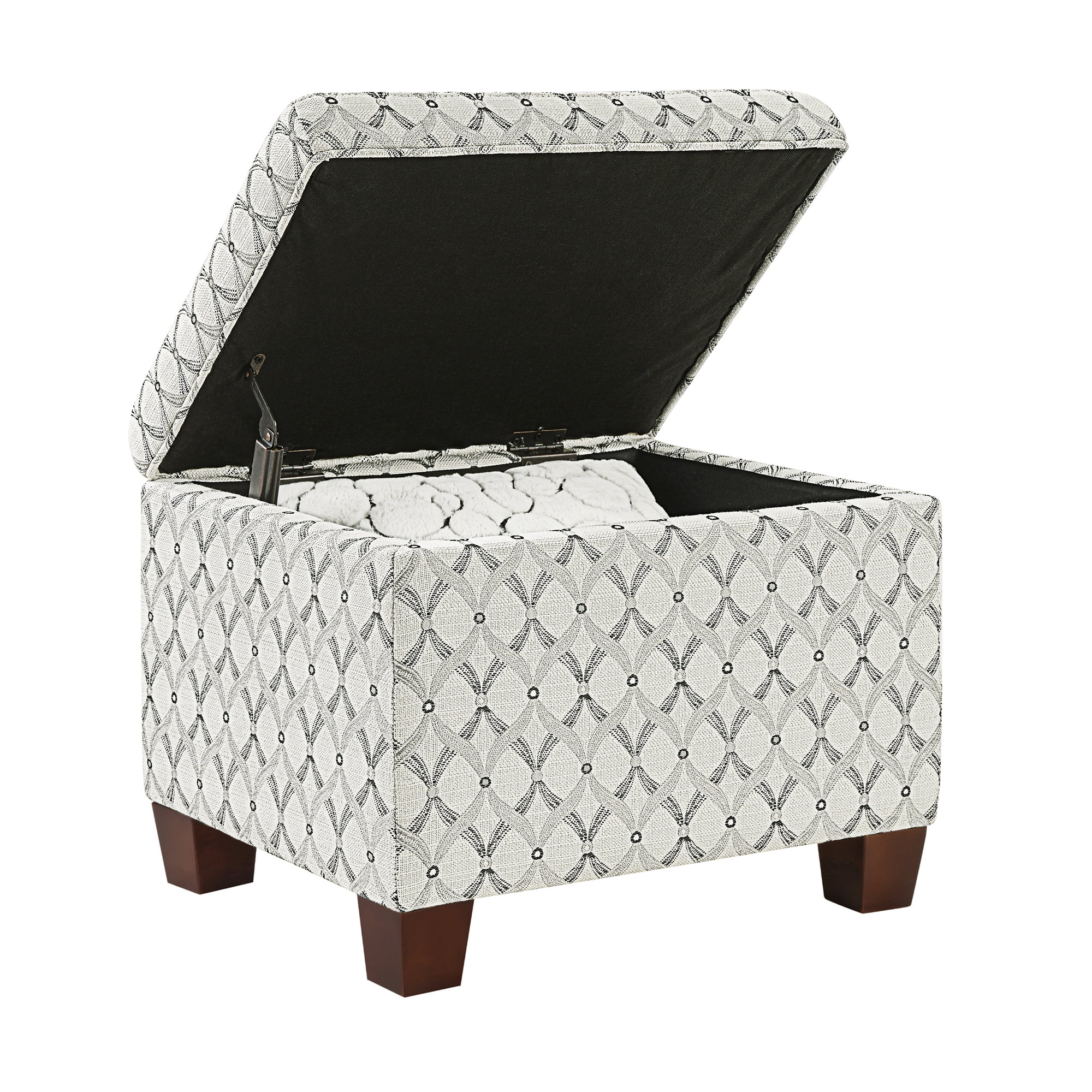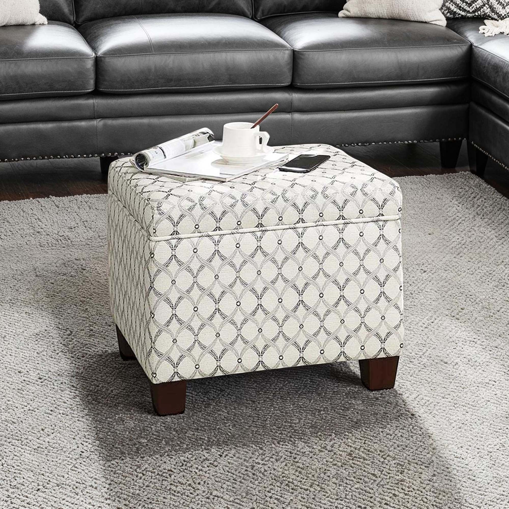 Part of the Designs4Comfort Collection from Convenience Conc Enjoy right away with its 3-step assembly Made of solid wood/faux leather/KD wood/fire-retardant foam Beautiful patterned gray faux leather fabric Will complement any decor and tidy up any room with its hidden storage 21.75″ L x 17.75″ W x 18.5″ H