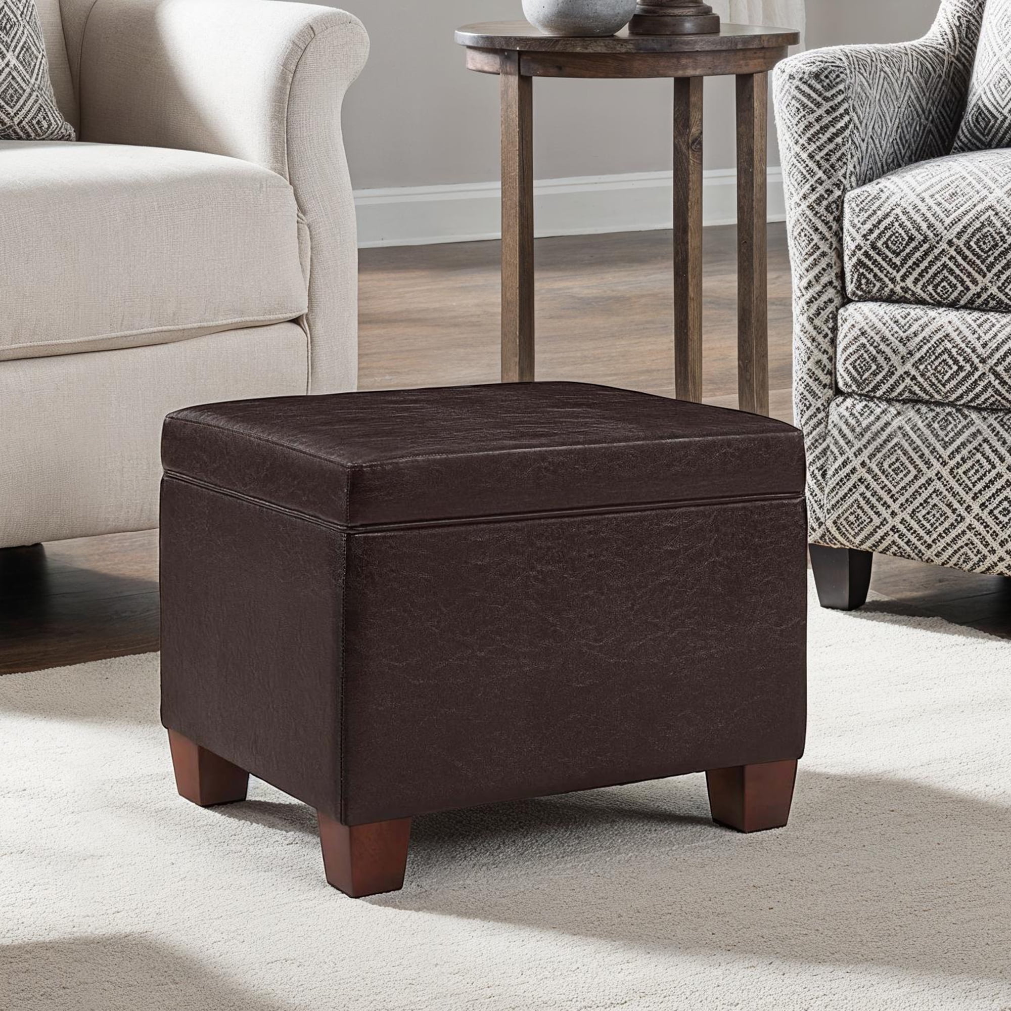 The Designs4Comfort Madison Storage Ottoman from Convenience Concepts is the perfect combination of style and functionality. Boasting a simple sleek transitional style, this ottoman will refresh any home décor. With its faux leather finish and contemporary tapered block feet this ottoman offers plenty of versality and will be the perfect addition to your home. Kick up your feet and relax with the Madison Storage Ottoman, as its frame is crafted from solid wood and will provide the appropriate support needed. The dense fire-retardant foam will provide plenty of cushion to rest easy while putting your mind at ease. The hinged lid allows for easy access to the concealed storage space. Keep a blanket or books hidden from sight with this storage ottoman. Add this single ottoman to your living room today and enjoy in no time with its 3-step assembly. Available in multiple finishes, this faux leather ottoman will fit any design palette. Find a multitude of ottomans from Convenience Concepts, each sold separately.