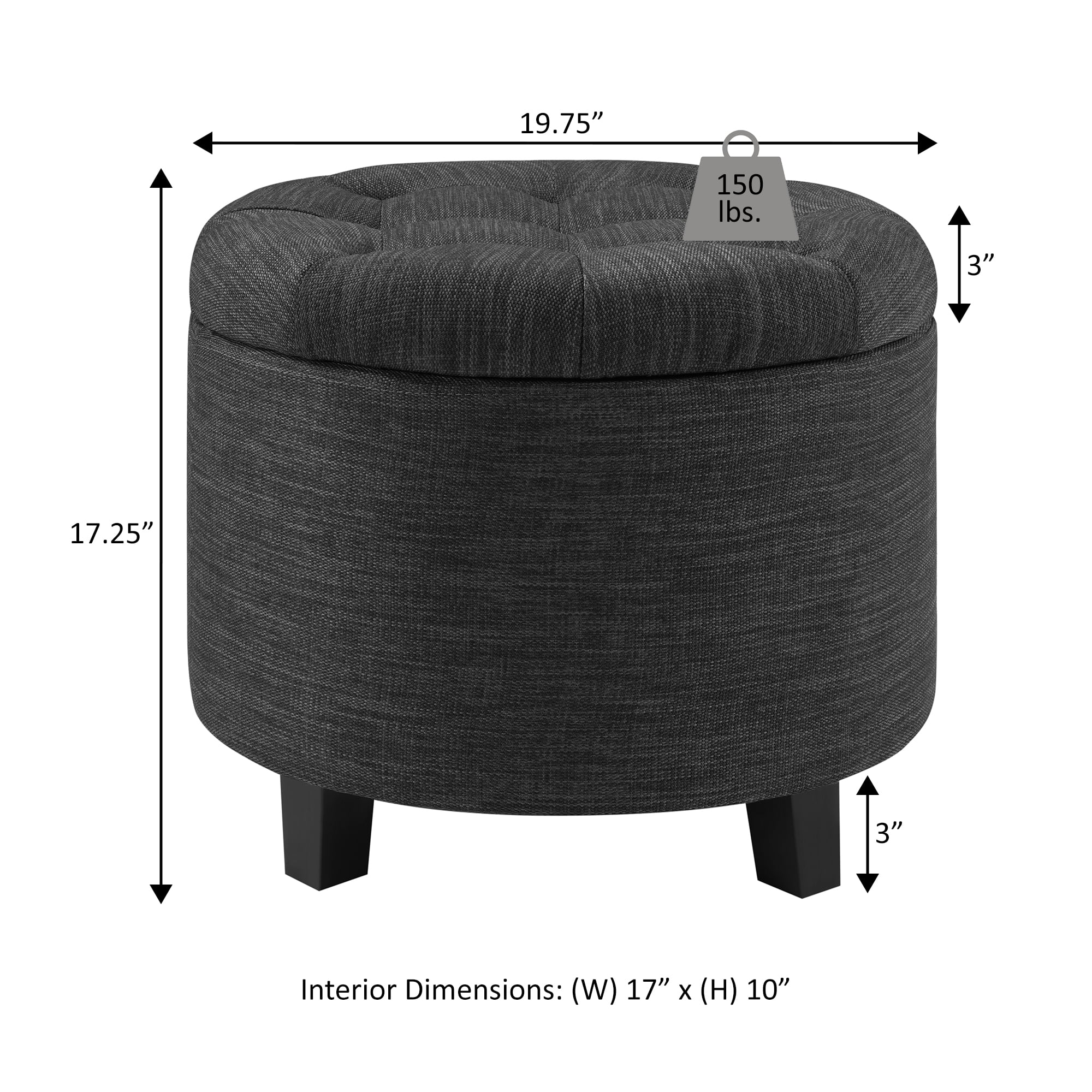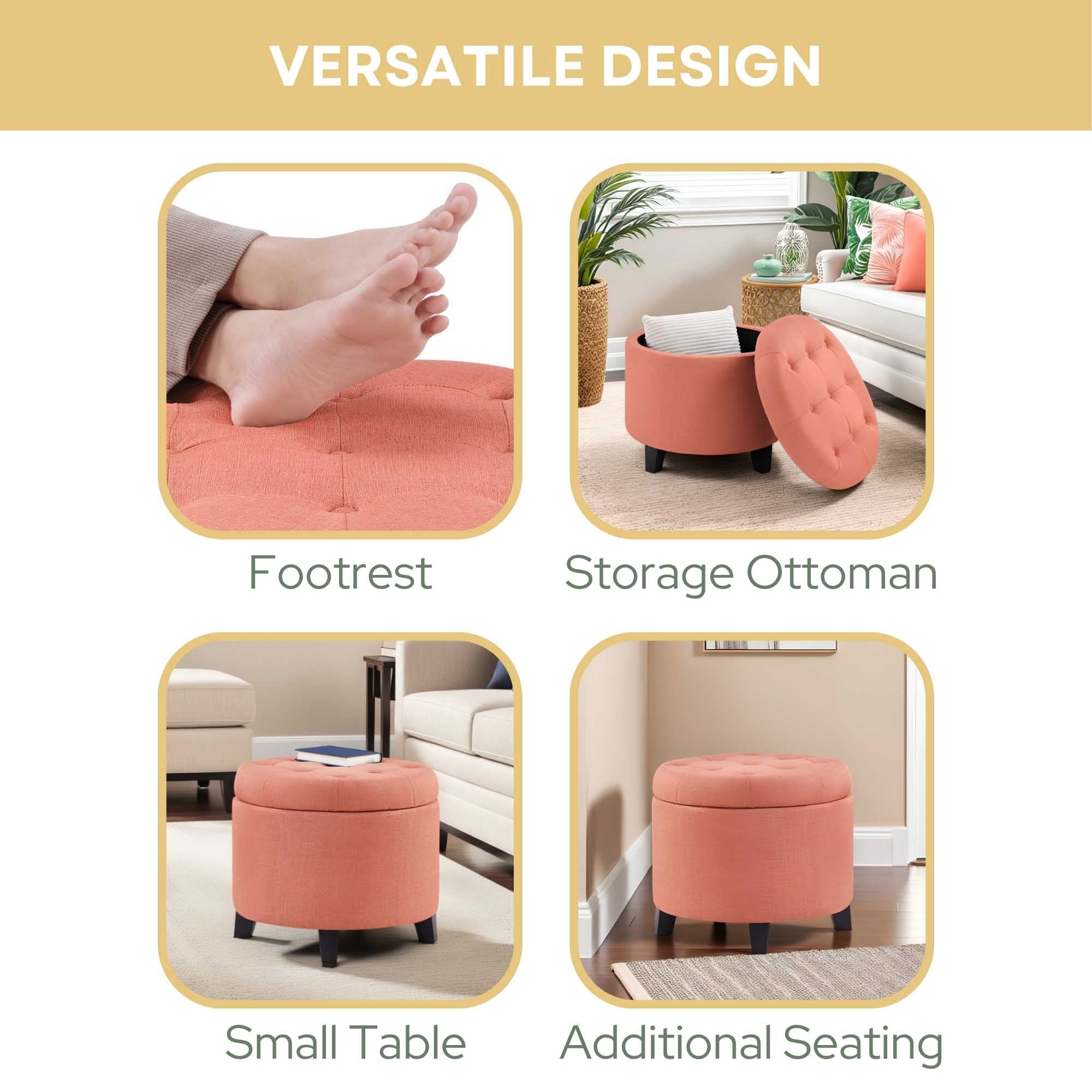 Make a bold statement with the Designs4Comfort Round Ottoman by Convenience Concepts. Featuring a removable lid that provides easy access to concealed storage inside the ottoman. Upholstered in multiple finishes, and a stylish tufted top makes a very comfortable conversation piece!