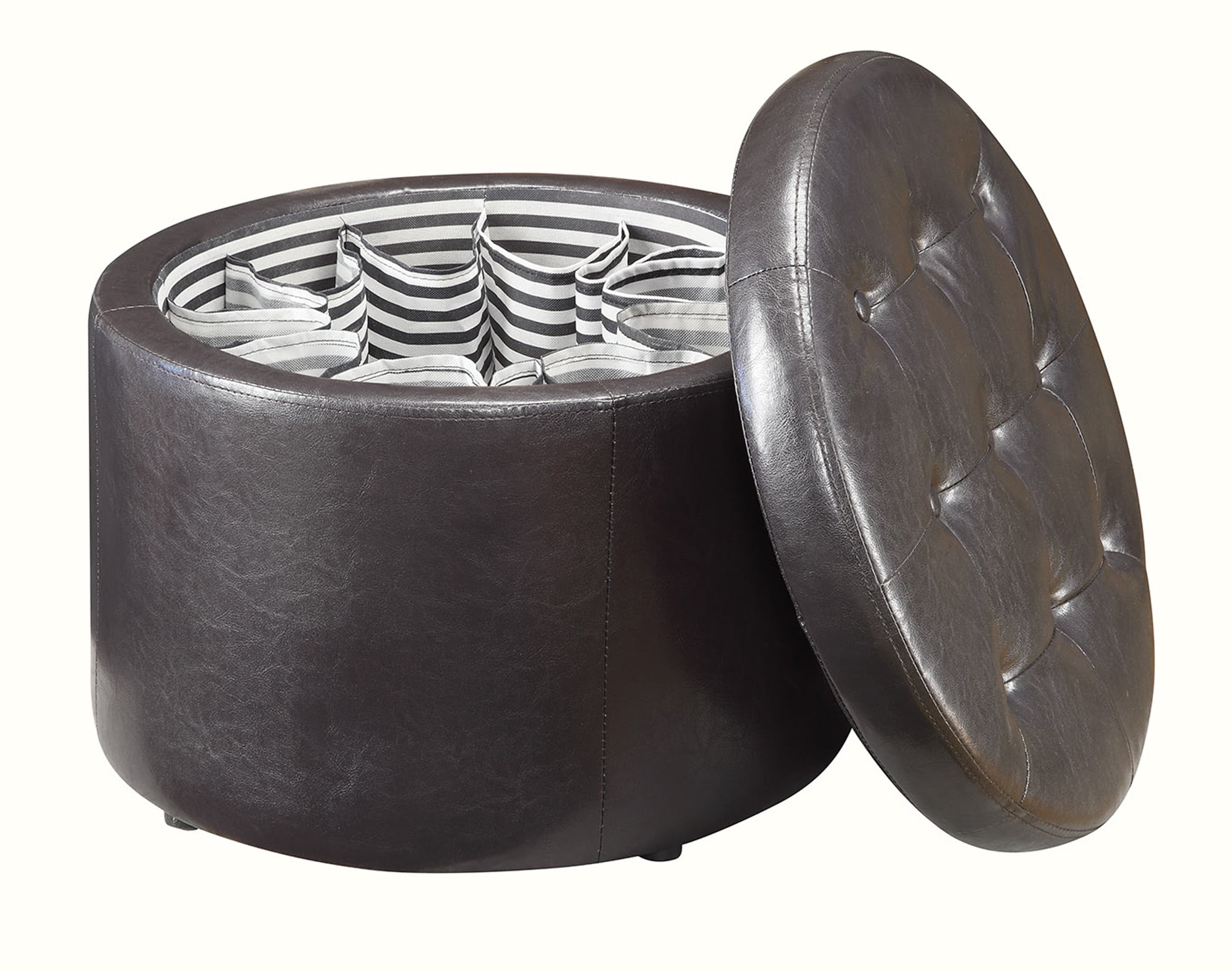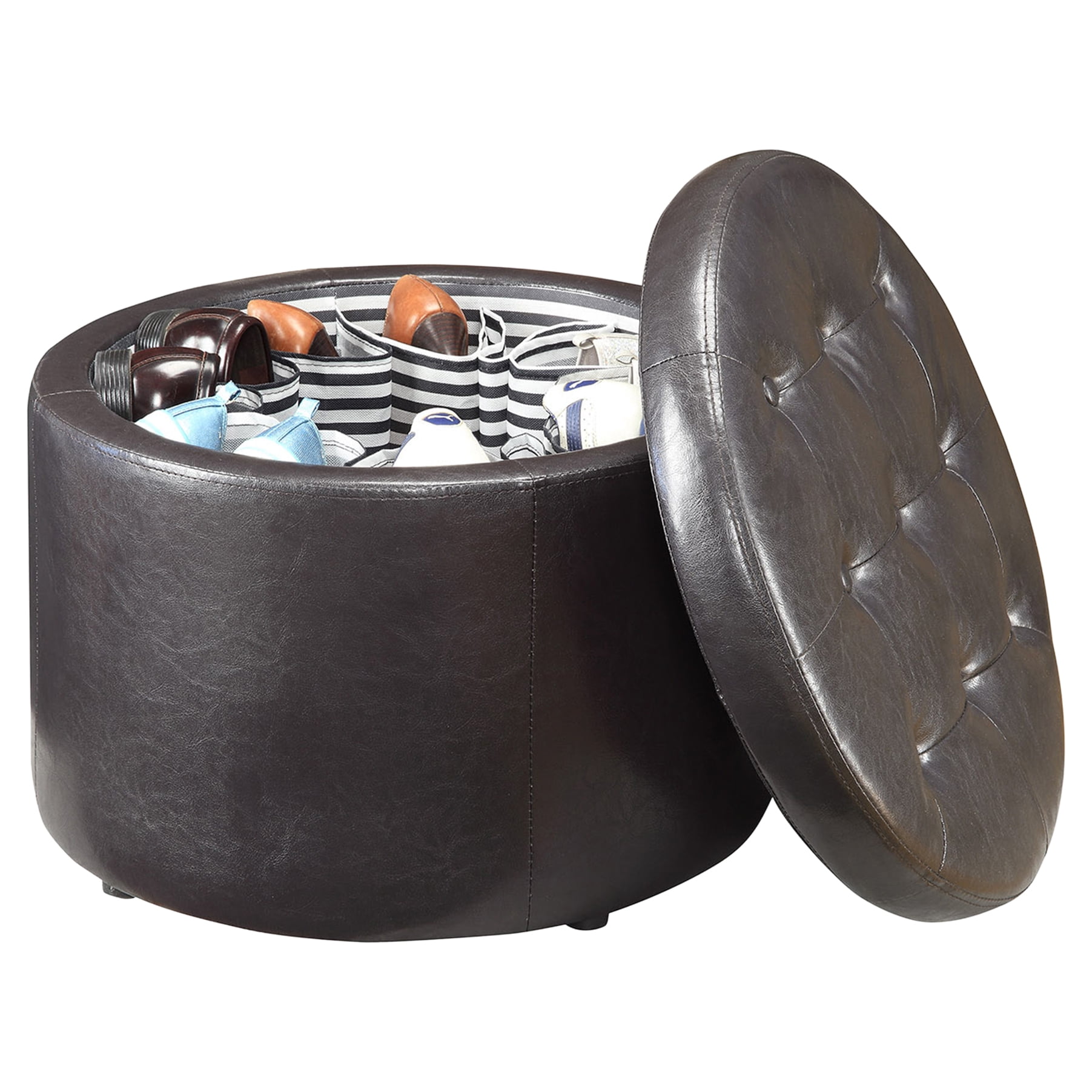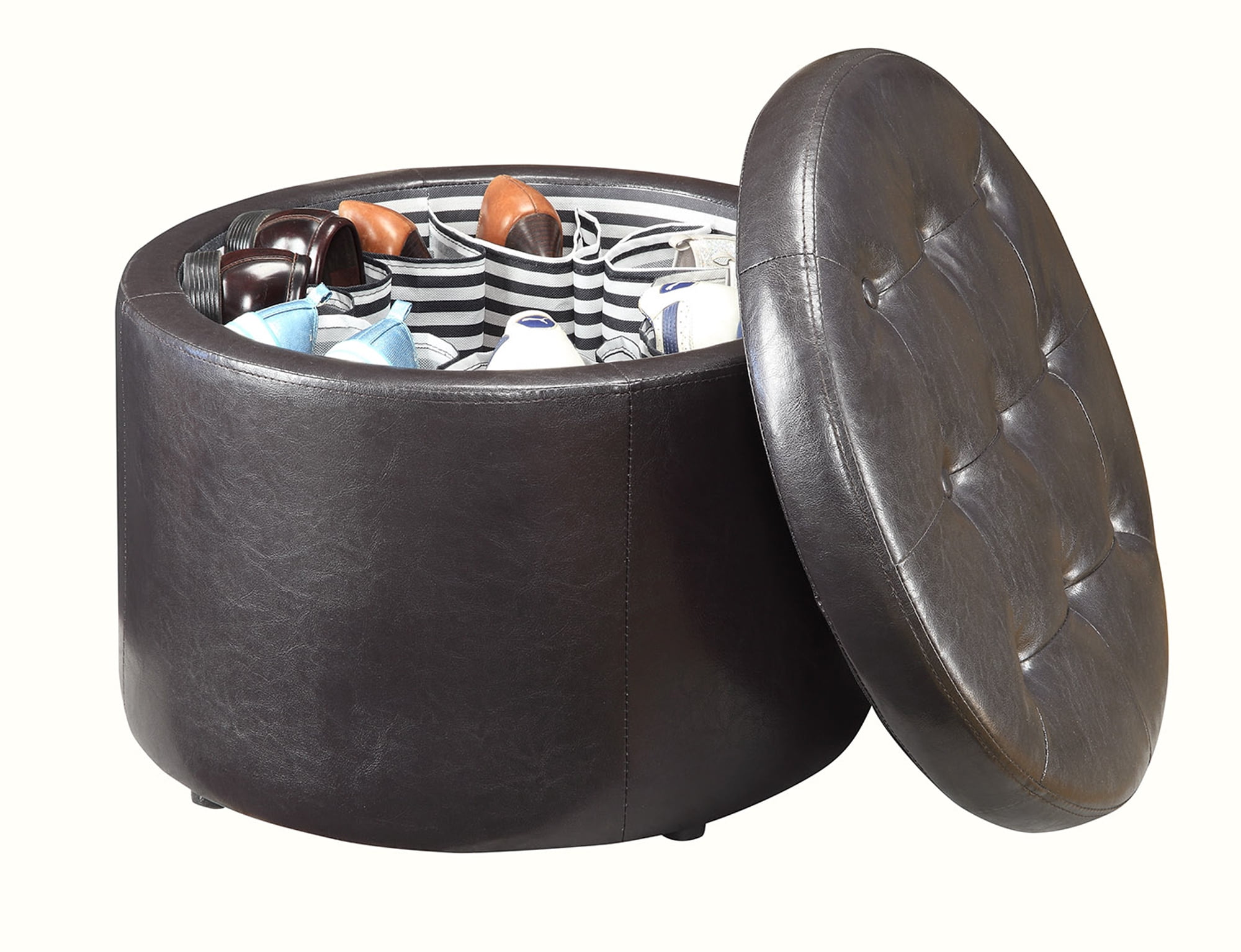 Convenience Concepts Designs4Comfort Round Shoe Storage Ottoman, Espresso Faux Leather