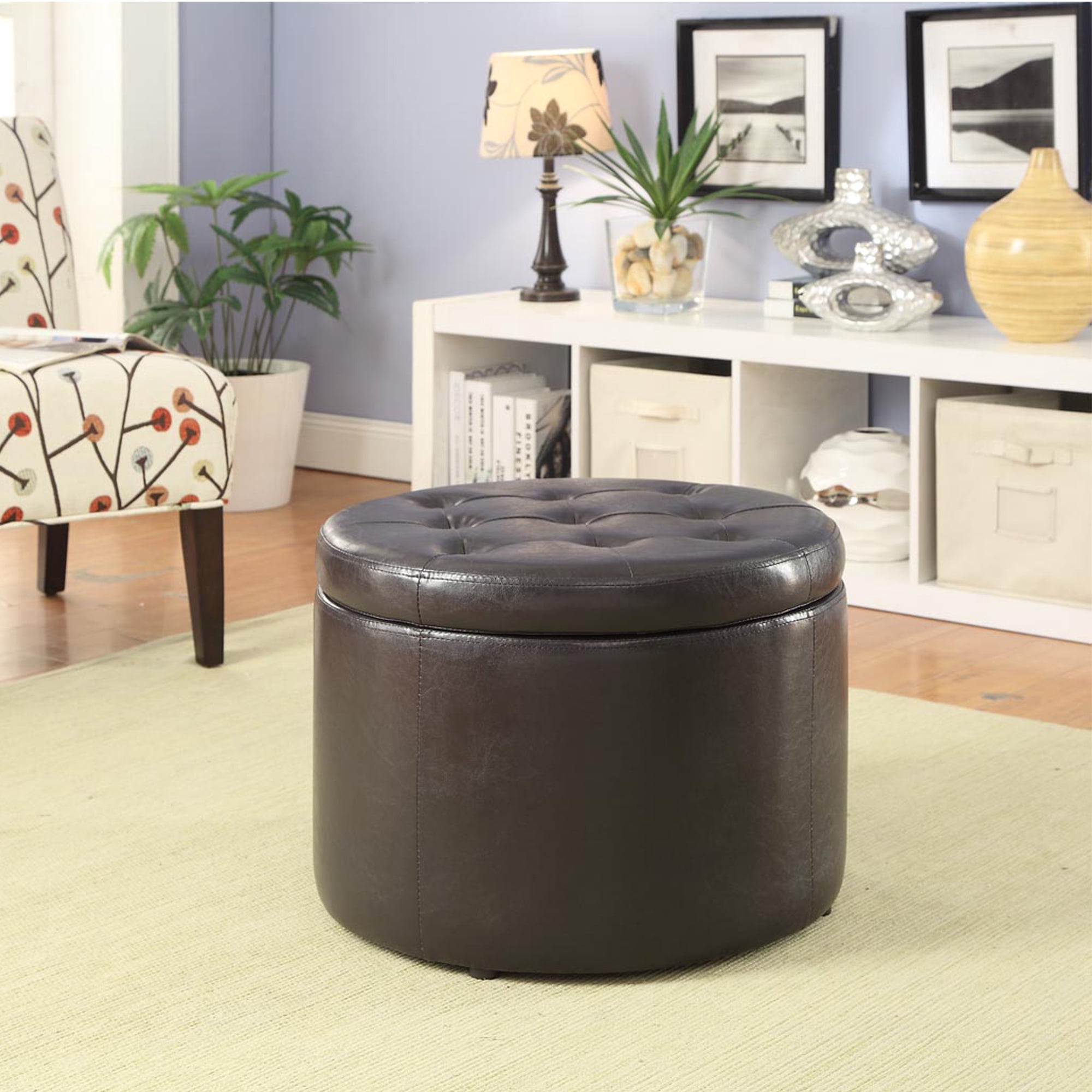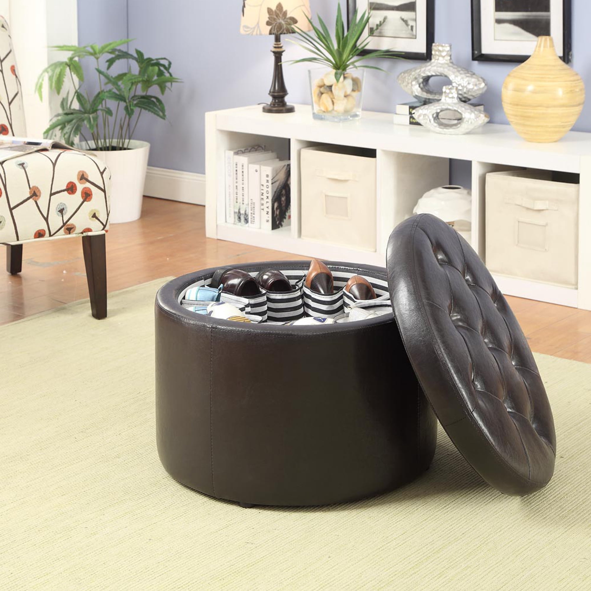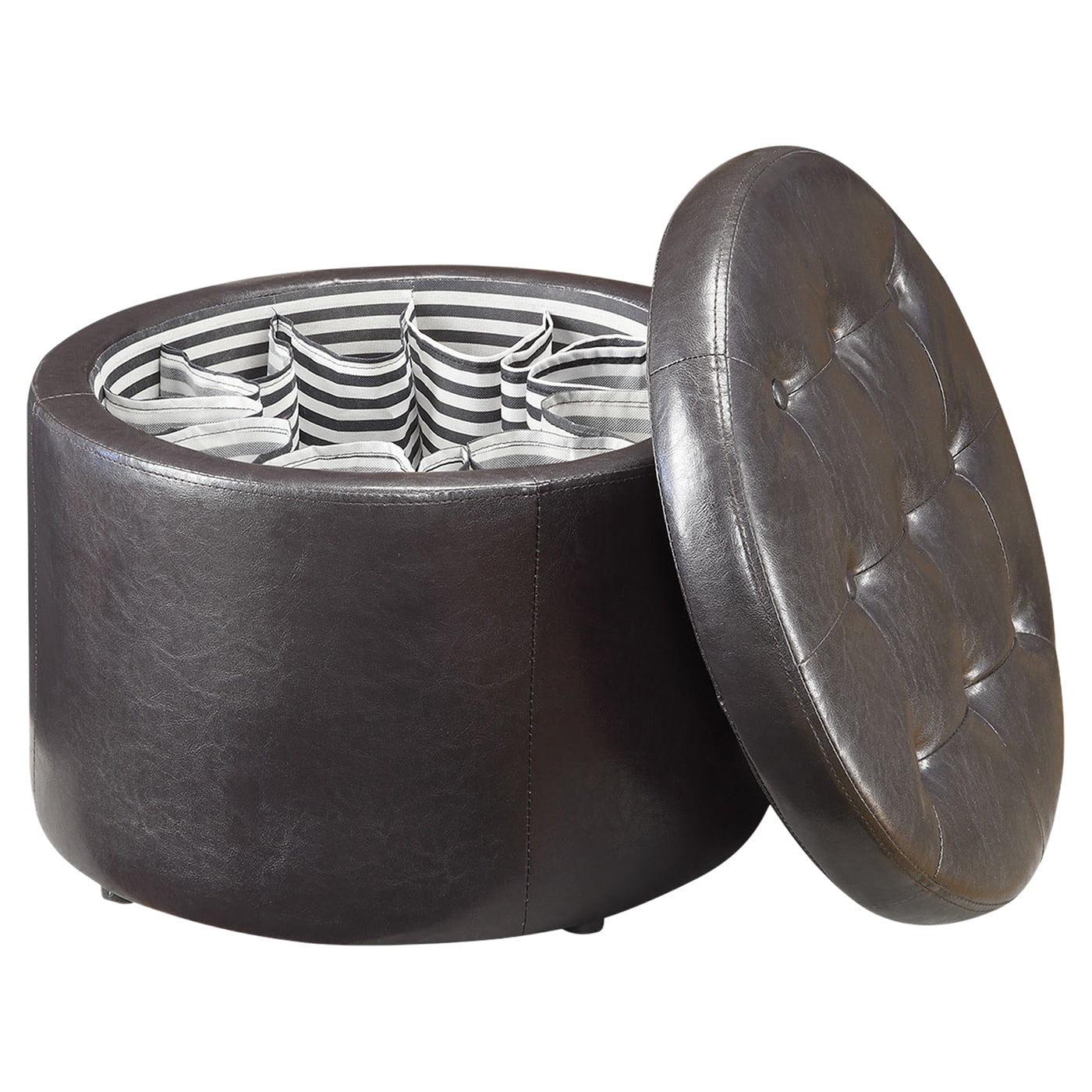 Convenience Concepts Designs4Comfort Round Shoe Storage Ottoman, Espresso Faux Leather