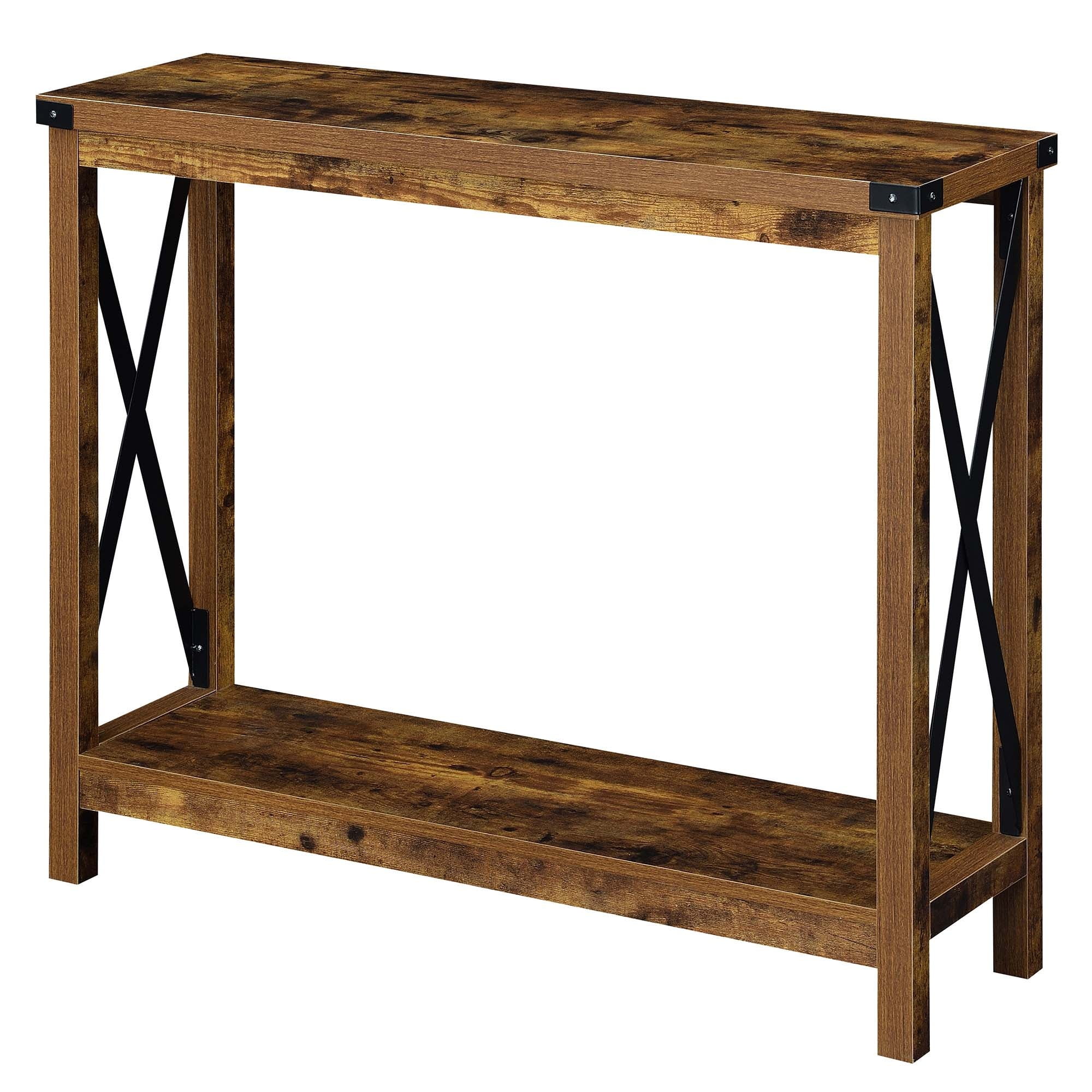 Features: Part of the Durango Collection by Convenience Concepts Industrial and farmhouse style Brings style and functionality to your home Has much versatility and can be used in the living room, dining room, office and more 2 spacious tiers of shelving Ample space to showcase your favorite books, décor and collectibles Crafted from particleboard and powder-coated metal Low maintenance, easy to clean, and built for durability Easy assembly with instructions provided Overall product dimensions: (L) 39.25 in. x (W) 11.75 in. x (H) 31.75 in.