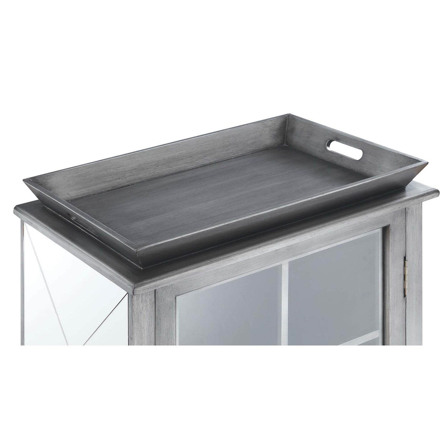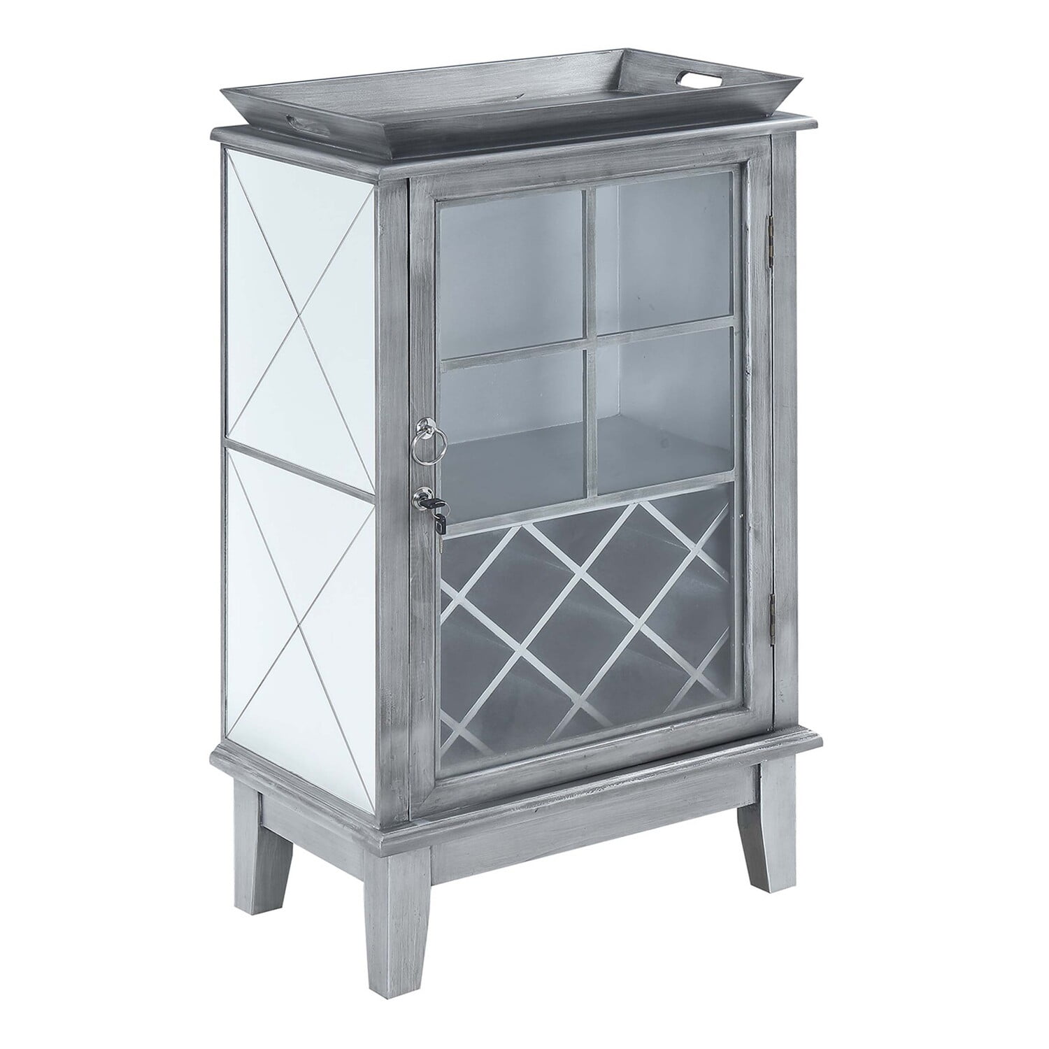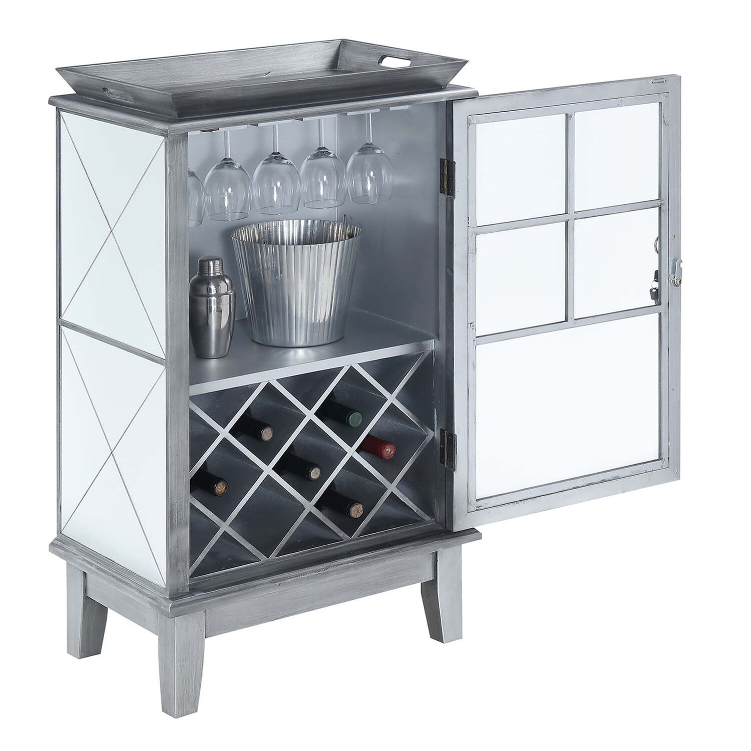 With a lock and key, the Gold Coast Serving Bar from Convenience Concepts is perfect for storing your fine wines and spirits safely. With its contemporary style, you can be sure it will complement your current or prospective décor. Place in your living room or dining room and let it become the conversation starter piece it is meant to be. The bar cabinet top has plenty of space to display your favorite bar tools and cocktail shaker and the raised lip will ensure that items will never fall off, so you can assemble your cocktails worry free. This glamourous serving bar has storage for up to seven bottles and provides a stemware rack for your favorite wine glasses. Its paneled glass door adds to its luxurious look while making it easy to choose your next wine selection. With a shelf built inside, you can keep an ice bucket readily available for you and your guests. The frame is crafted from MDF, with mirrored sides, this bar cart was made for longevity and easy maintenance. Celebrate the arrival of your Gold Coast Serving Bar immediately after delivery as there is no assembly required! Look for more items from the Gold Coast Collection from Convenience Concepts, each sold separately. Overall Item Dimensions: 22.75″L x 15″W x 38″H