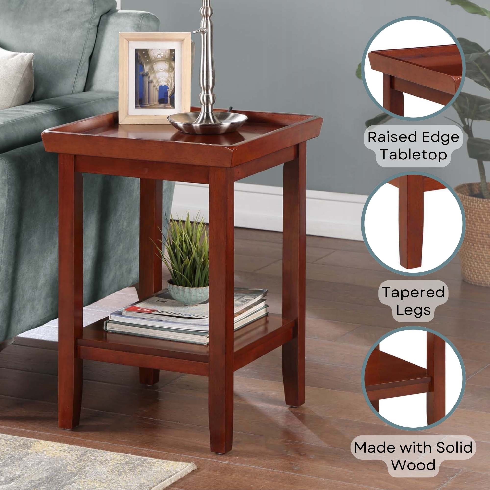 Features: Part of the Ledgewood Collection by Convenience Concepts Traditional and contemporary style Available in multiple finishes 2 tiers of spacious shelving Spacious surface space perfect for display or storage Raised edges will keep belongings safe and secure Built from solid rubberwood, rubberwood veneer, and MDF Low maintenance, easy to clean, and built for durability Easy assembly with instructions provided Overall product dimensions: (L) 18 in. x (W) 18 in. x (H) 26 in.