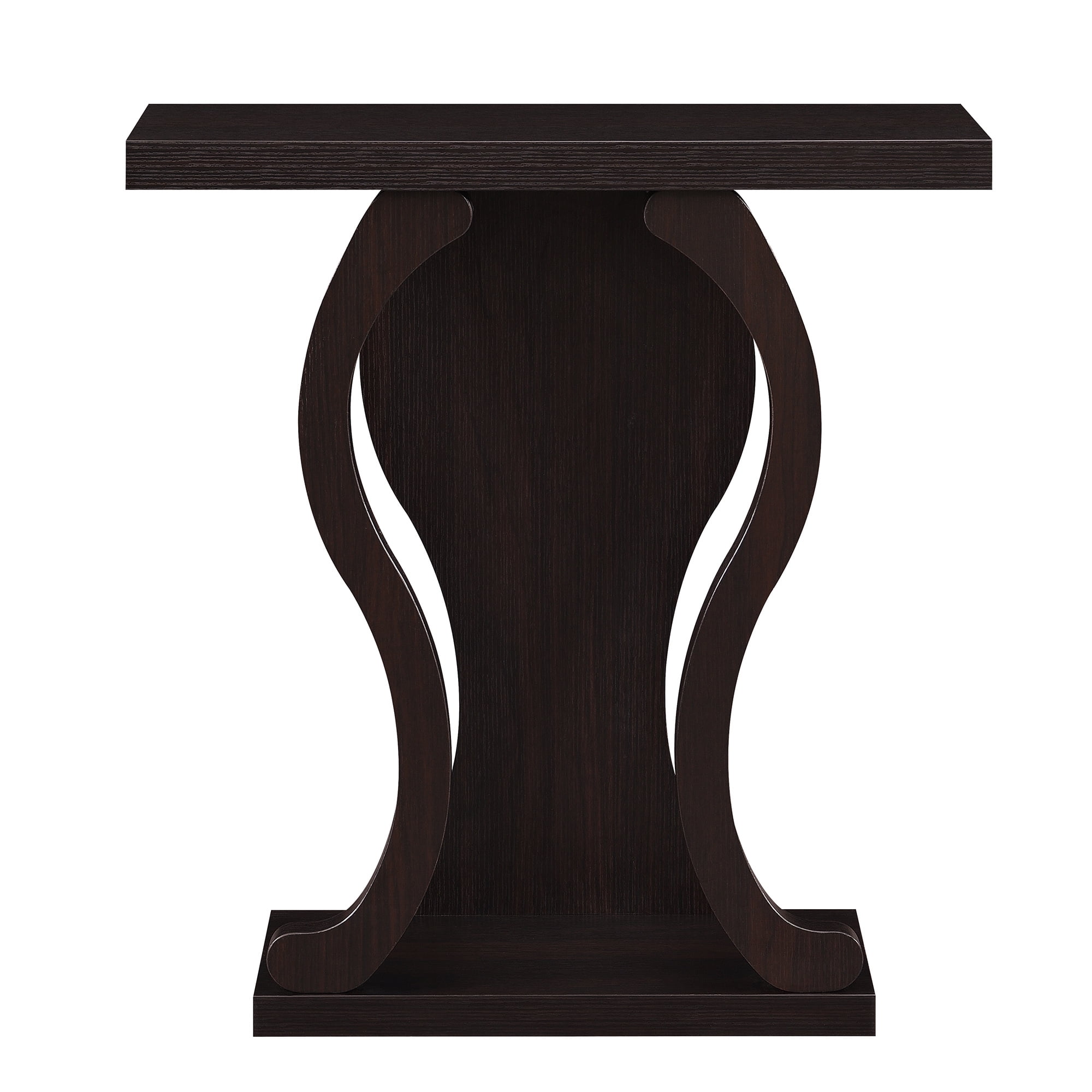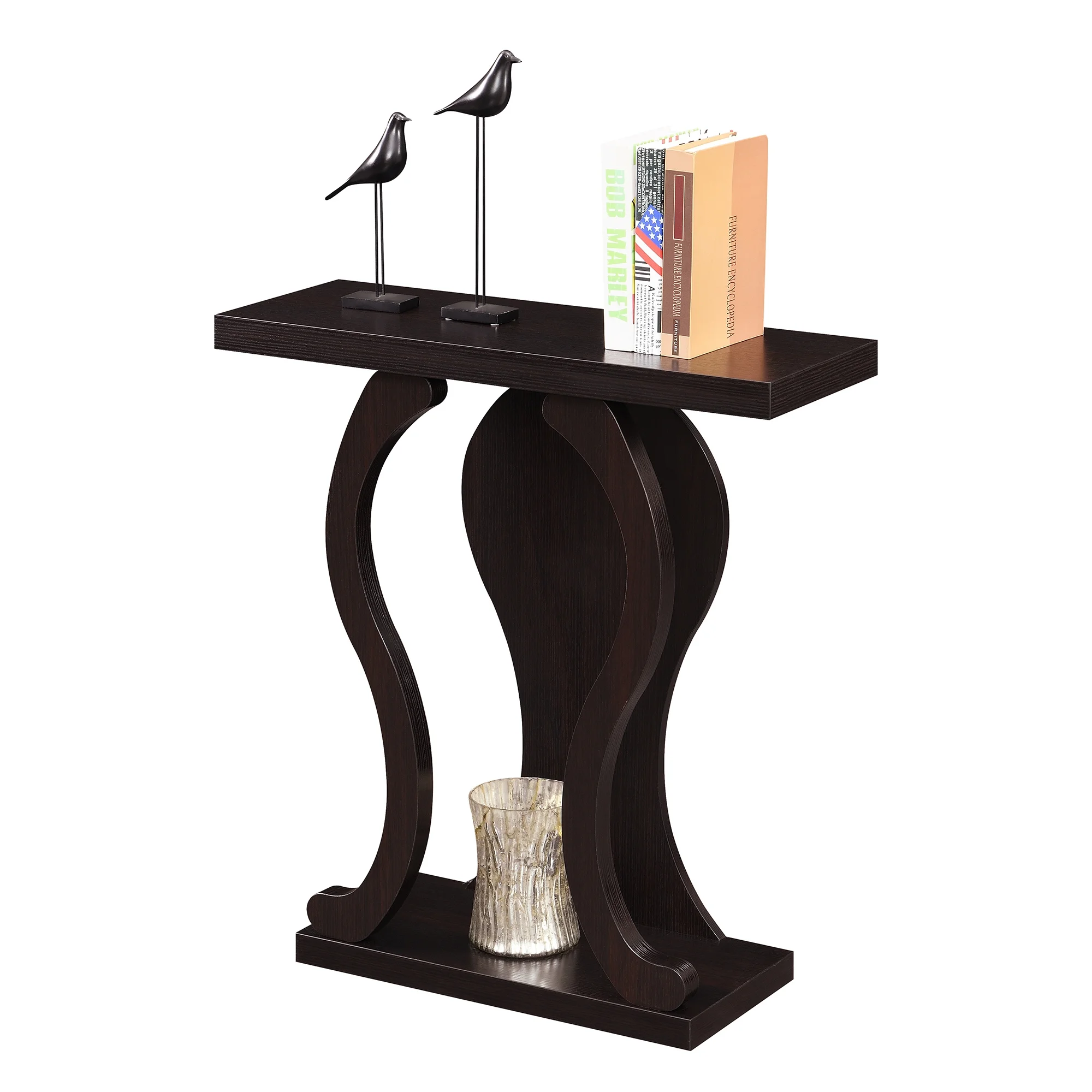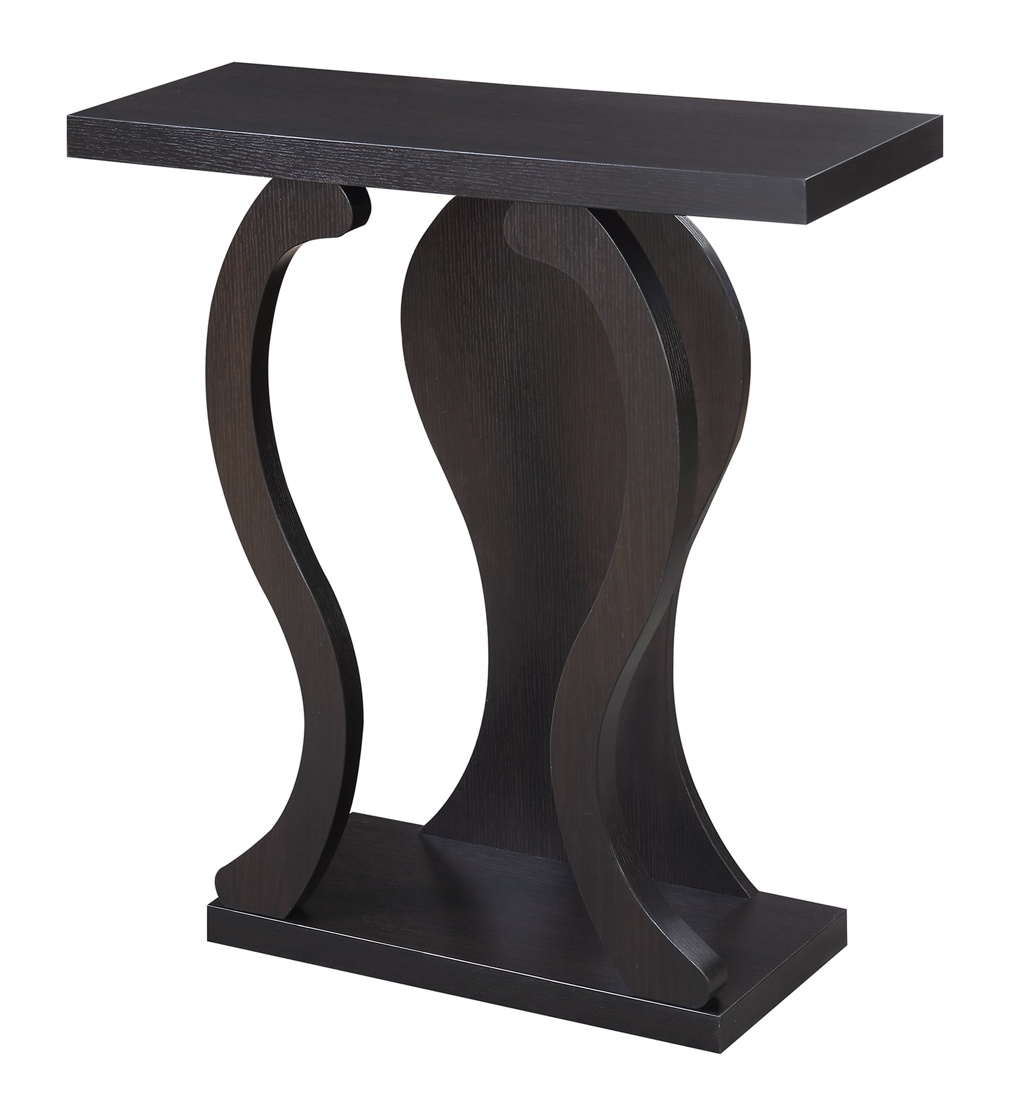 Newport Terry B Console Table, Espresso Add style to your favorite room with the Newport Terry B Console Table by Convenience Concepts. This sleek design was made to add sophistication to the entryway, living room, hallway, or dining room. Display decor or collectibles on the tabletop while the bottom shelf holds a vase or plant. The wavy silhouette gives this piece a gracious look while showcasing a lovely woodgrain finish. Crafted from MDF, hollow core and melamine, this table is engineered for durability and easy maintenance. Shop coordinating pieces from the Newport Collection by Convenience Concepts, each sold separately. Specifications: This sleek design was made to add sophistication to the entryway, living room, hallway, or dining room Part of the Newport Collection by Convenience Concepts Available in Multiple Finishes Bottom Shelf for Additional Display Crafted of MDF, Hollow Core, and Melamine