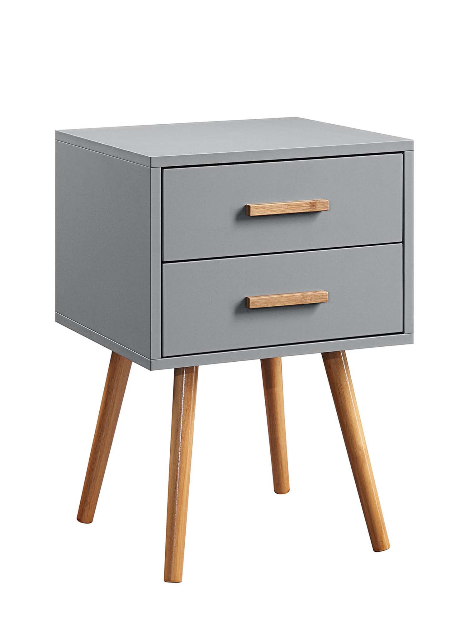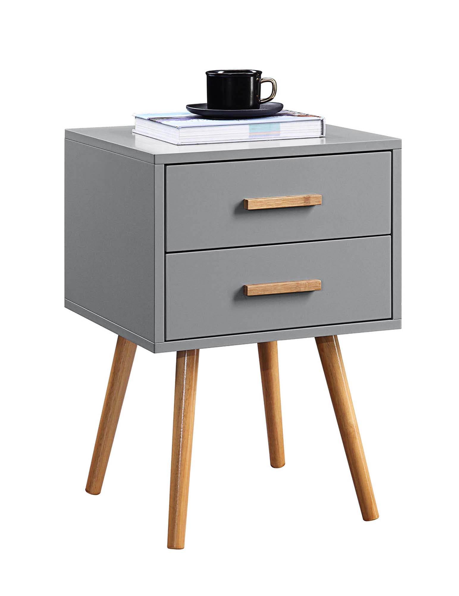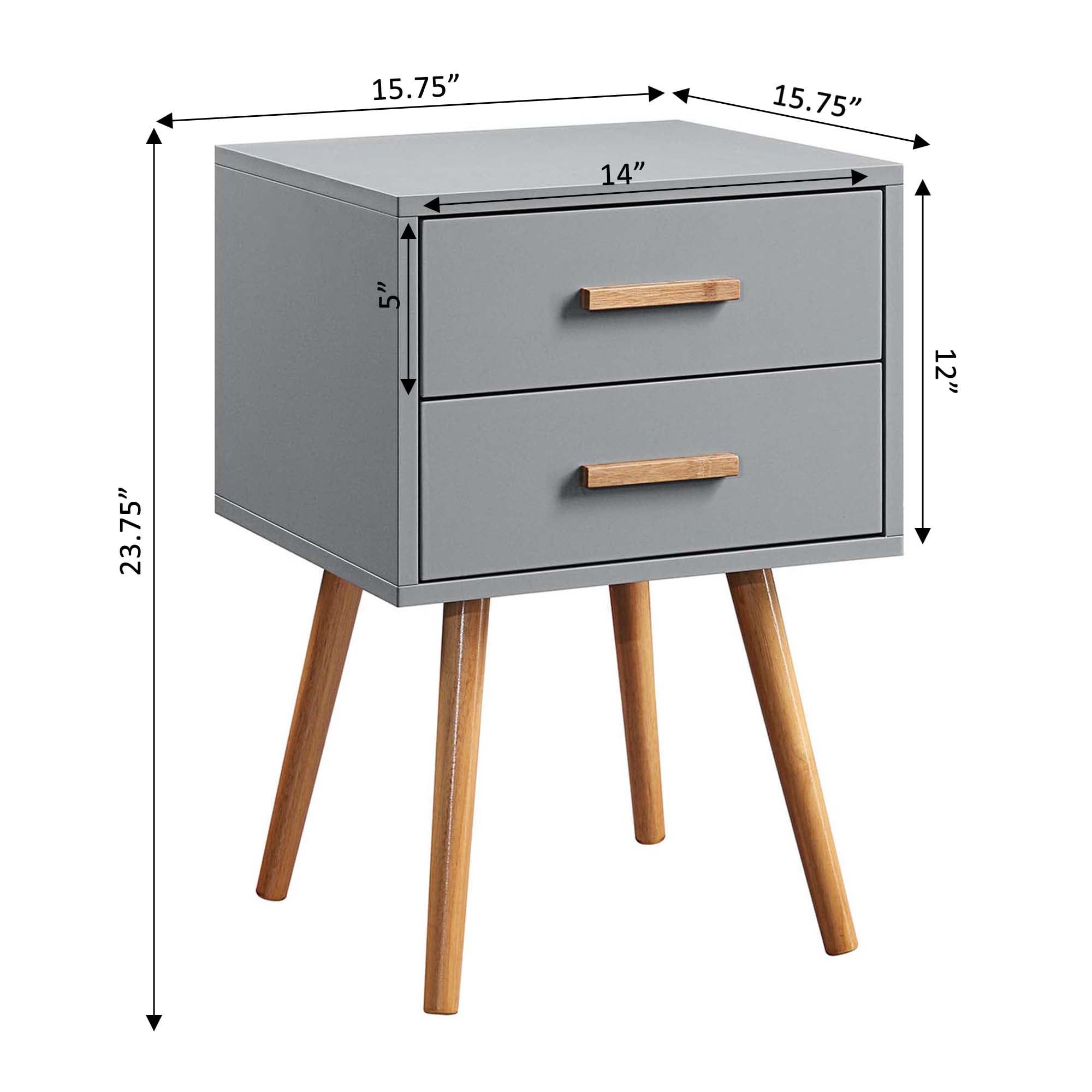 Convenience Concepts Oslo 2 Drawer End Table, Gray Features: Part of the Oslo Collection by Convenience Concepts Boasts a mid-century style to update any home decor Crafted from MDF/rubberwood/non-lead based paint/bamboo Features an easy 6-step assembly Color May Vary Slightly Due to Photography Lighting or Monitors Display (L) 15.75 in. x (W) 15.75 in. x (H) 23.5 in.