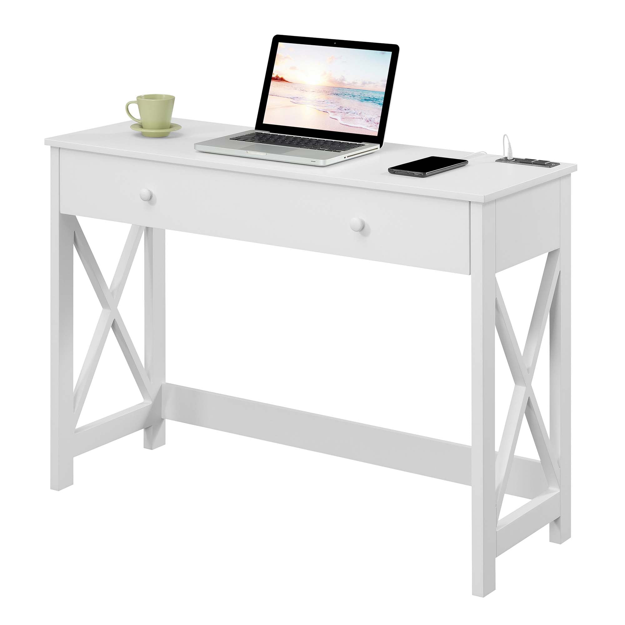 Convenience Concepts Oxford 1 Drawer 42 inch Desk with Charging Station, White