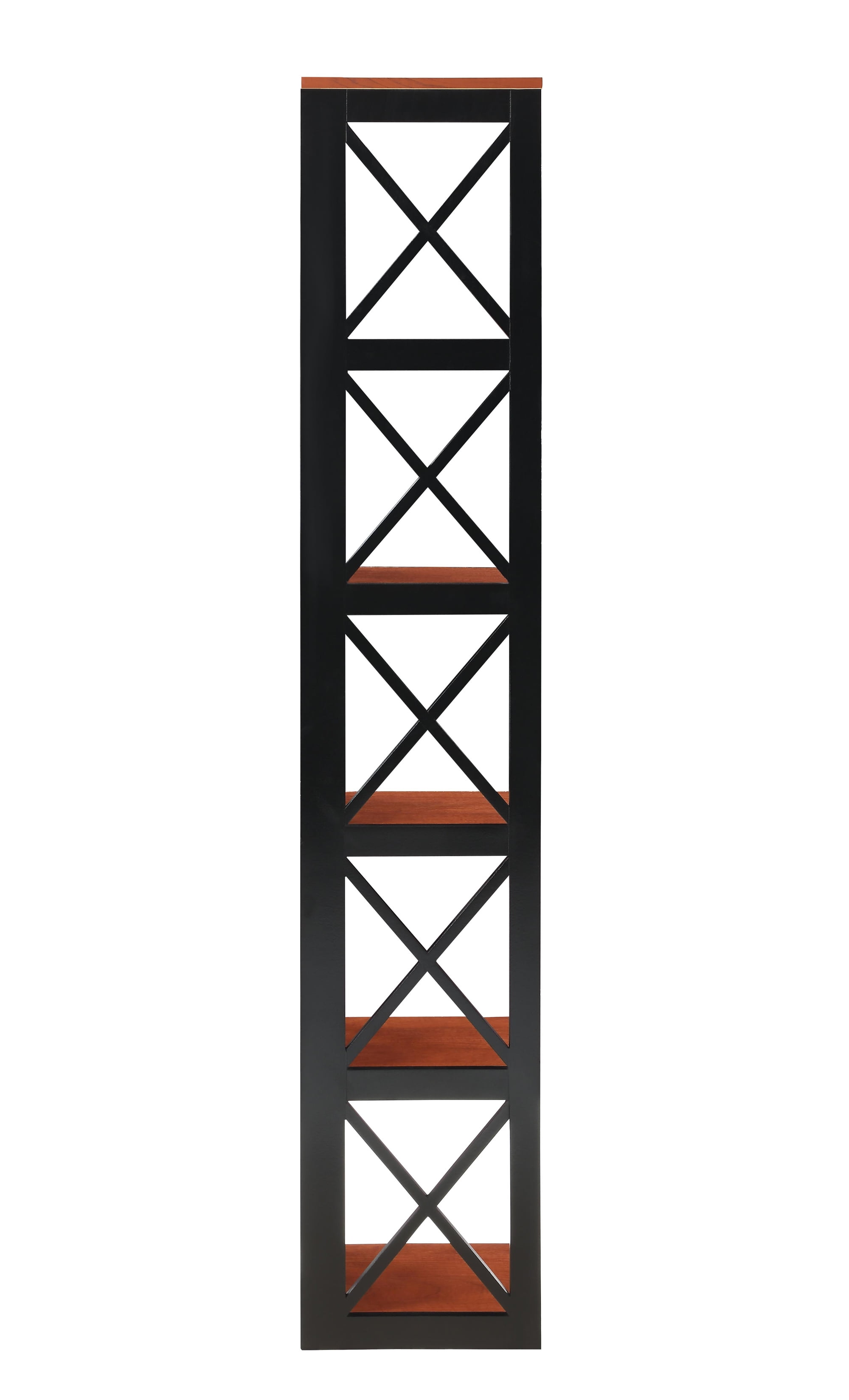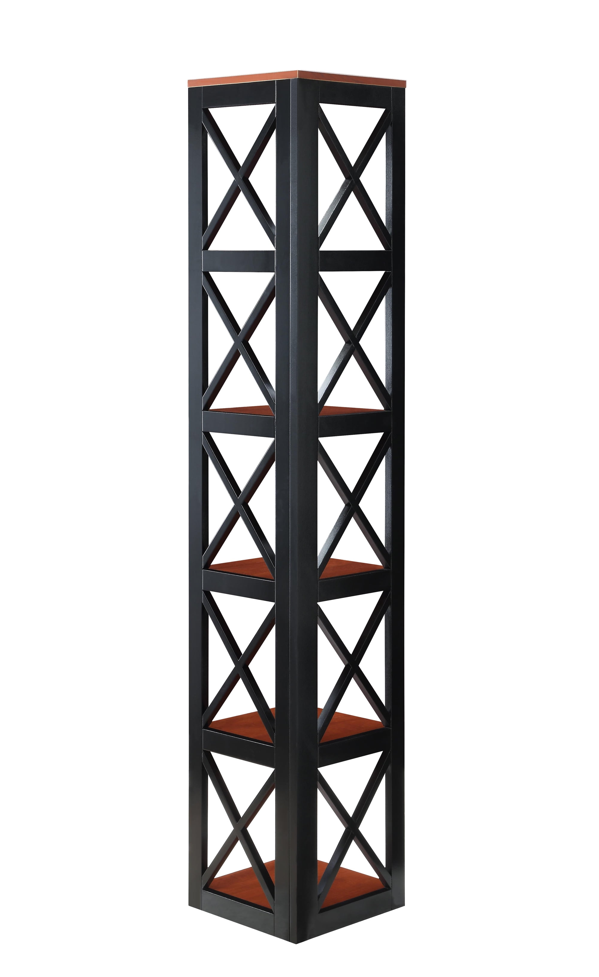 Features: Crossed X Design Corner Shelf 5 shelves for storage Will Provide Years of Enjoyment Quick and Easy Set Up Color May Vary Slightly Due to Photography Lighting or Monitors Display Overall dimensions: 12″ L x 12″ W x 65.50″ H