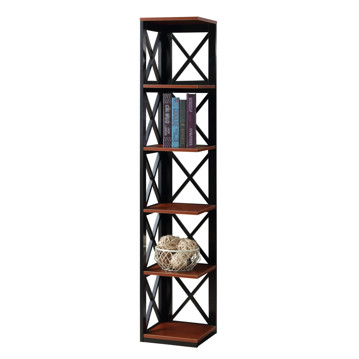 Convenience Concepts Oxford 5 Tier Corner Bookcase, Cherry and Black